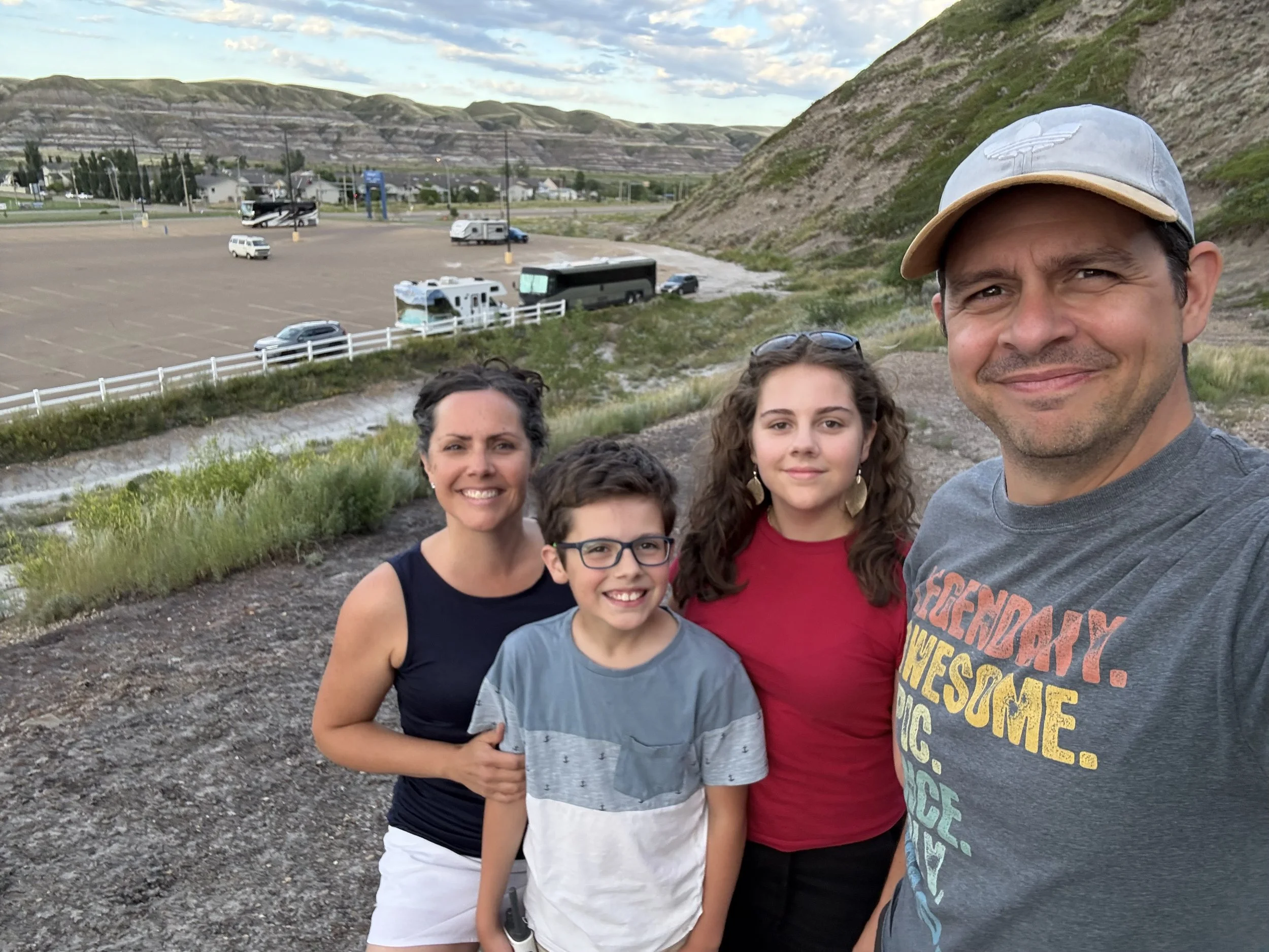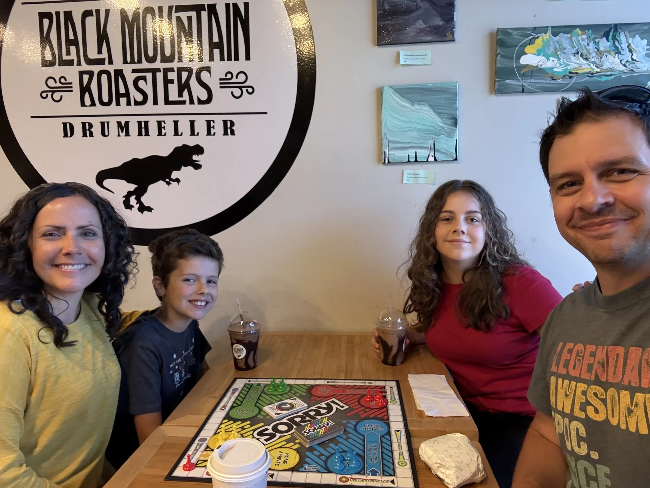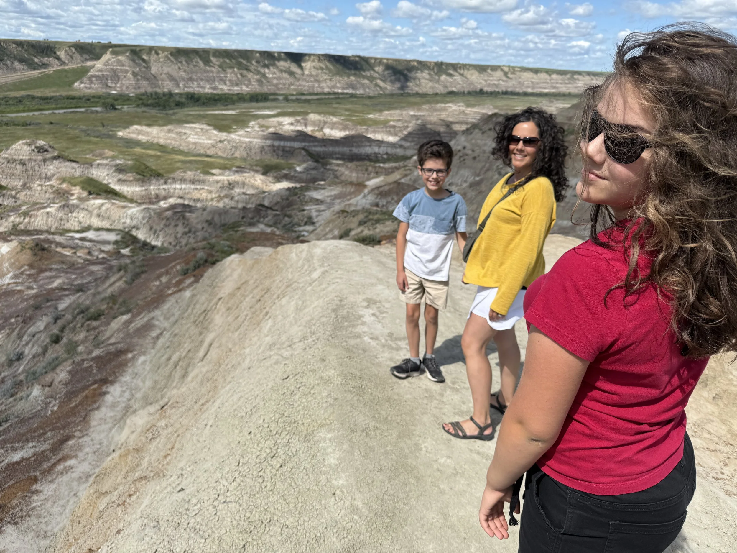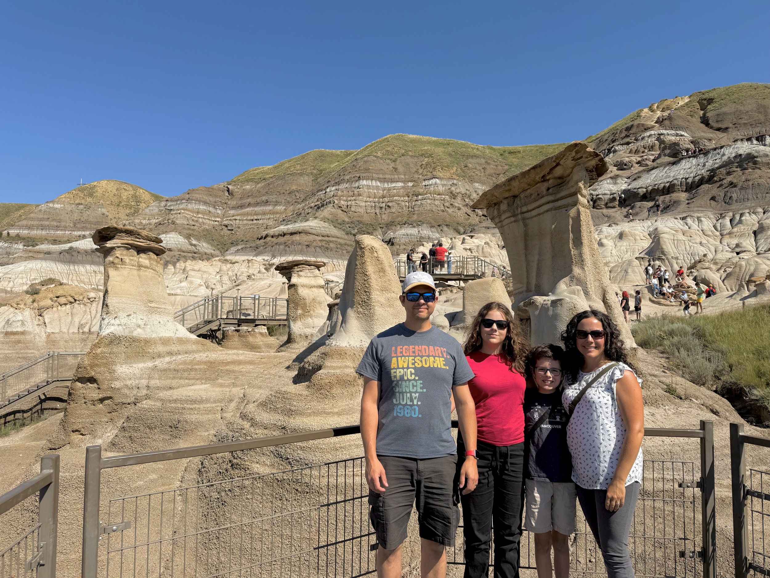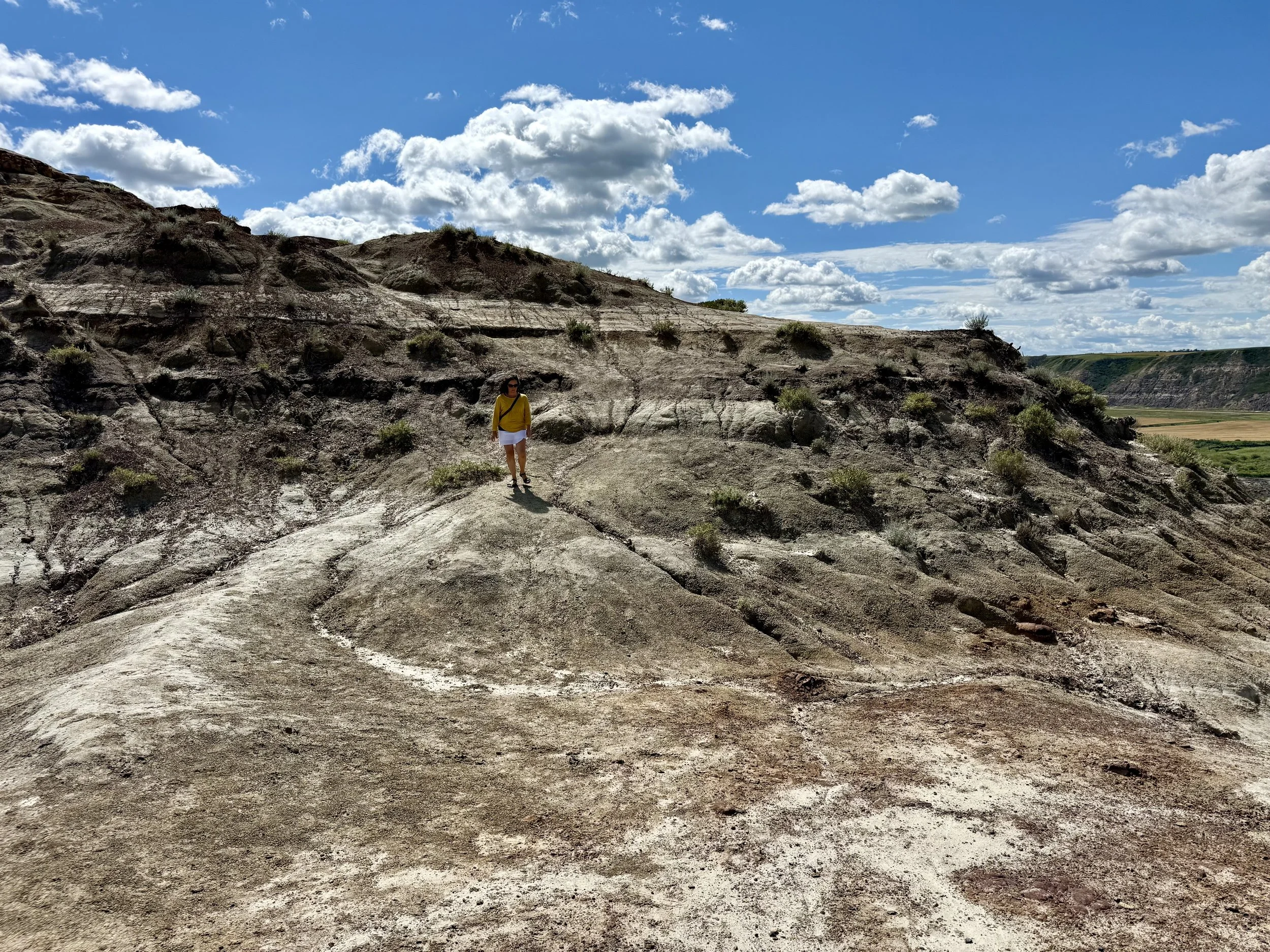We spent about three hours at the Royal Tyrrell Museum, the world-renowned dinosaur museum. I had been there when I was six but remembered very little. In the afternoon, we hiked through the striking Horse Thief Canyon with its iconic Badlands scenery. The next day, August 12, was my birthday! We found a cozy café and played board games together as a family. Days of true rest are rare on this adventure, so it was exactly what I needed. Later, we hiked the hoodoos—though really, it was more like scrambling up and sliding back down on our backsides (except for my husband, who climbed like a mountain goat!). It was a fun challenge to reach the top!