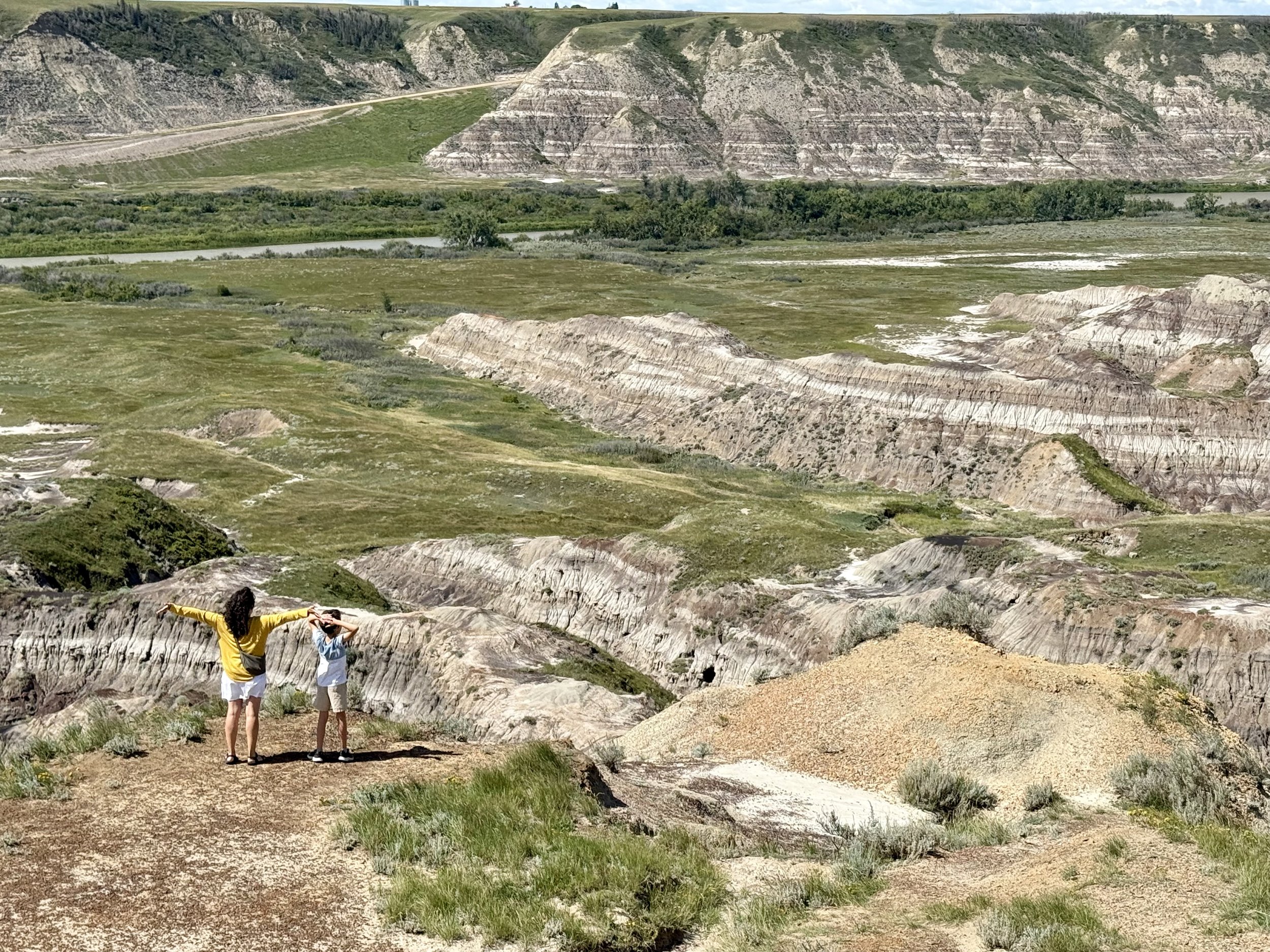 On passe environ 3 heures au Royal Tyrell Museum, le fameux musée des dinosaures. J’y étais allée quand j’avais 6 ans, mais je n’avais que très peu de souvenirs. En après-midi, on se promène dans le très cool Horse Thief Canyon avec ses paysages typiques des badlands. Le lendemain, 12 août, c’est ma fête! On se trouve un petit café et on a joue à des jeux de société toute la famille ensemble. Il n’y a pas beaucoup de jours de repos dans la façon qu’on vit cette aventure donc une petite journée tranquille était ce dont j’avais besoin! Après le dîner, on est allés marcher dans les cheminées de fée (les hoodoos). En fait, je devrais plutôt dire qu’on a monté les parois rocheuses (pratiquement à 4 pattes par bout puisque c’est glissant) et qu’on les a descendues en bonne partie sur les fesses (sauf mon mari qui est comme une chèvre de montagne!) C’était un bon défi d’aller jusqu’en haut!