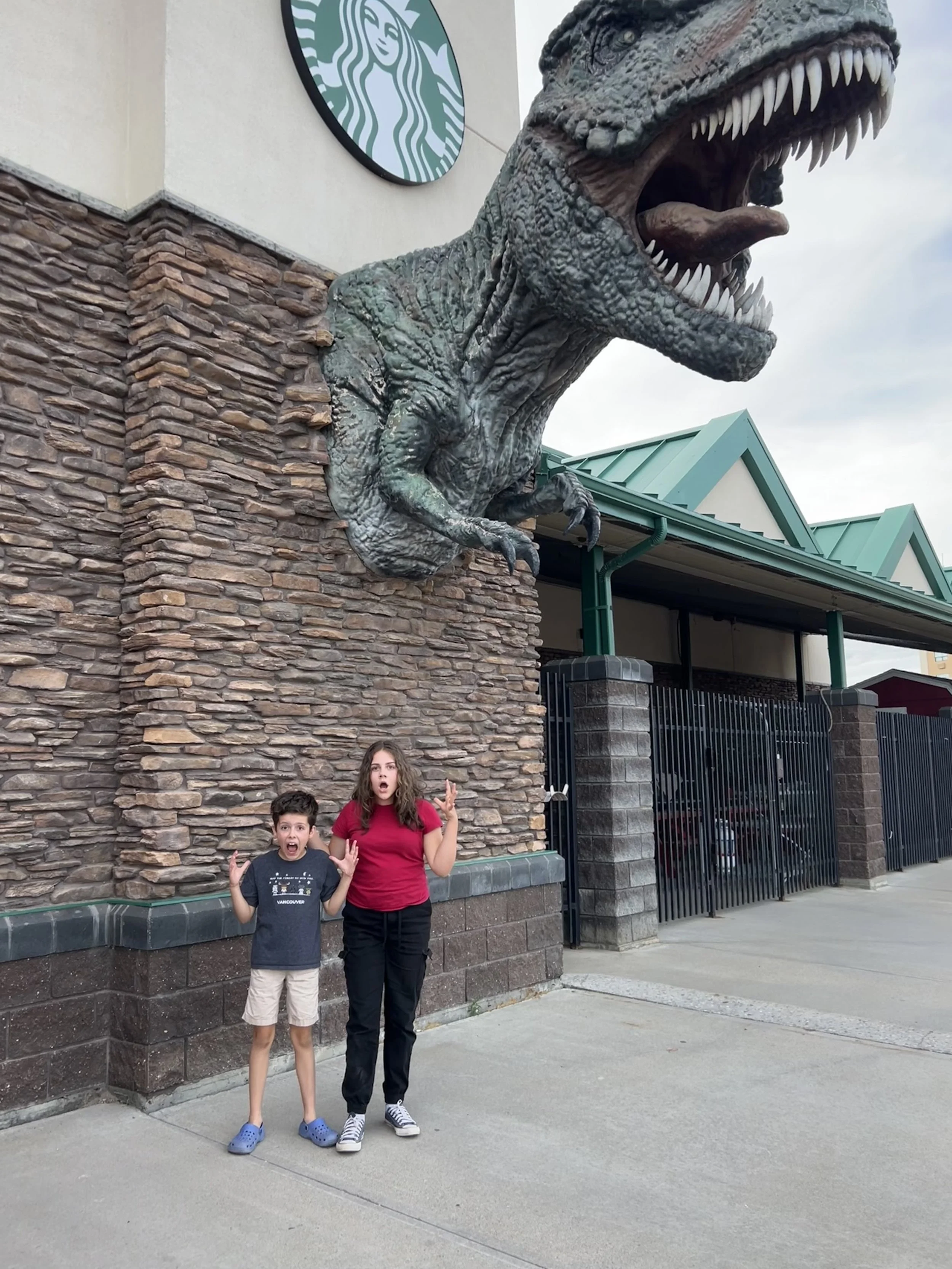 Drumheller feels like a world apart, with its own quirky charm. Dinosaurs are everywhere—statues, murals, ads, business names… a little over the top for us, but entertaining for a short stay.
