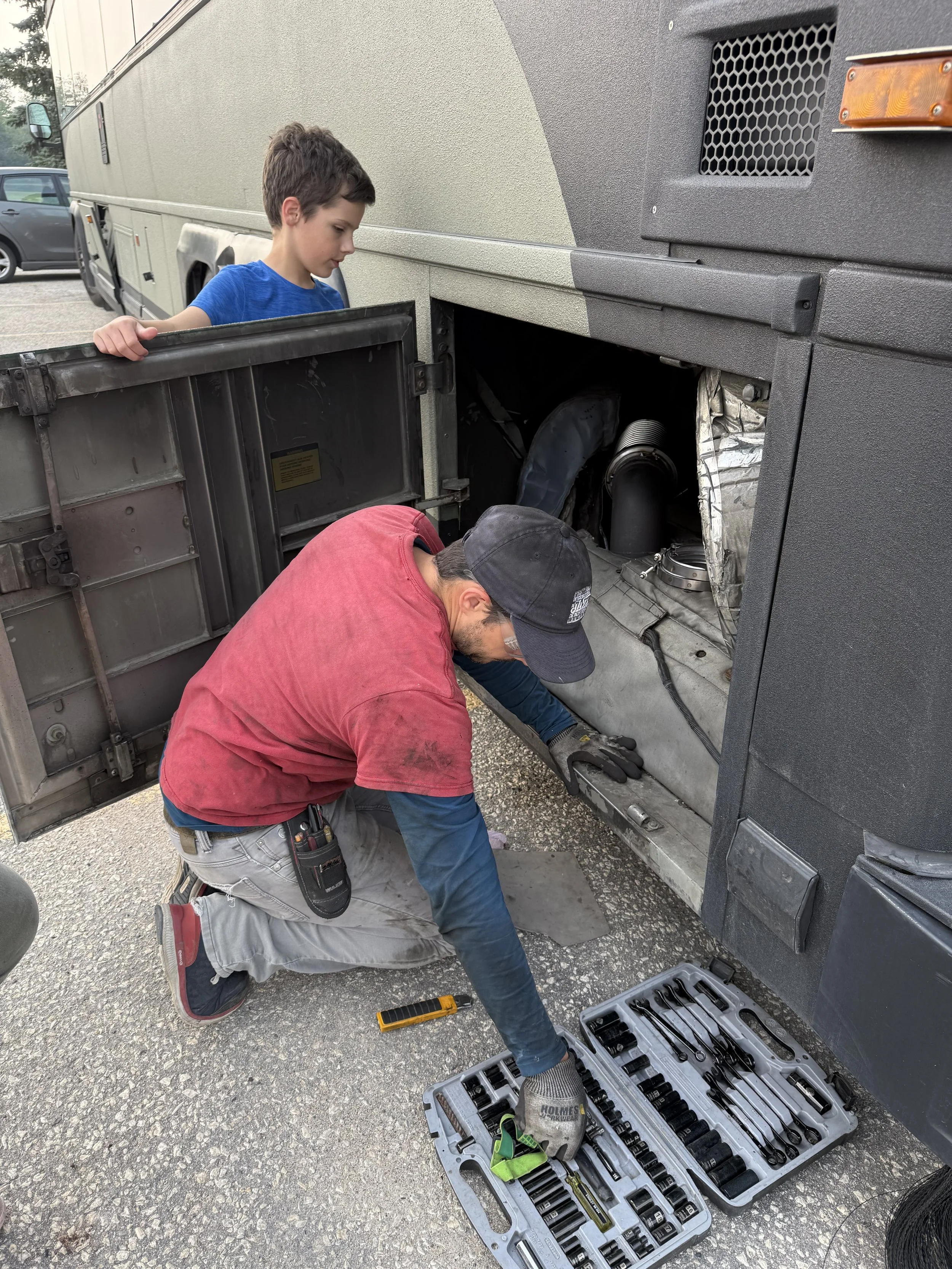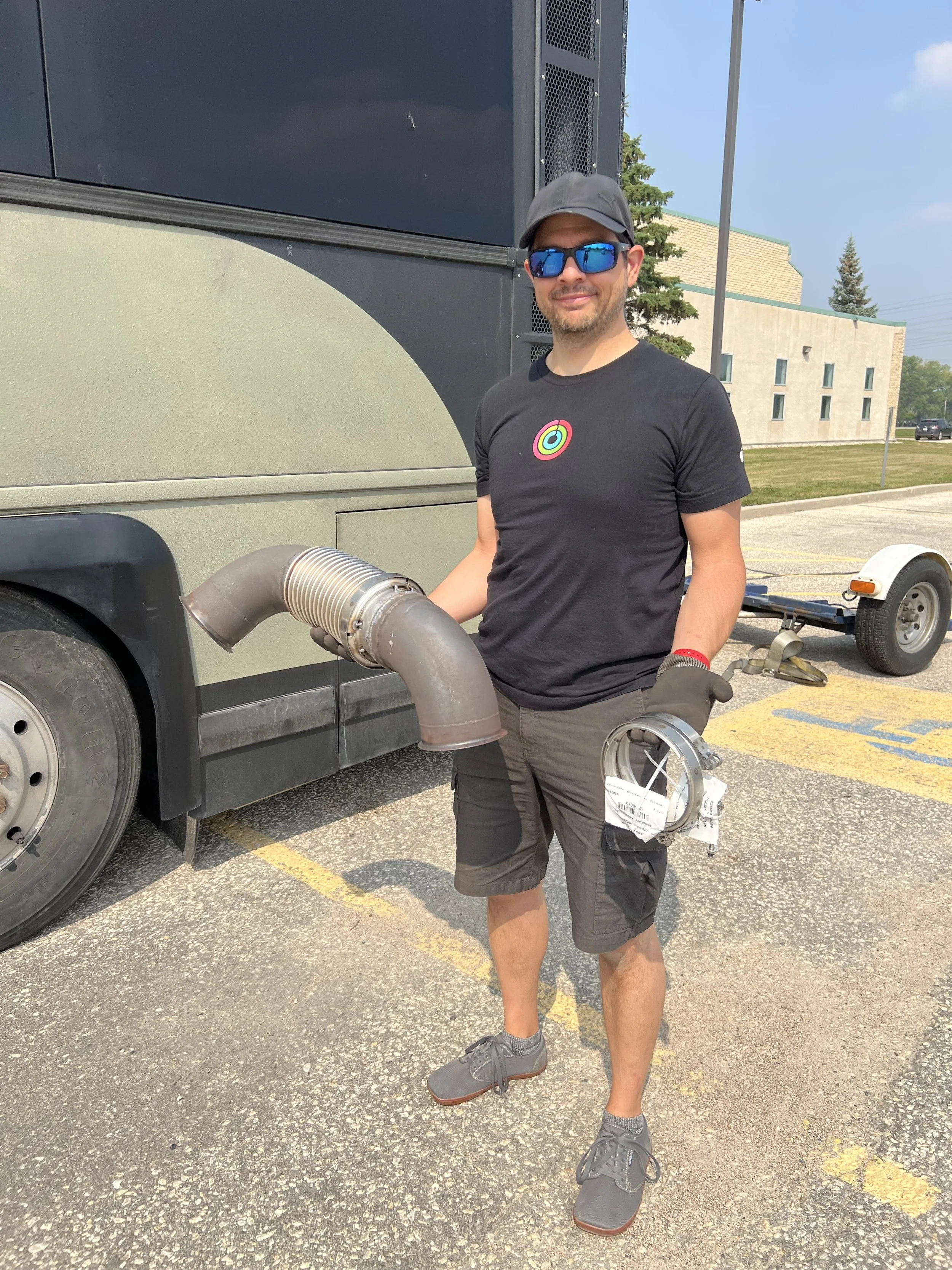 In the end, we spent a wonderful week in Winnipeg—far longer than the two or three days we had originally planned. This lifestyle keeps teaching us the art of flexibility! The first few days were dedicated to tracking down parts for bus repairs and, most importantly, finding someone who could weld the cracked exhaust pipe. No easy task! Several shops turned us away after seeing the pieces. For two or three days, Pierre Luc literally drove across the city from end to end. Finally, three days later, the job was done—just in time for a much-needed black water dump.