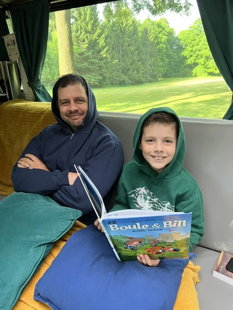 As we started driving, we didn’t realize we had lost one of the pins from our dolly. We only noticed it three hours later during a fuel stop. And it wasn’t just any stop!! A few minutes before, Pierre Luc had asked me to find a Shell station (we had gift cards). I found one that looked accessible, so off we went. But, of course, I hadn’t seen the steep slope at the entrance and exit on Maps. The kind of slope you barely notice with a car, but with a bus like ours, if the slope is short, the middle of the bus between the axles can scrape the ground at the highest point.