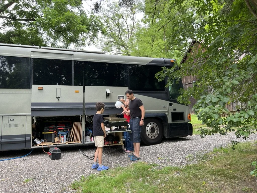 Dès notre arrivée, John nous accueille et nous dirige pour nous montrer où se stationner. Leur terrain est absolument magnifique et si paisible!! 🤩 Déjà, je sais qu’on va pouvoir se reposer un peu. Ce n’est pas évident se reposer quand on a plusieurs préoccupations, mais c’est une belle opportunité de se rappeler que Dieu est avec nous au milieu de tout ce qu’on vit.