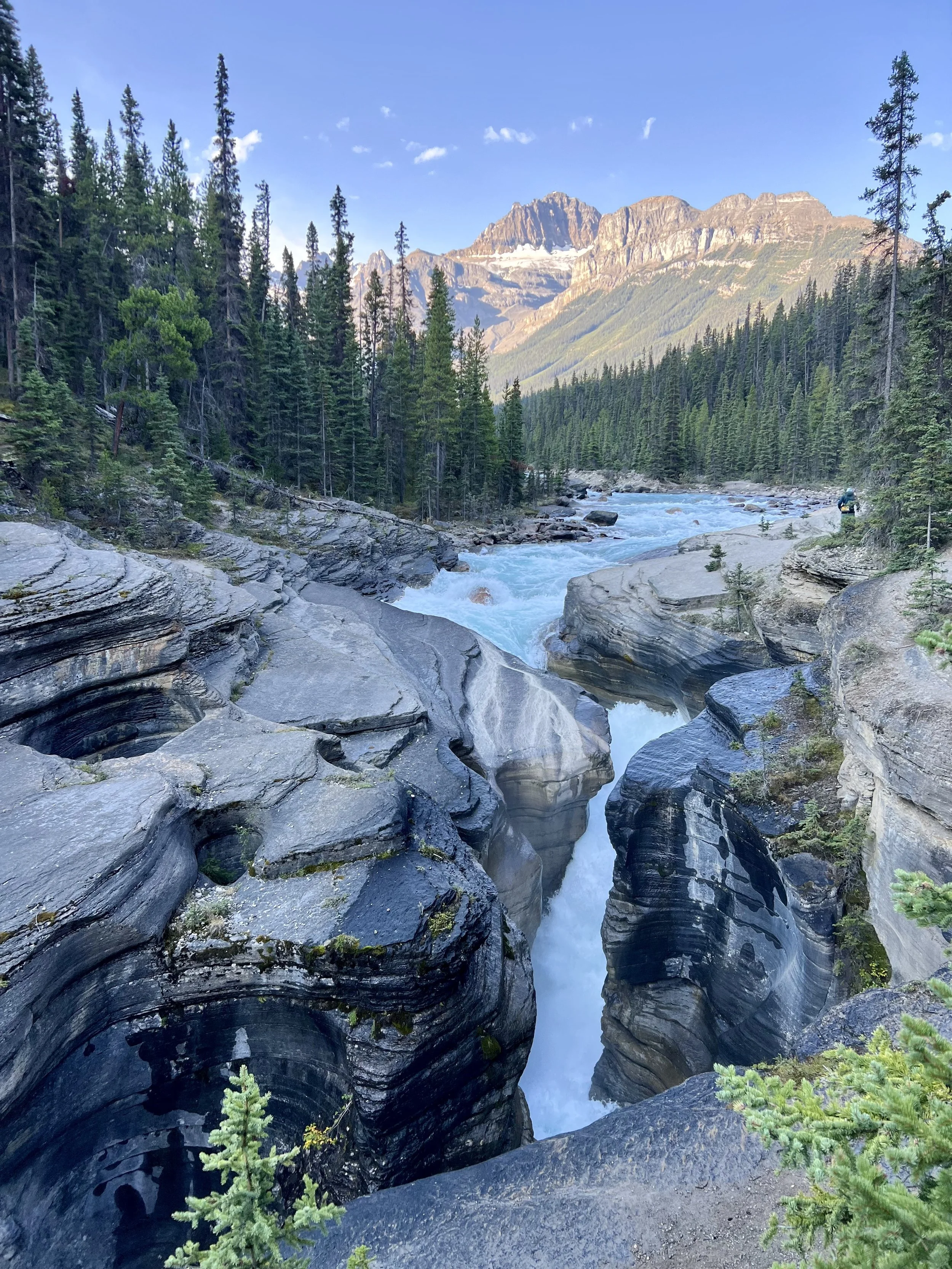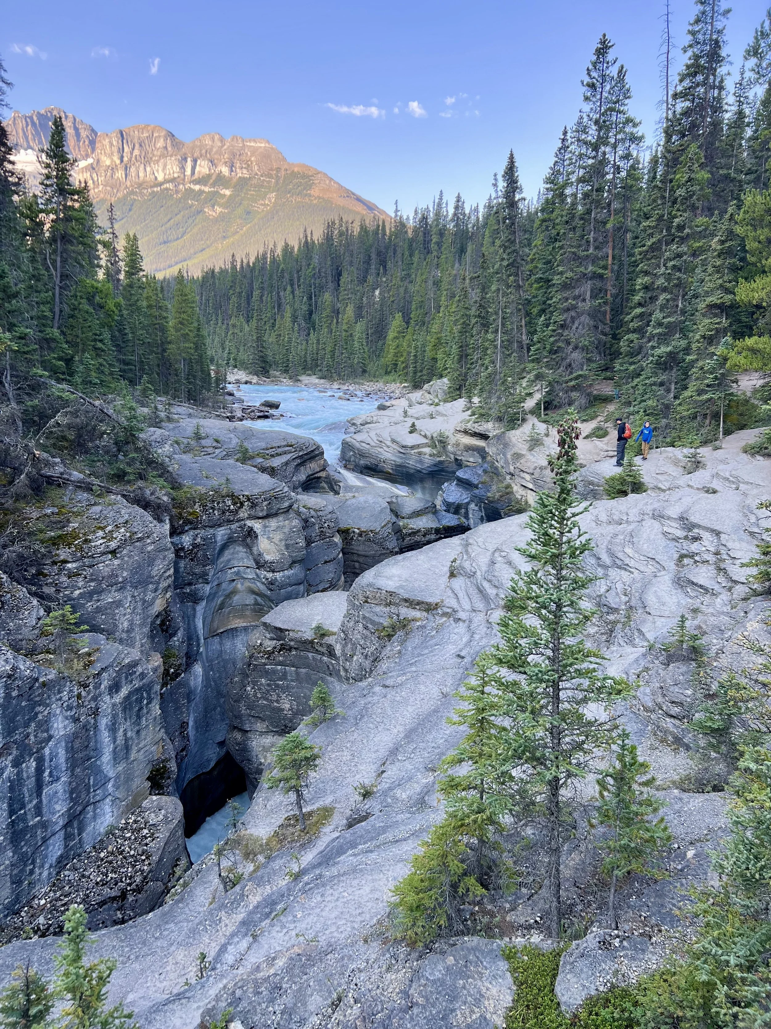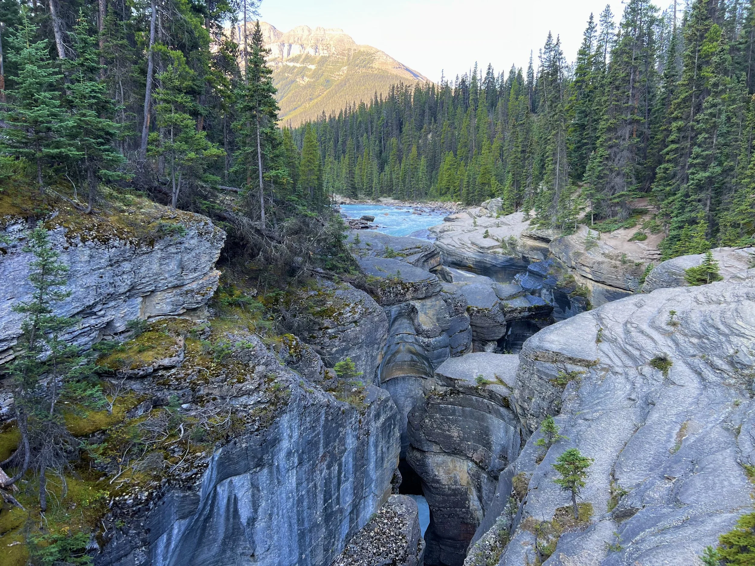 We started with Mistaya Canyon along the Icefields Parkway. It was breathtaking to see how the rushing water had carved deep, swirling formations into the rock.
