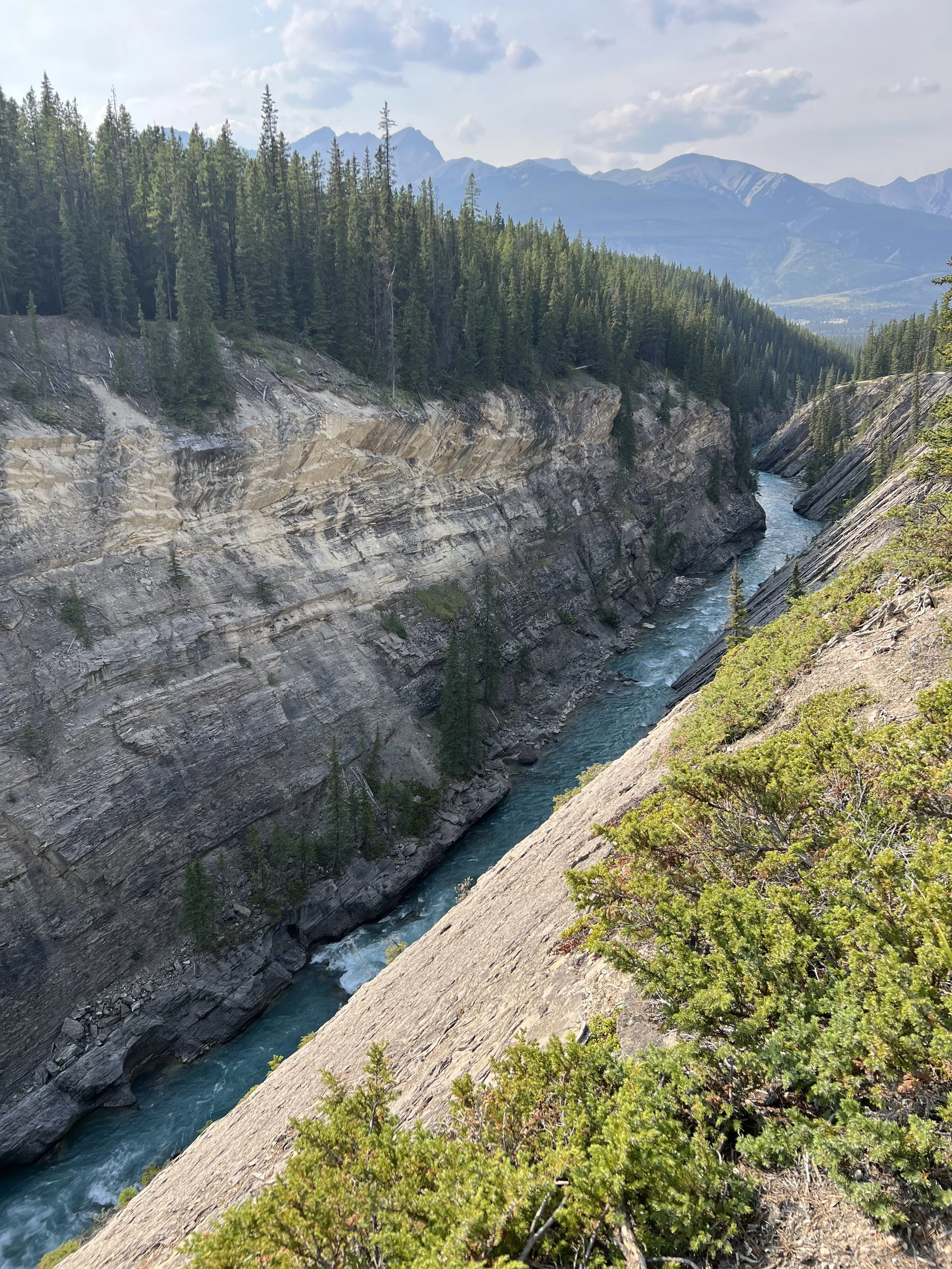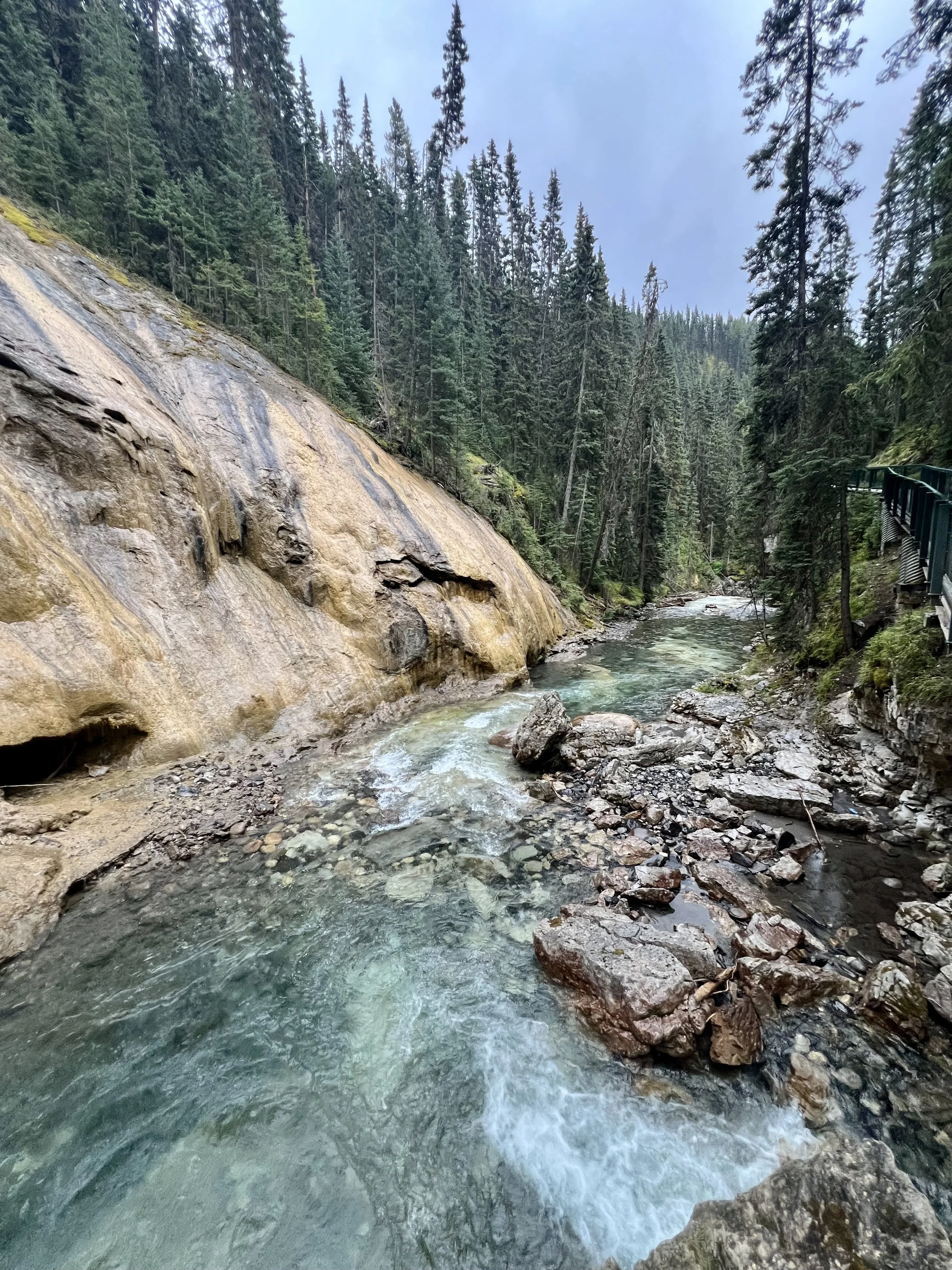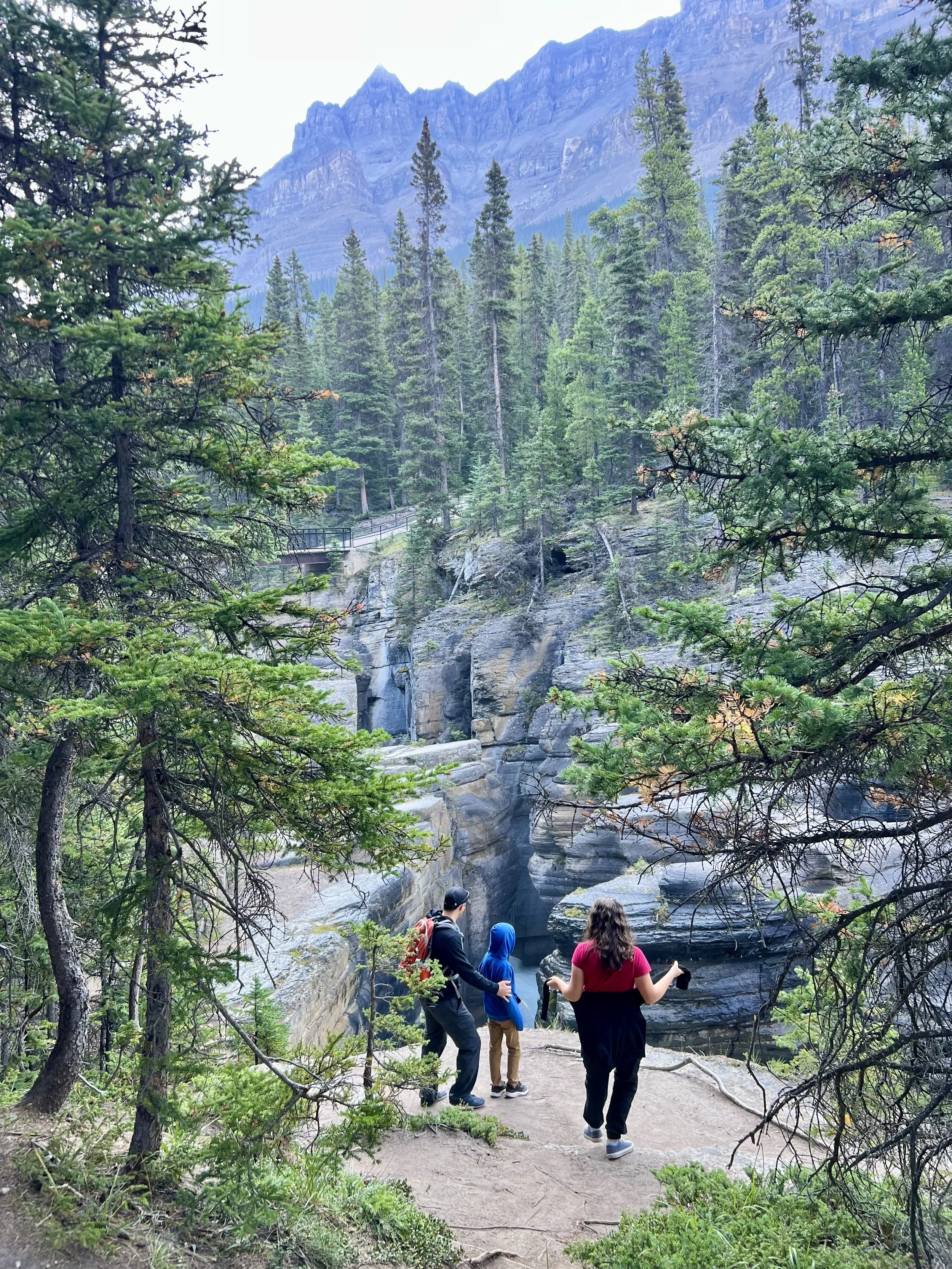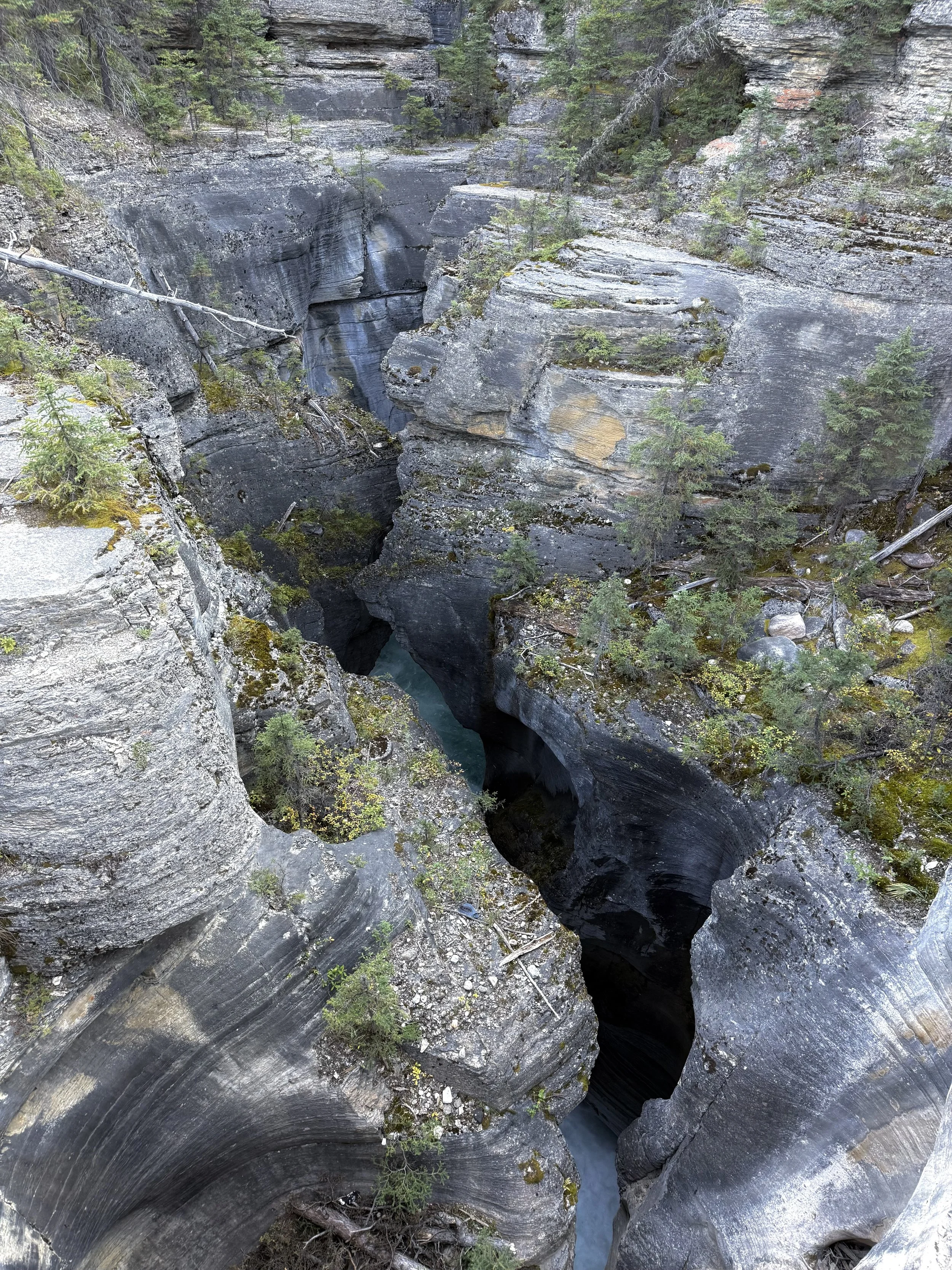 We started with Mistaya Canyon along the Icefields Parkway. It was breathtaking to see how the rushing water had carved deep, swirling formations into the rock.