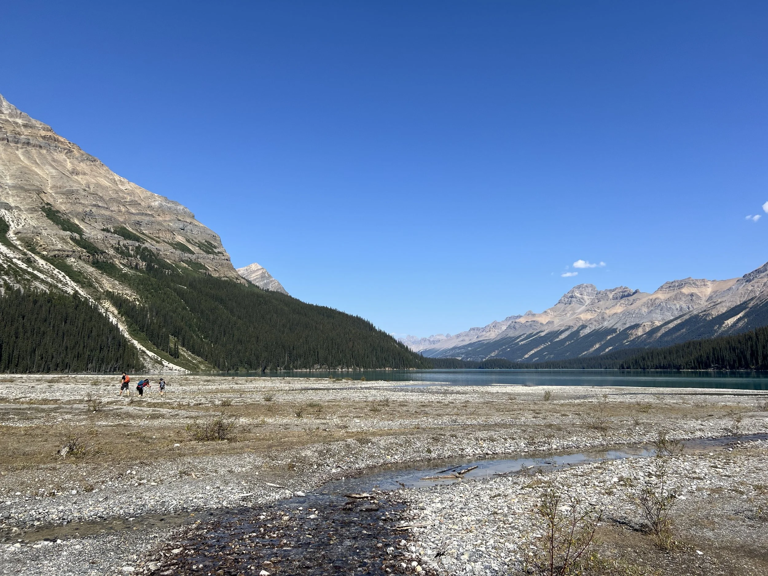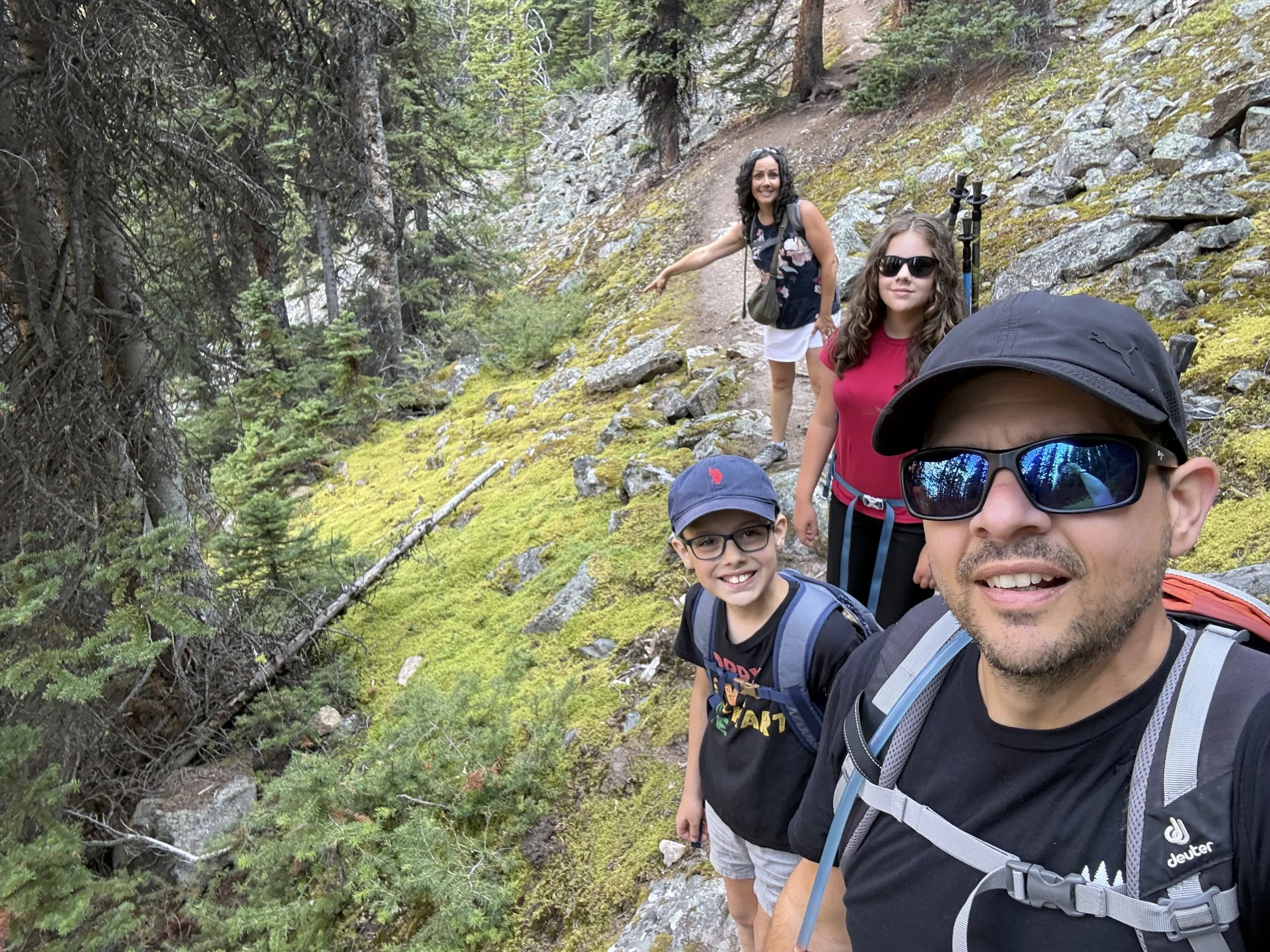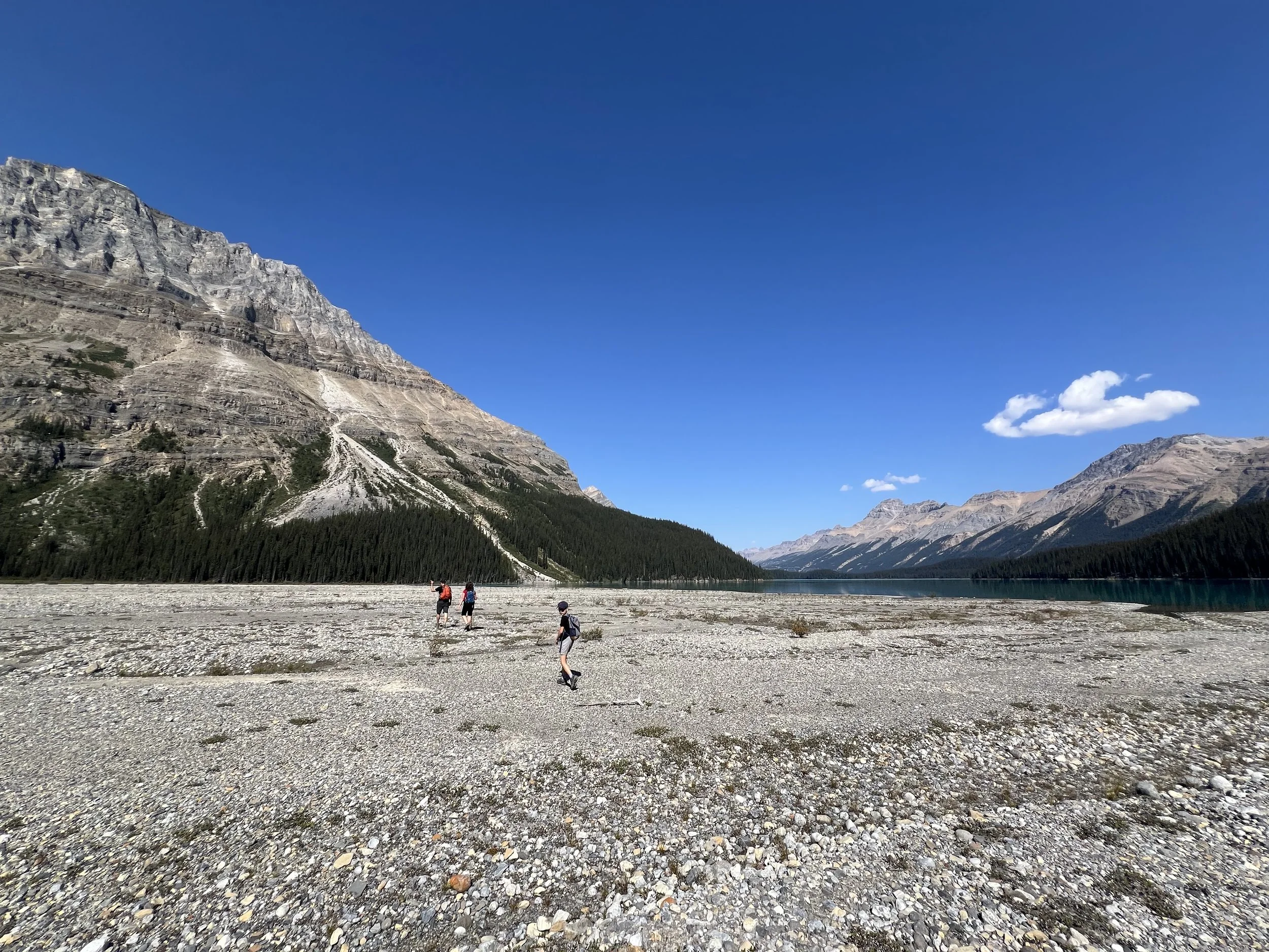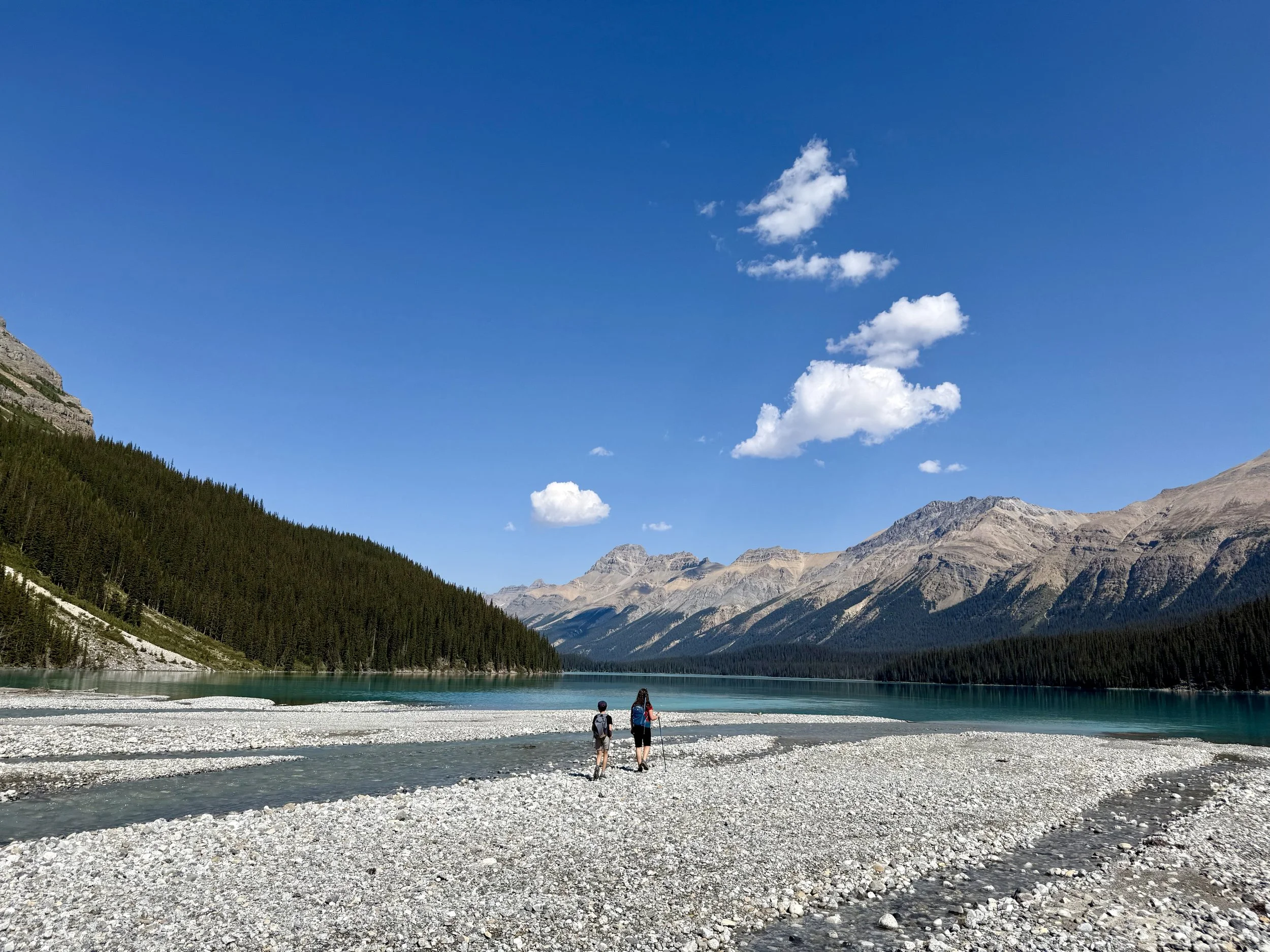 It took us two hours round-trip, and along the way we crossed paths with only one family and one couple. The hike was quite demanding — even the downhill stretches were tough at times — and we had underestimated the climb back up. But being alone in the quiet of the mountains, right at lake level, surrounded by turquoise water and towering peaks, was absolutely magical.