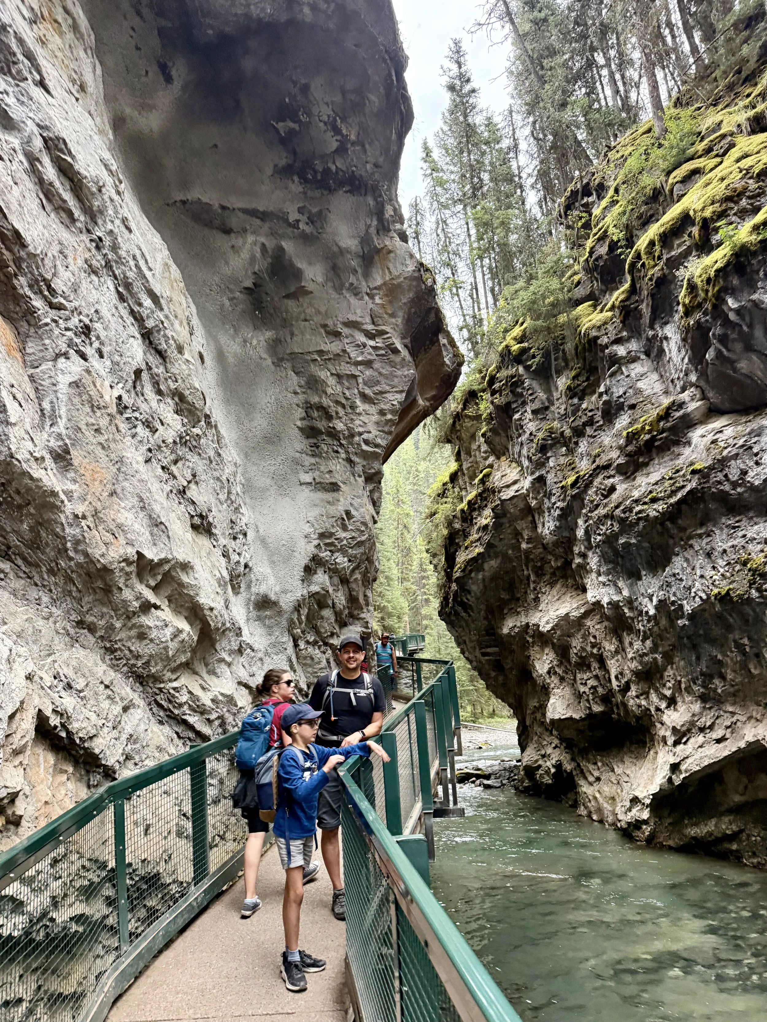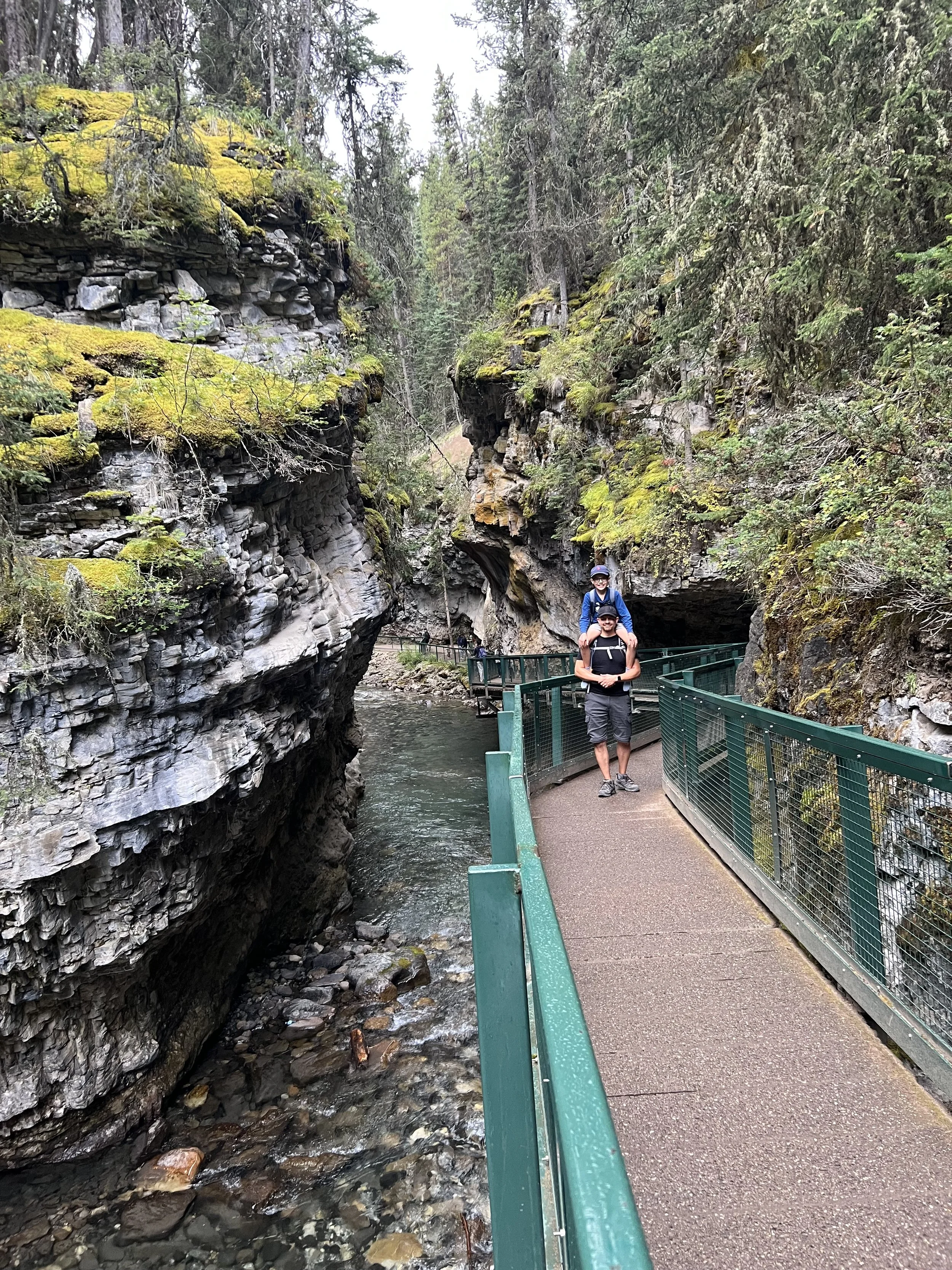 We ended our day at Johnston Canyon in Banff. We had planned to go there in the early evening to avoid crowds — a smart move! It’s one of the most popular trails in the area. The two-hour hike took us through the canyon’s impressive walkways and past both the Lower and Upper Falls. The rock formations were fascinating, and the play of light during sunset made the whole experience unforgettable.