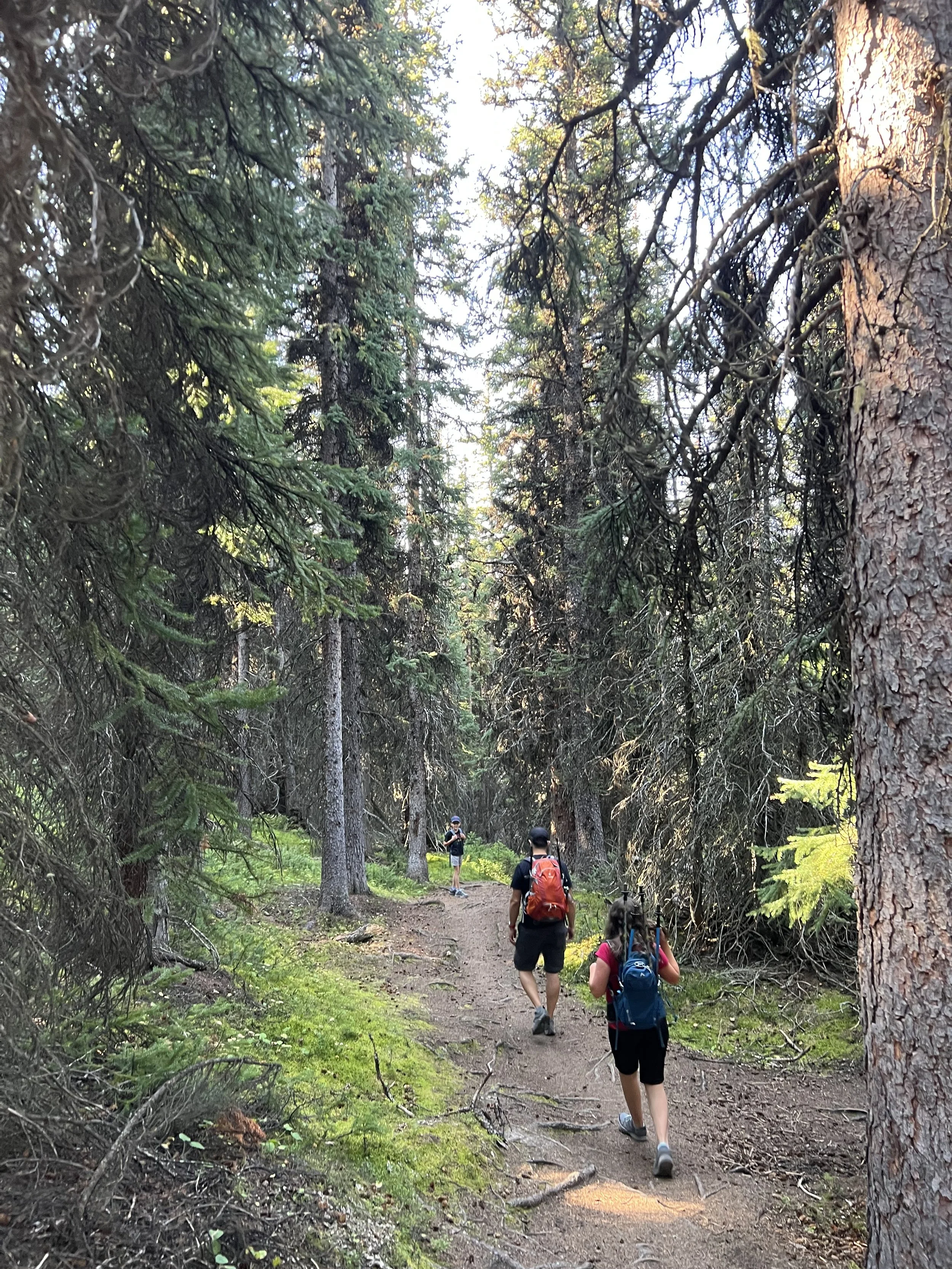 The next day, after a good night’s sleep, we decided to take it easy. Our main outing was an evening hike to Crescent Falls with Sophie. Since the sun set around 8 p.m., it was perfect timing for an after-dinner walk. The trailhead was just 15 minutes from the lodge, not too demanding, and absolutely worth it.