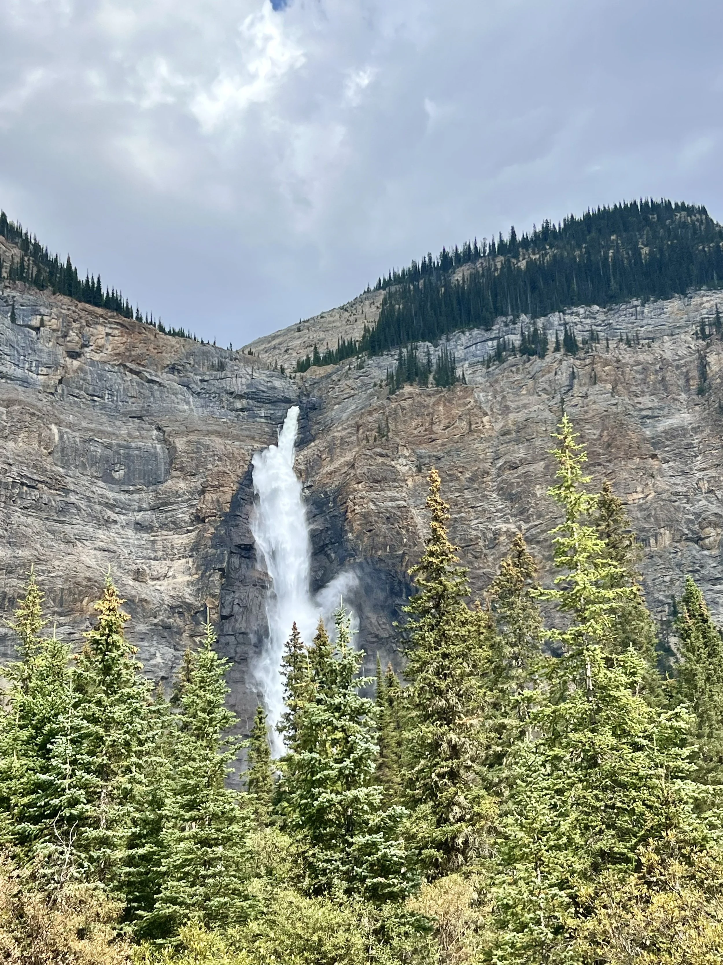 After our hike, we stopped for lunch.. We’d definitely earned it! As rain clouds moved in, we decided to head toward Yoho National Park instead of returning to Banff. The rain caught up with us anyway, so we did a car-tour of the tiny town of Field and Takakkaw Falls, then took advantage of a break in the weather to visit Emerald Lake.