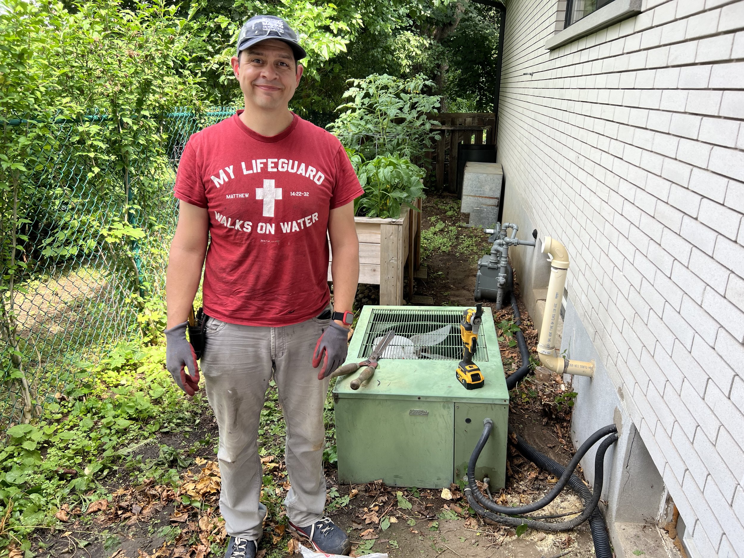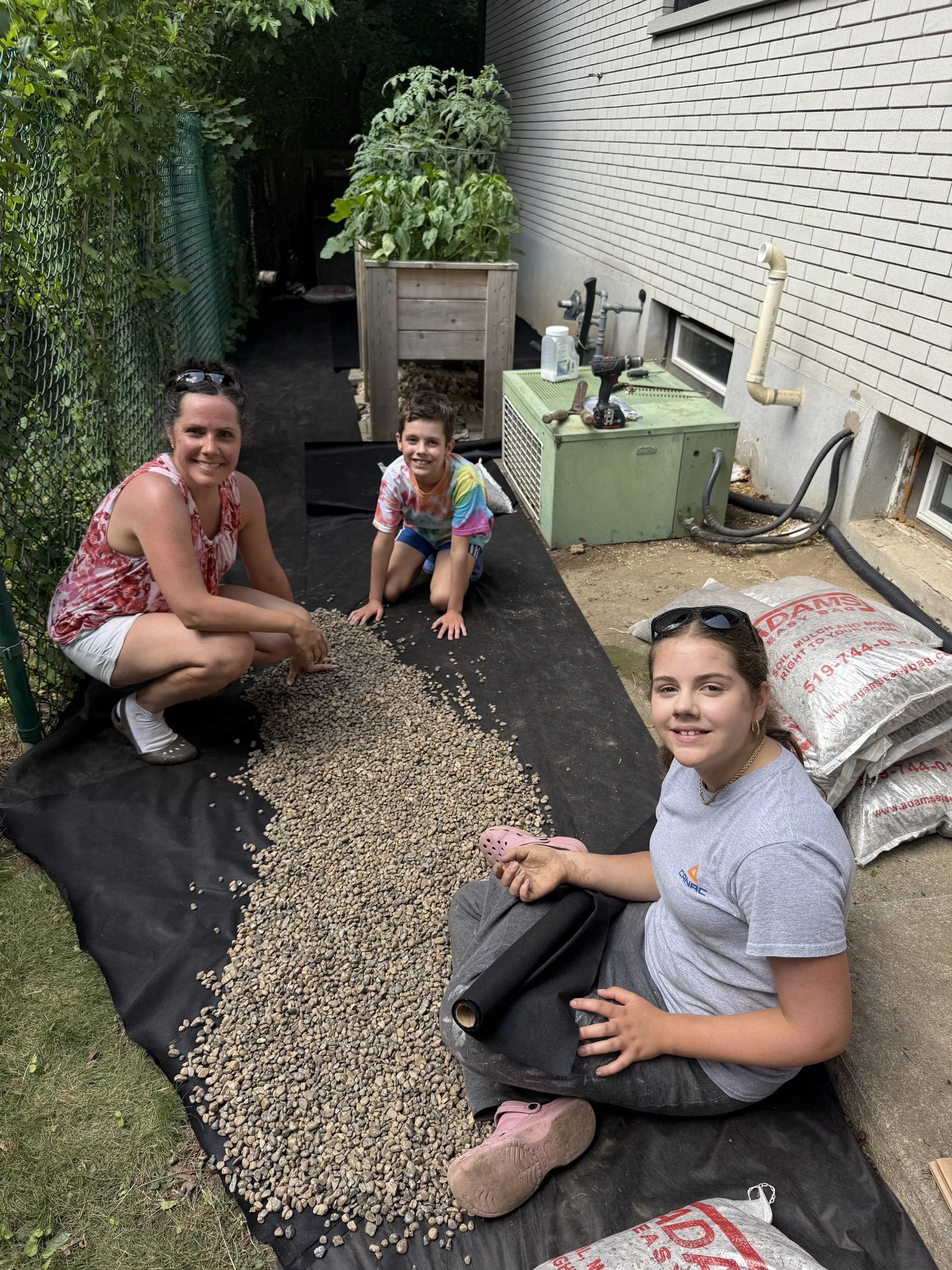 On passera les deux prochains jours à travailler sur leur terrain : arracher des mauvaises herbes, faire une dizaine de ballots de branches, aménager un joli petit coin jardin, etc. C’était la canicule, mais on était constamment rafraîchis par leur présence et nos conversations tellement enrichissantes et pleines de sens.