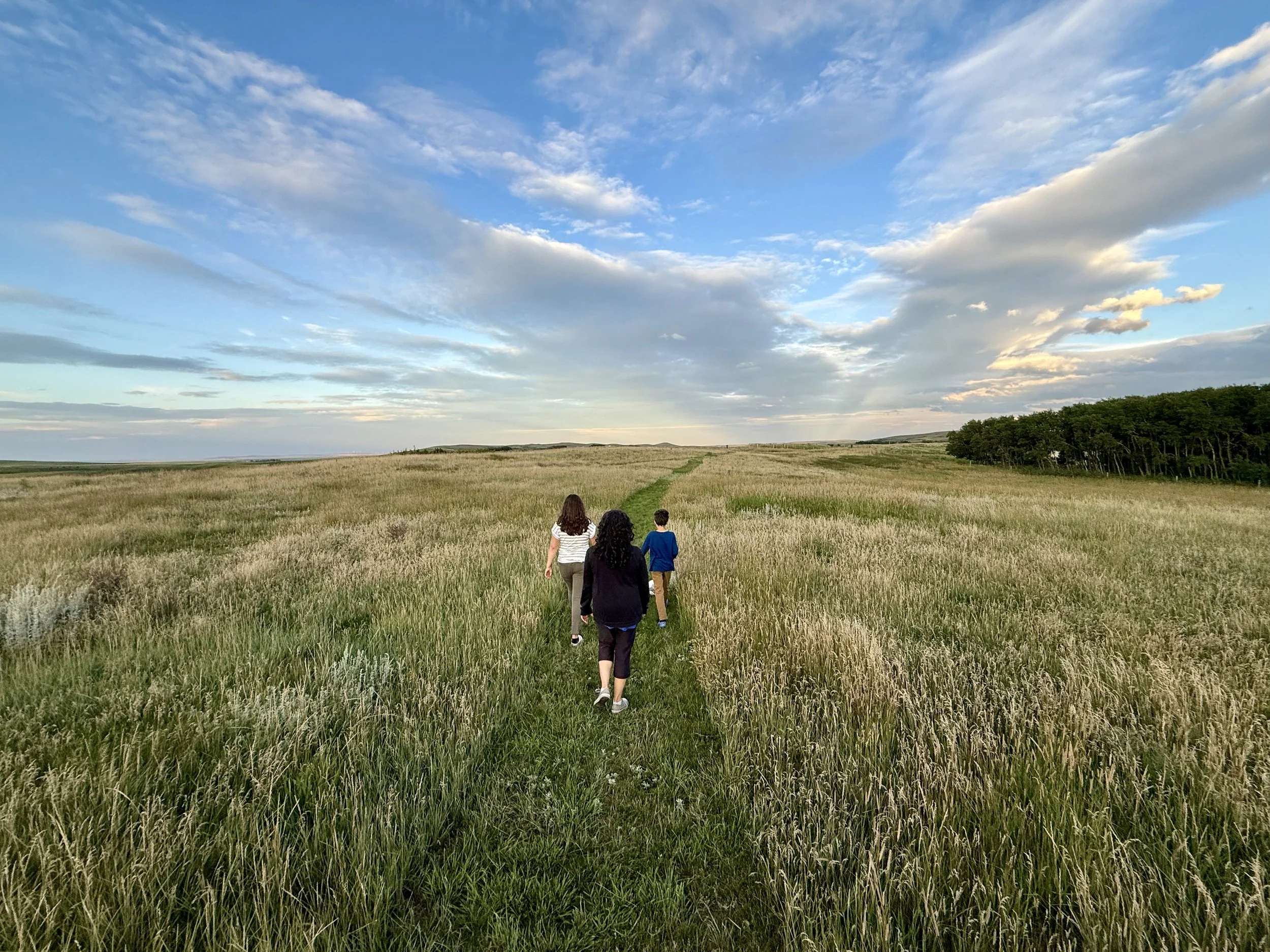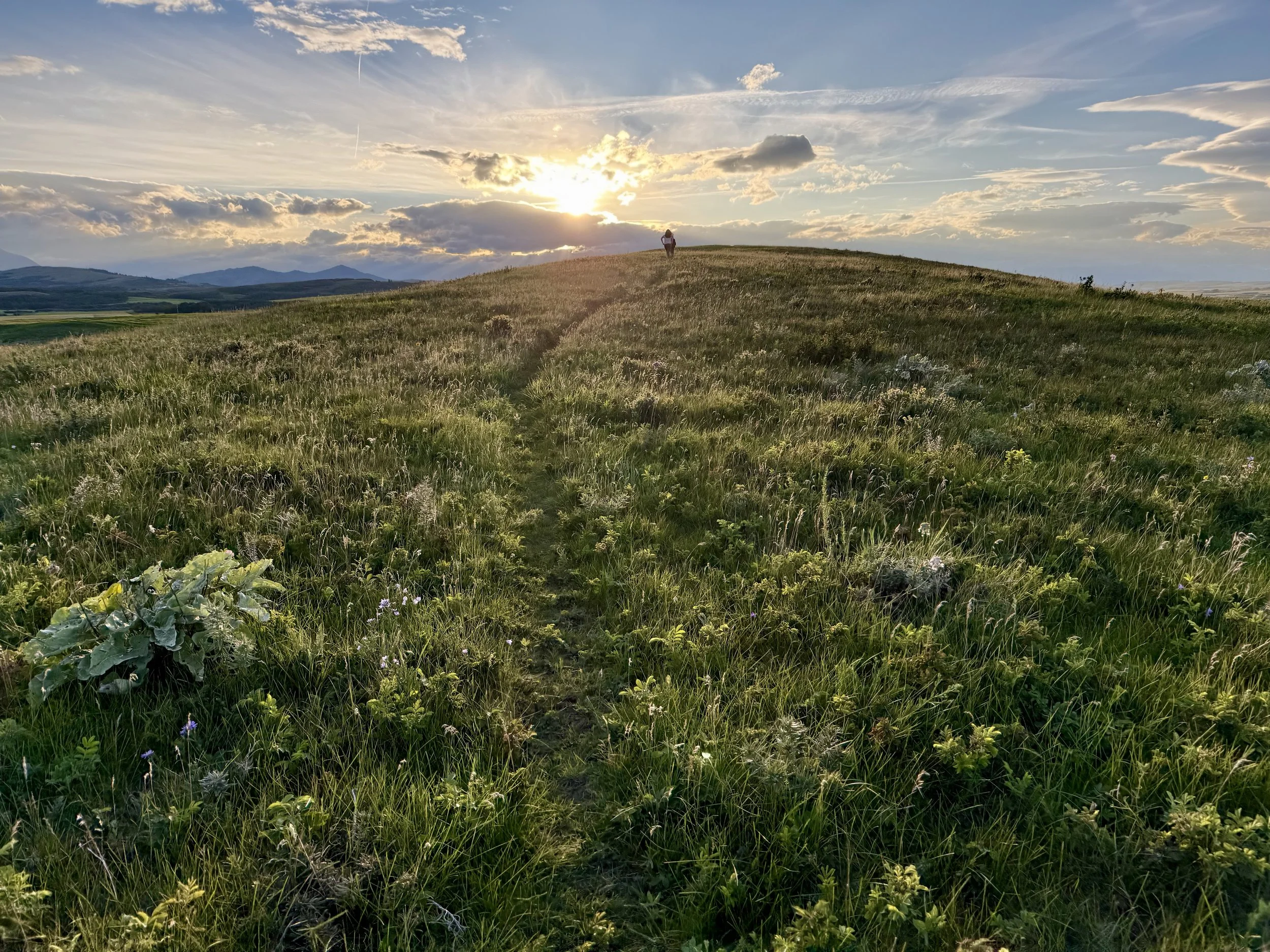 Le terrain de nos hôtes ne se limitent pas au ranch. Derrière leur maison, il y a un très joli sentier pour marcher dans les vallons. C’était absolument magnifique au coucher de soleil!