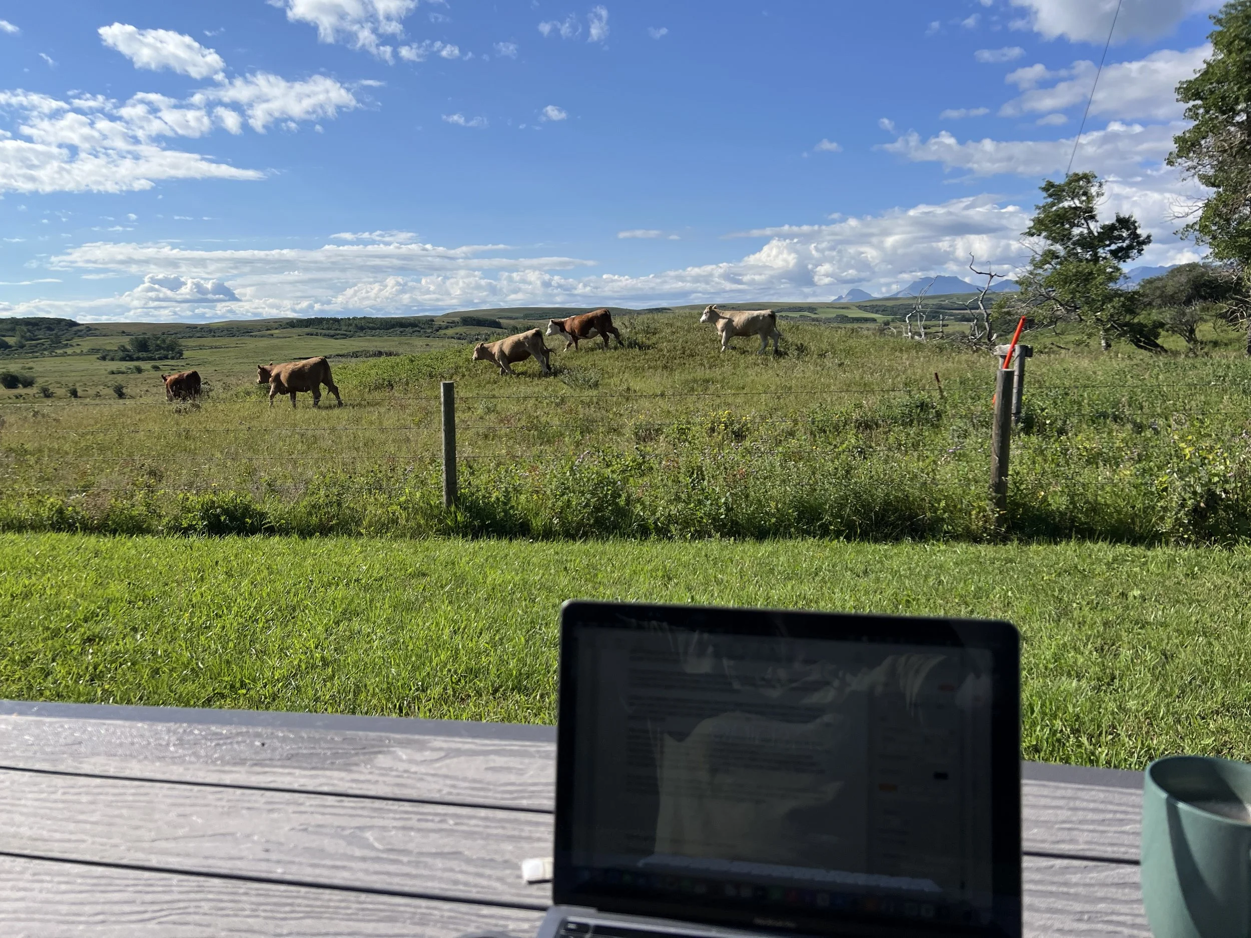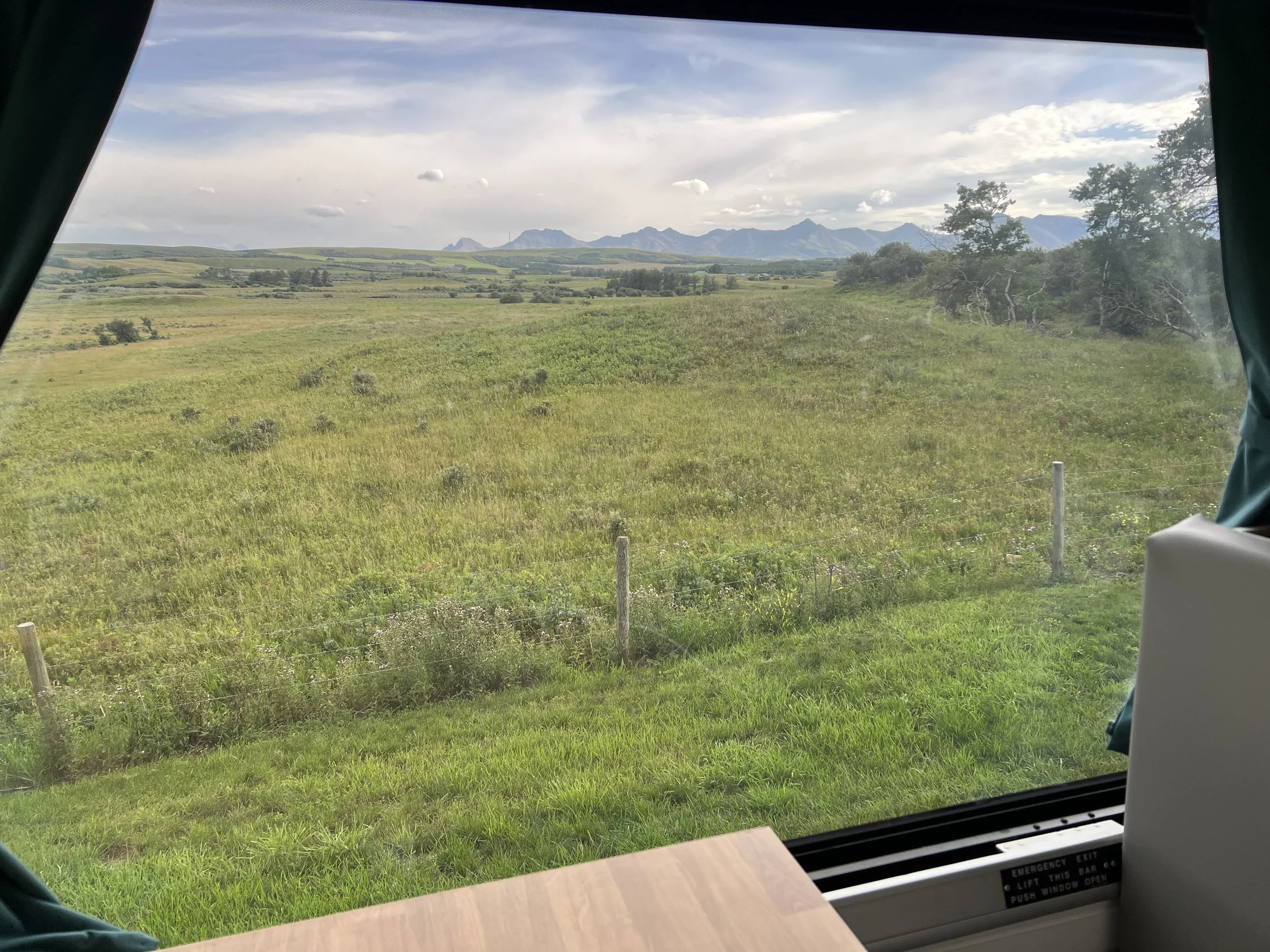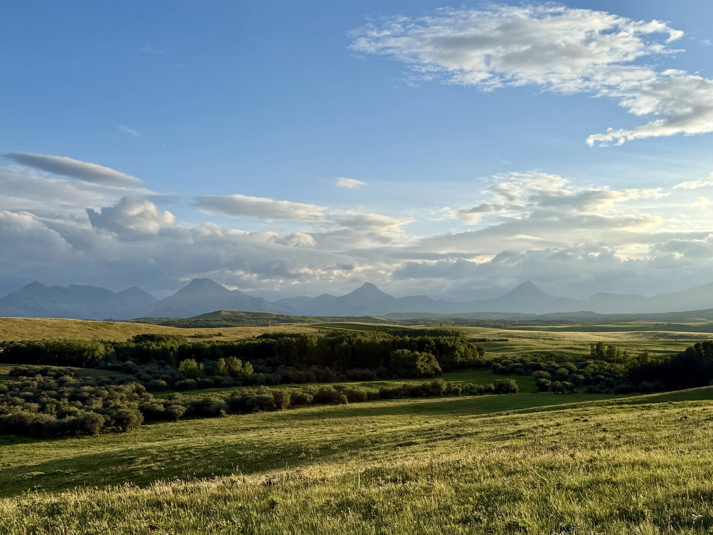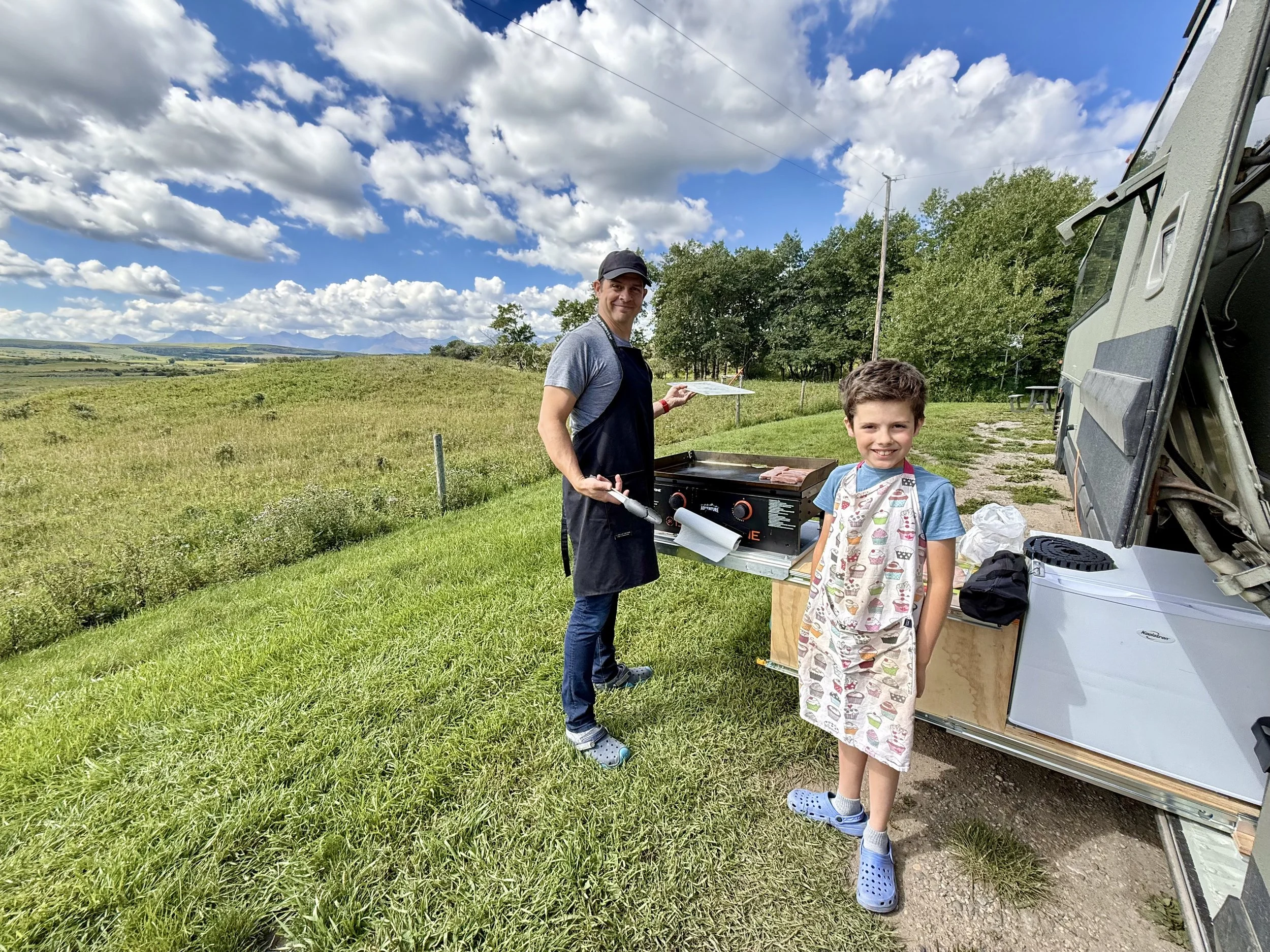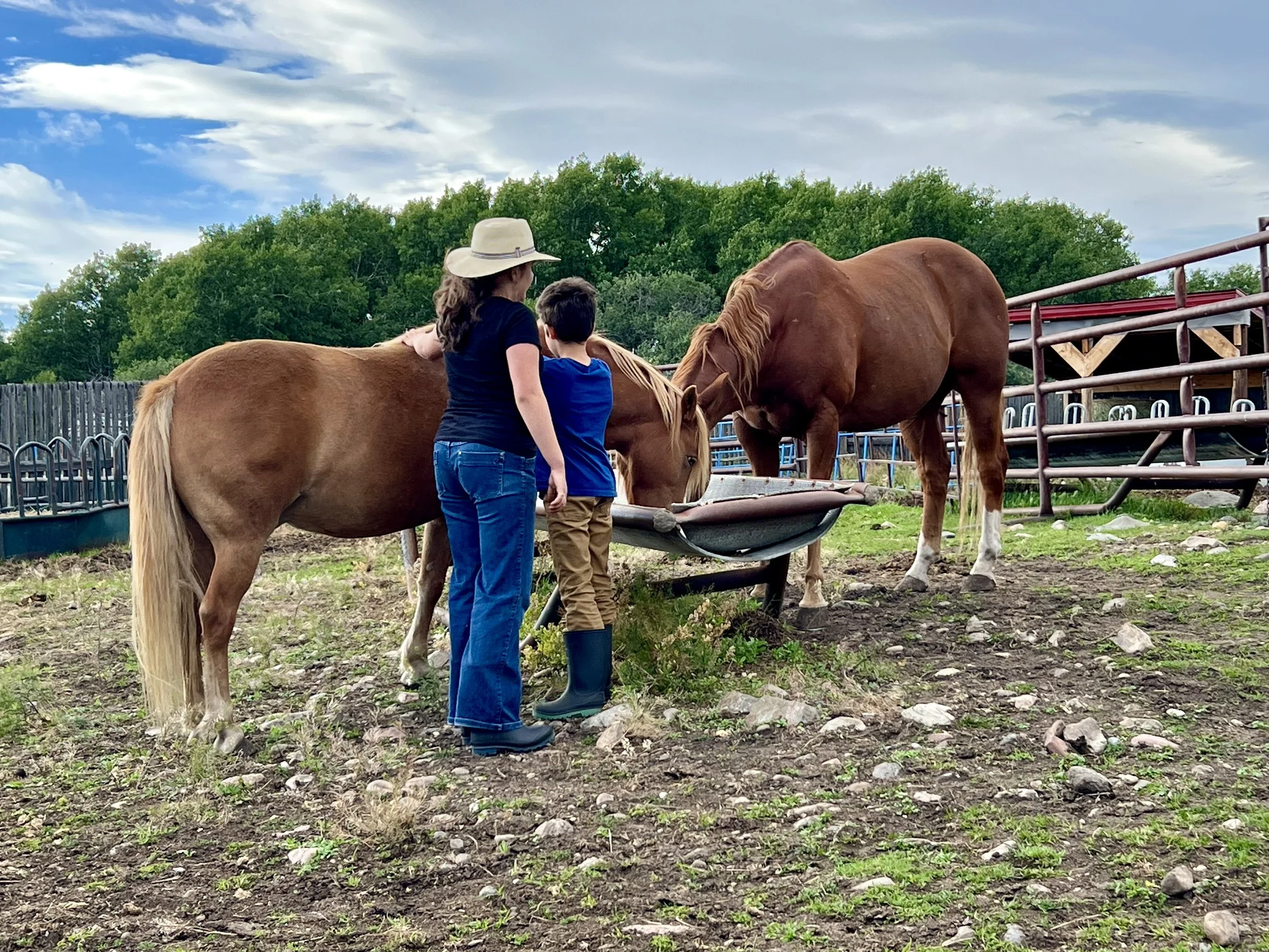 On the morning of August 6th, we hit the road toward a long-awaited destination: a ranch in Pincher Creek, near Waterton National Park in southern Alberta. As soon as we arrived, our host Pat showed us where we could park—an amazing spot with mountain views and a pond right next to us! Much to Anaya’s delight, Pat then introduced us to their horses and shared a bit of their story. We would spend four wonderful days here with our hosts, Pat and Ken.