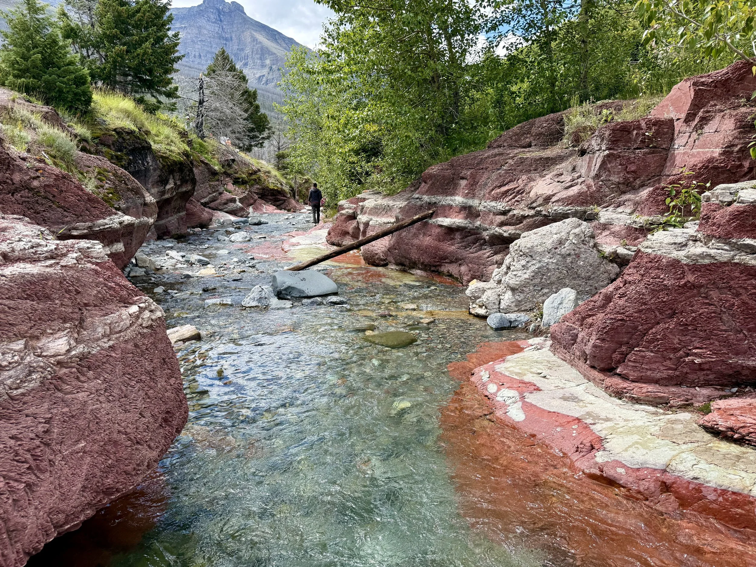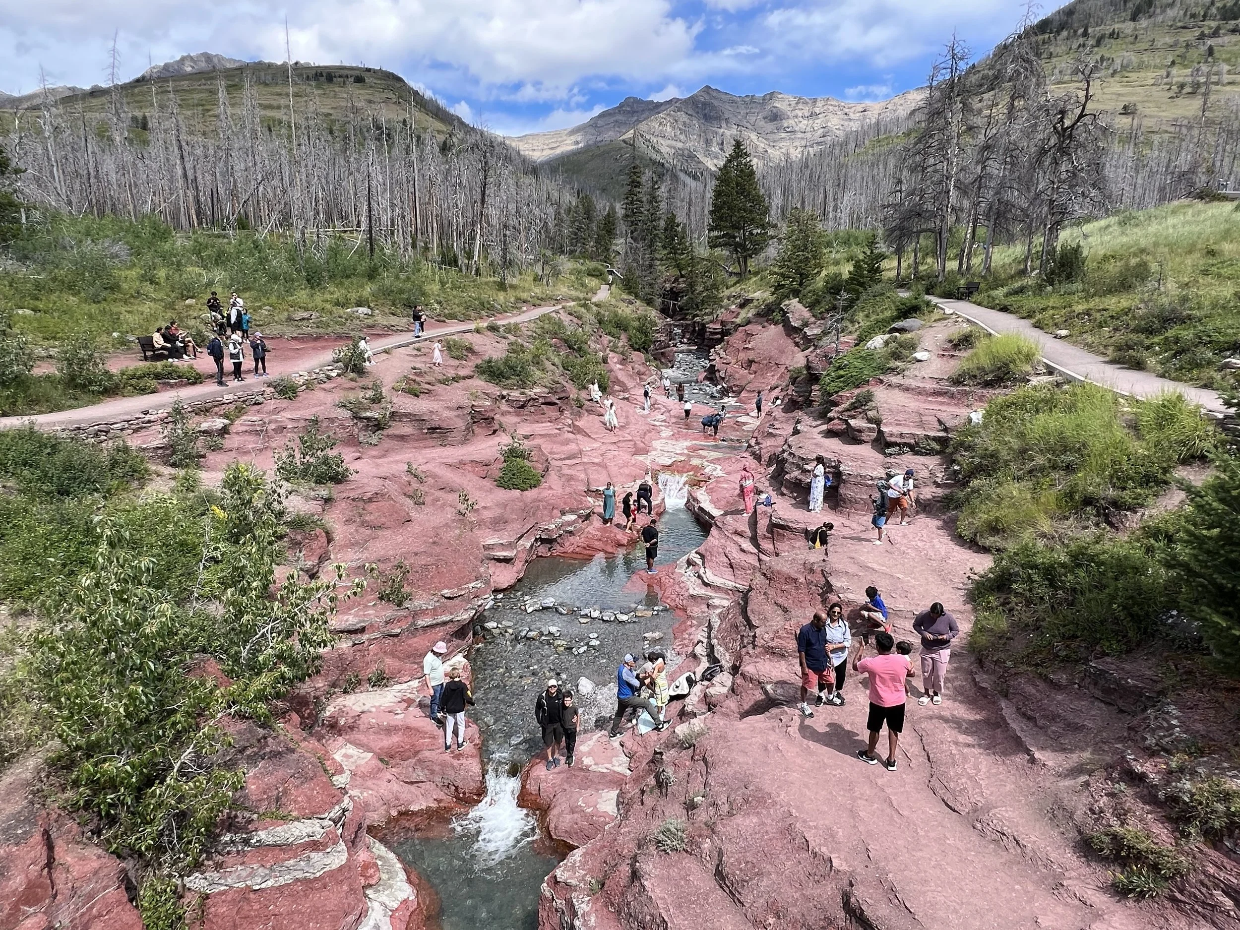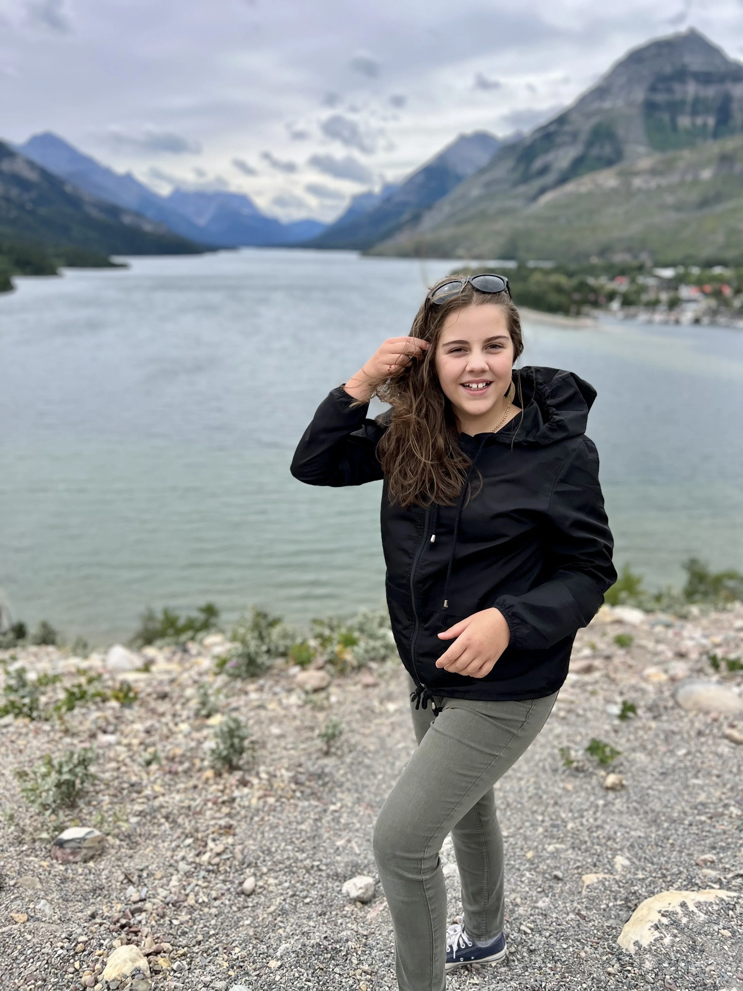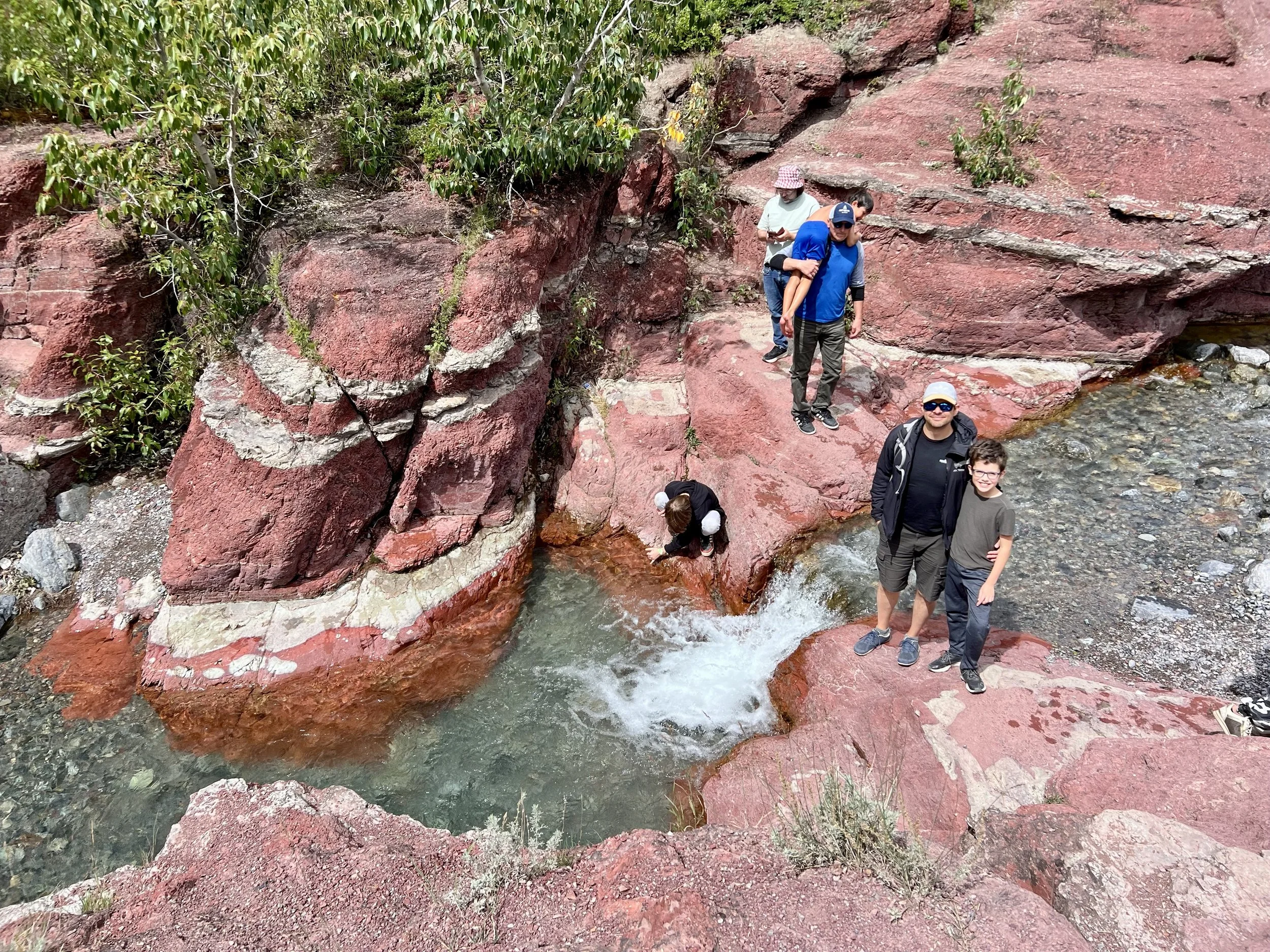 One day we headed out to Waterton National Park, just a 30-minute drive from the ranch. We hiked the Bear’s Hump trail, which rewarded us with a stunning viewpoint at the top—though wow, was it windy (you’ll see in the photos!). At the summit, we met a couple from North Carolina. Funny enough, we told them we’d been there last year and had stayed in a residential neighborhood near a great bakery (Sunflower Bakery). Turns out—they actually live in that same neighborhood! What a coincidence! After our hike, we visited the Prince of Wales Hotel to admire its architecture and, let’s be honest, to do a little sightseeing. We strolled around the hotel—surrounded by water—snapping tons of photos with our hair literally blowing everywhere! Later that afternoon, we explored Blakiston Falls and Red Rock Canyon. Such a variety of landscapes packed into a single day!