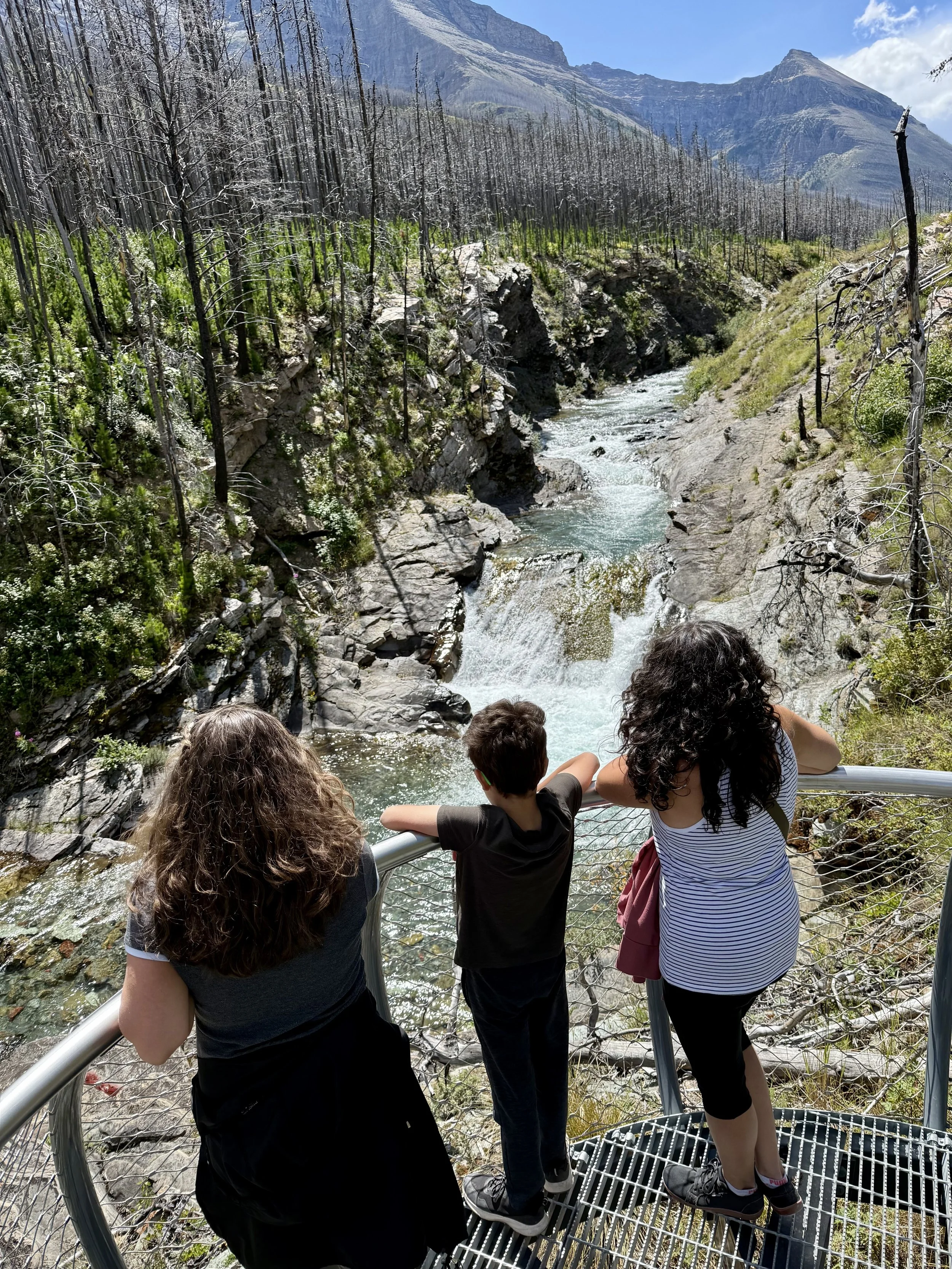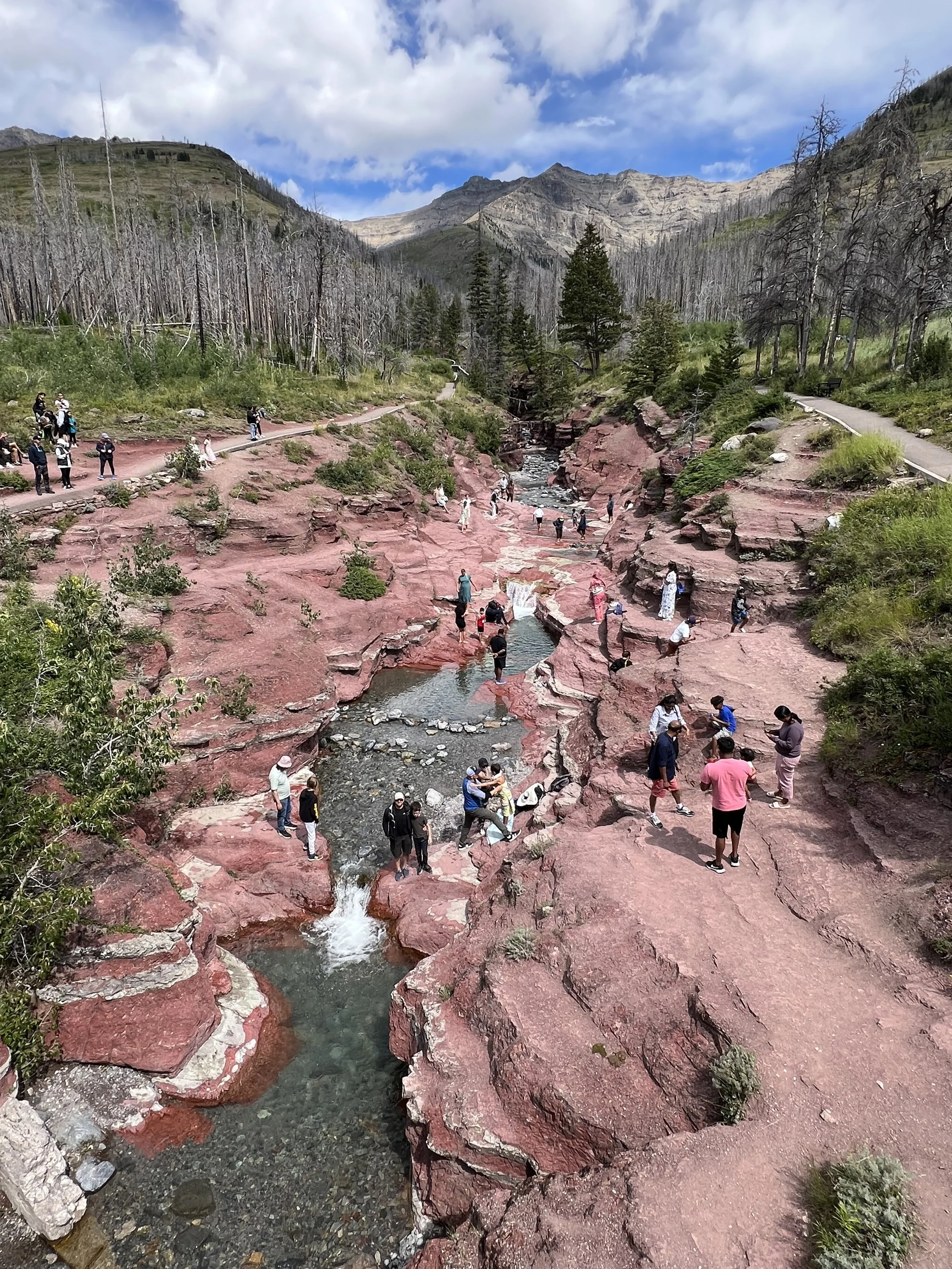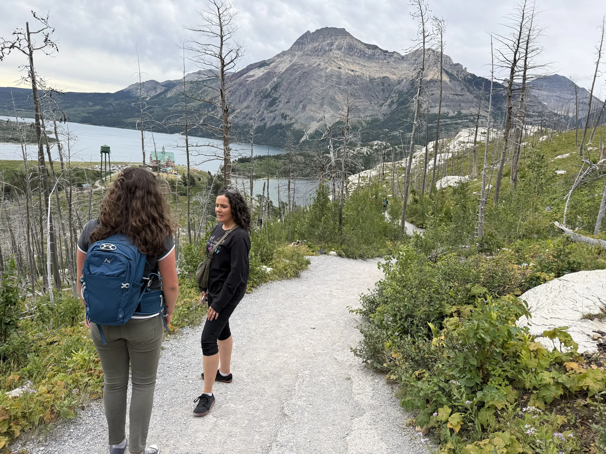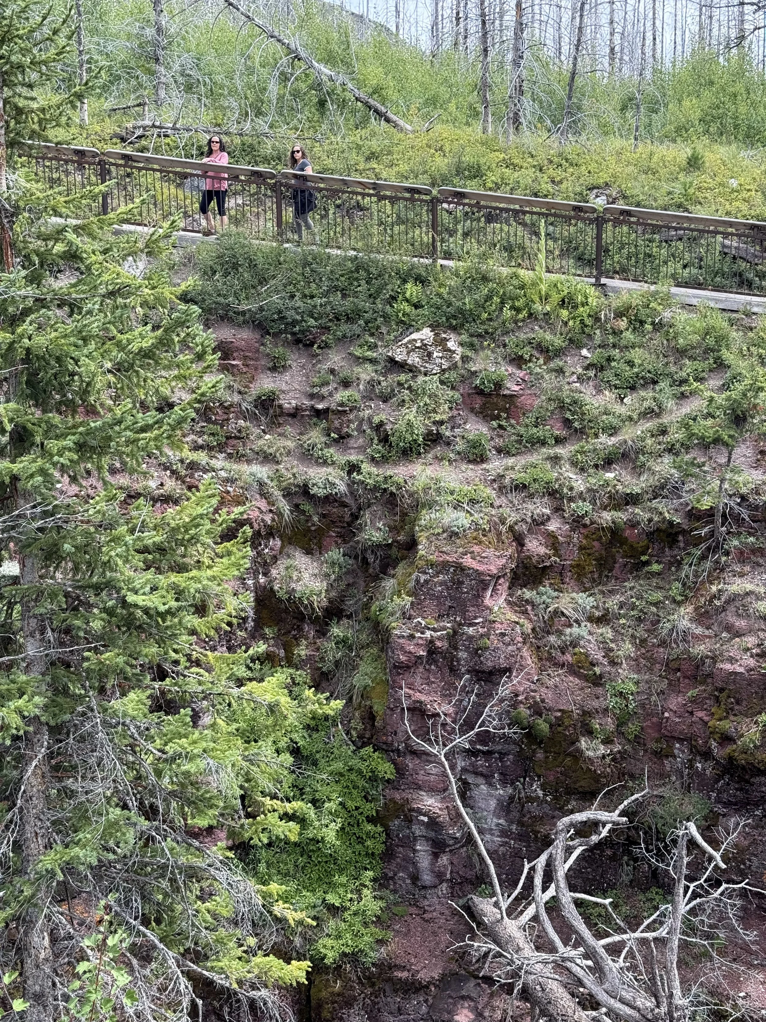 One day we headed out to Waterton National Park, just a 30-minute drive from the ranch. We hiked the Bear’s Hump trail, which rewarded us with a stunning viewpoint at the top—though wow, was it windy (you’ll see in the photos!). At the summit, we met a couple from North Carolina. Funny enough, we told them we’d been there last year and had stayed in a residential neighborhood near a great bakery (Sunflower Bakery). Turns out—they actually live in that same neighborhood! What a coincidence! After our hike, we visited the Prince of Wales Hotel to admire its architecture and, let’s be honest, to do a little sightseeing. We strolled around the hotel—surrounded by water—snapping tons of photos with our hair literally blowing everywhere! Later that afternoon, we explored Blakiston Falls and Red Rock Canyon. Such a variety of landscapes packed into a single day!