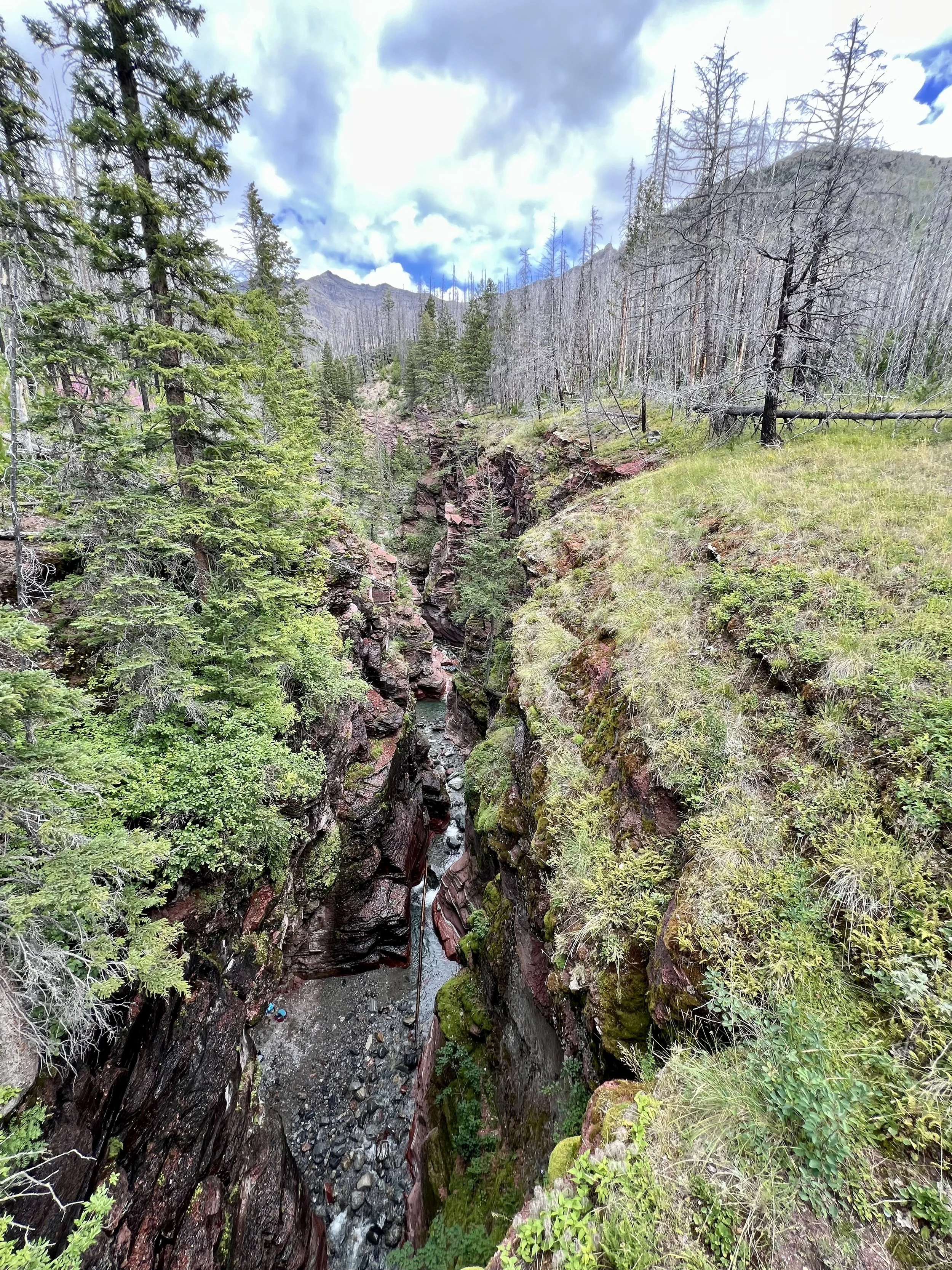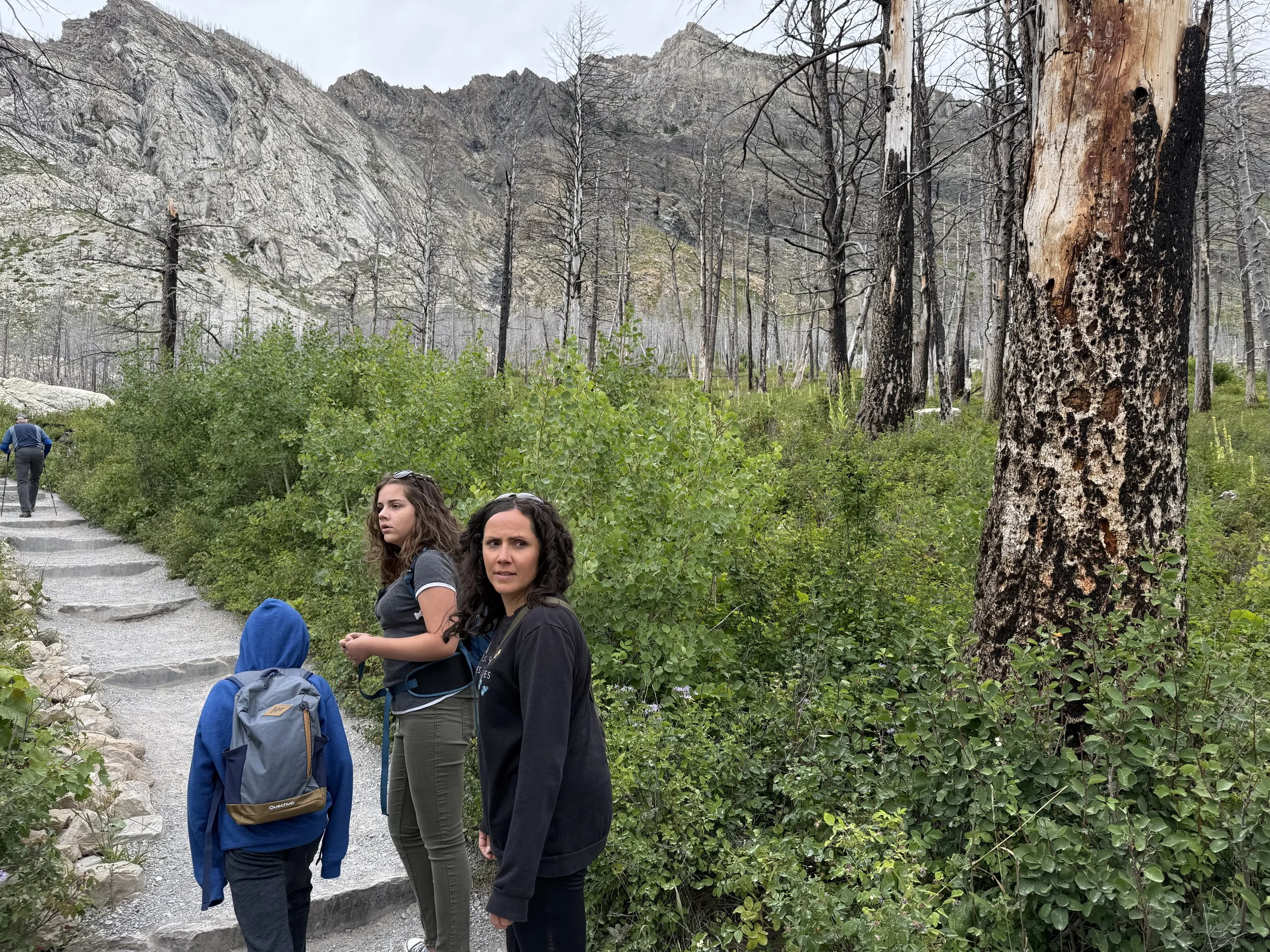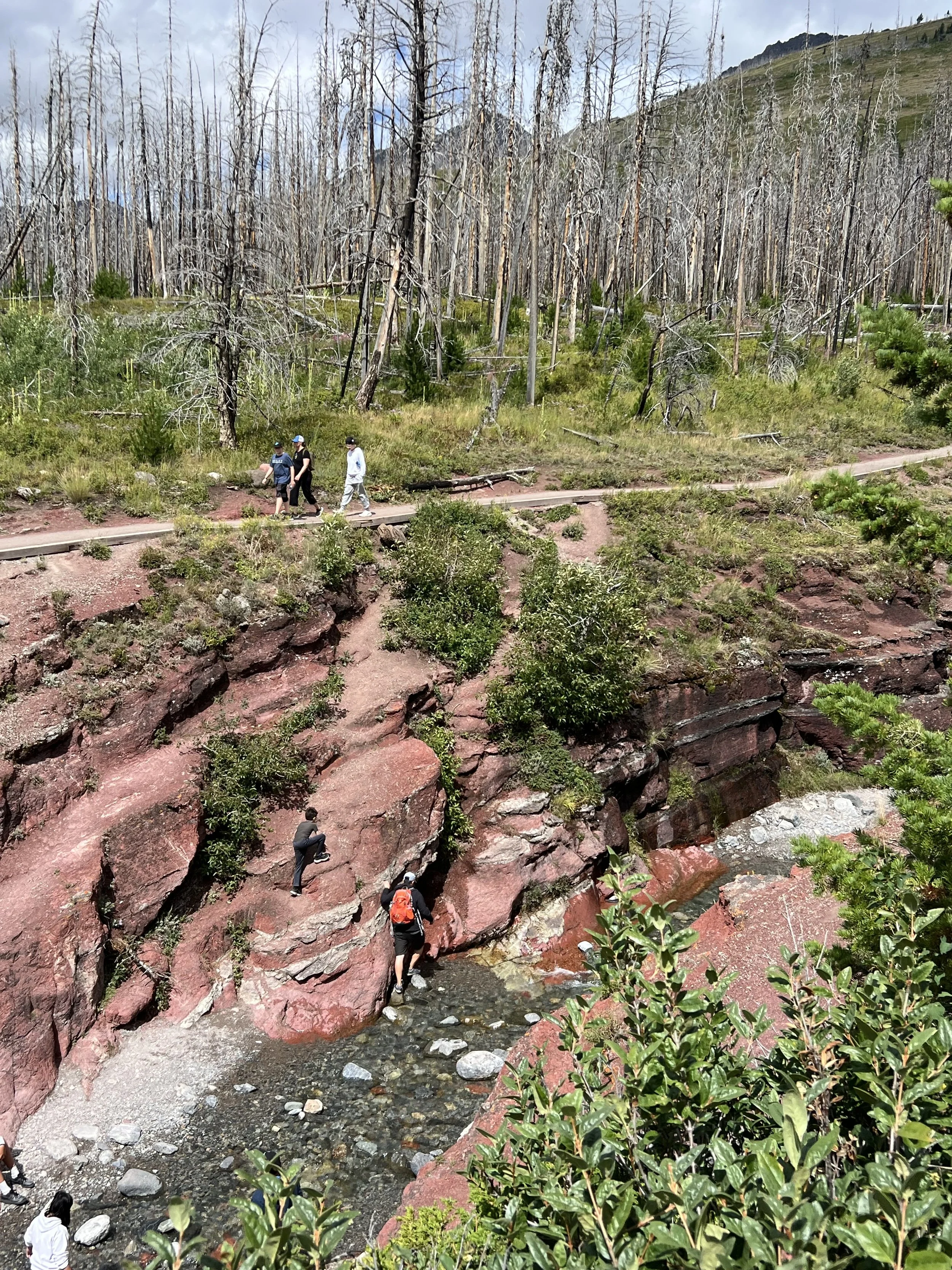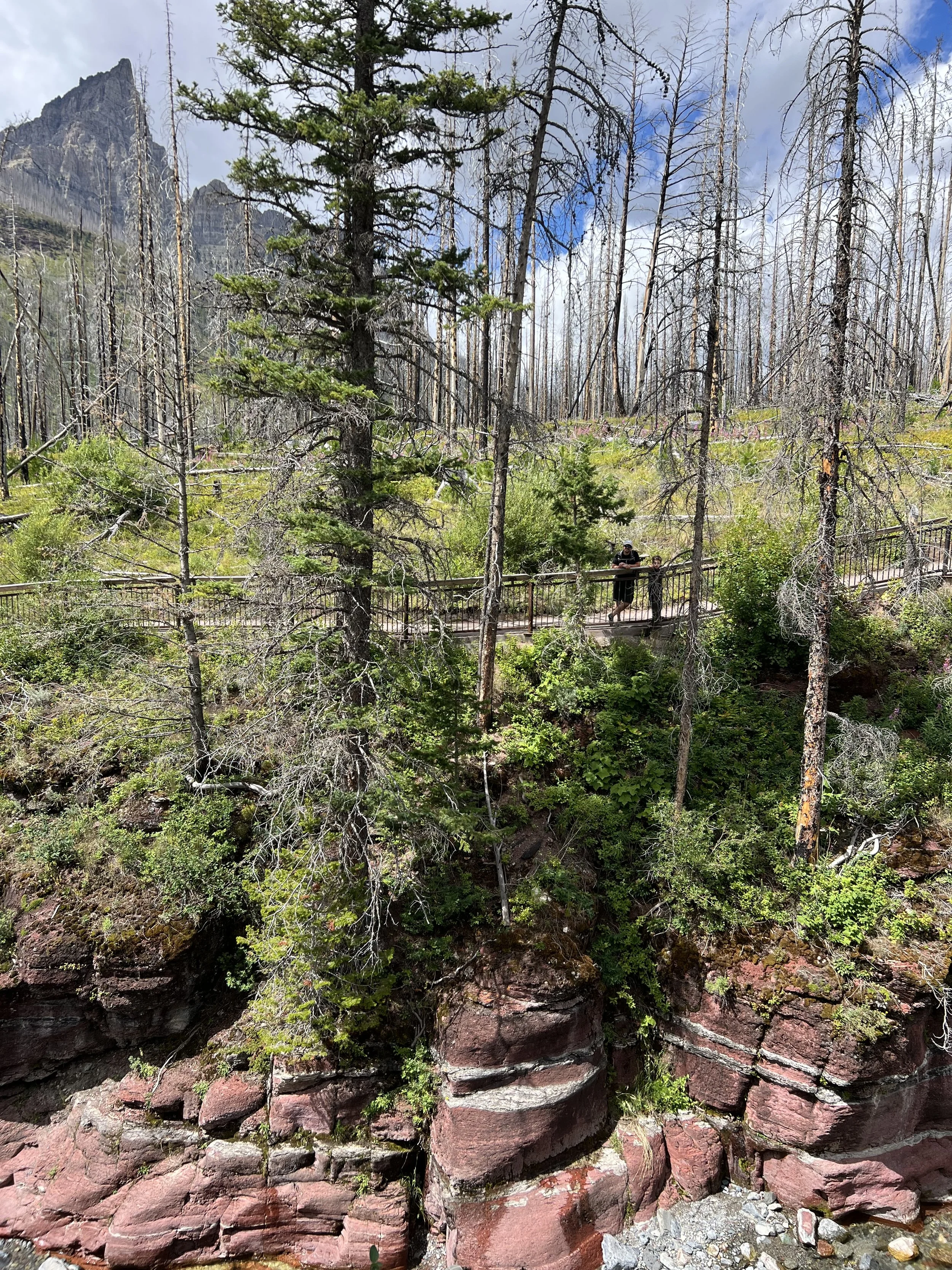 One day we headed out to Waterton National Park, just a 30-minute drive from the ranch. We hiked the Bear’s Hump trail, which rewarded us with a stunning viewpoint at the top—though wow, was it windy (you’ll see in the photos!). At the summit, we met a couple from North Carolina. Funny enough, we told them we’d been there last year and had stayed in a residential neighborhood near a great bakery (Sunflower Bakery). Turns out—they actually live in that same neighborhood! What a coincidence! After our hike, we visited the Prince of Wales Hotel to admire its architecture and, let’s be honest, to do a little sightseeing. We strolled around the hotel—surrounded by water—snapping tons of photos with our hair literally blowing everywhere! Later that afternoon, we explored Blakiston Falls and Red Rock Canyon. Such a variety of landscapes packed into a single day!