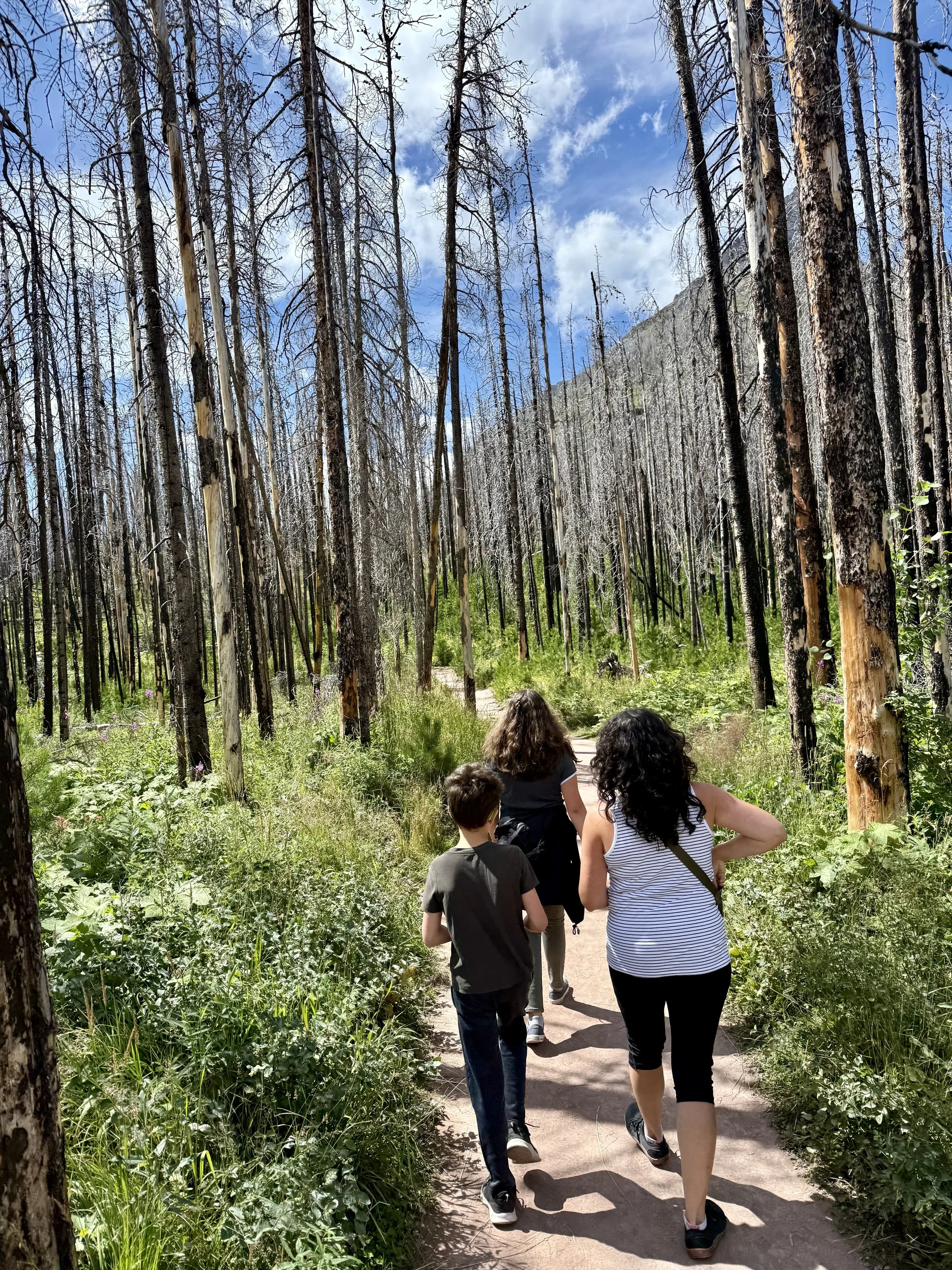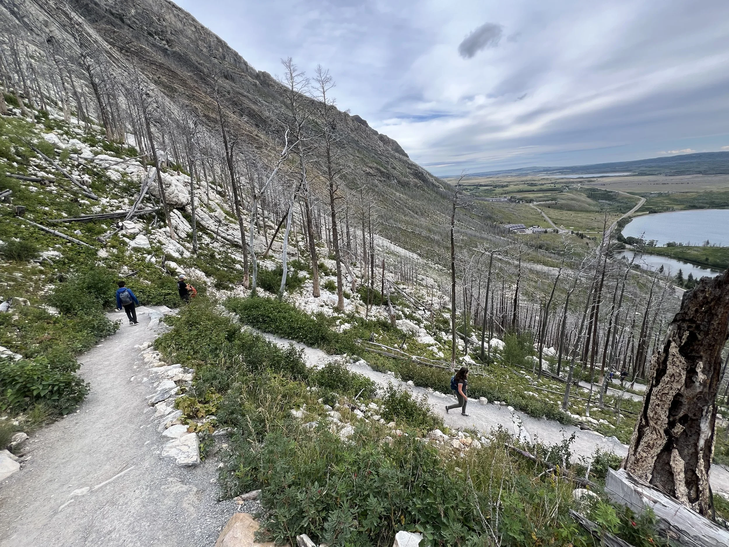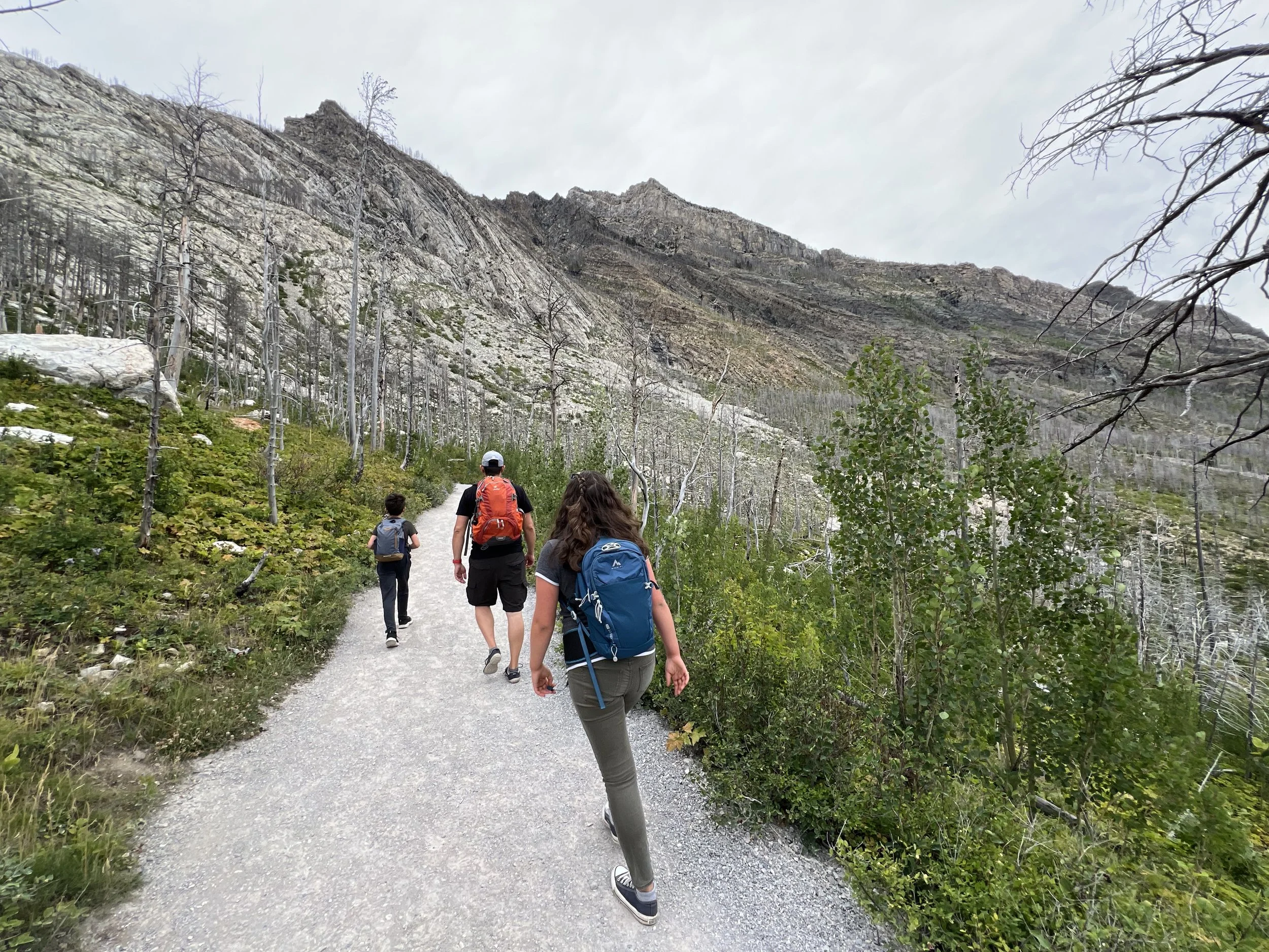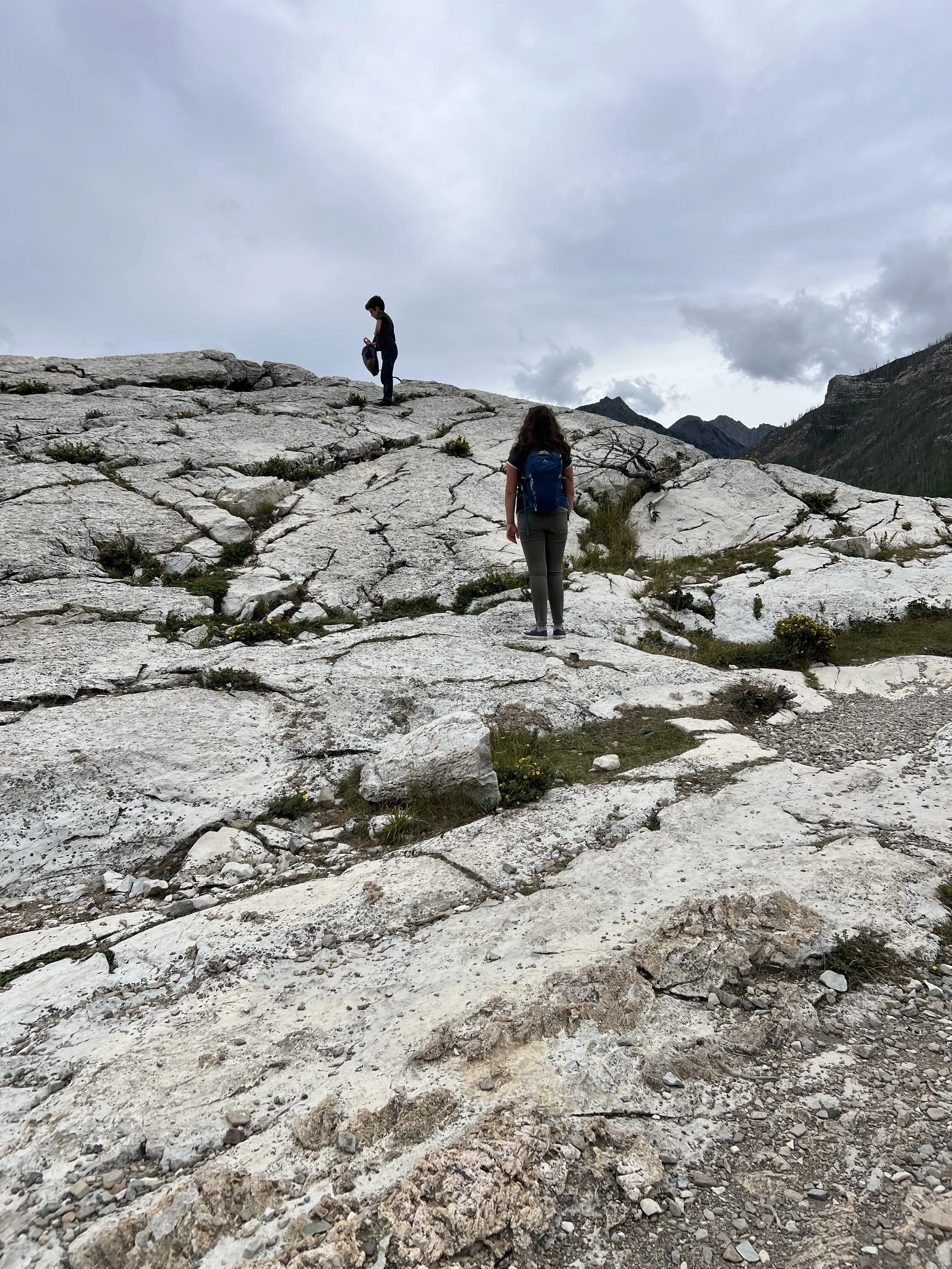 One day we headed out to Waterton National Park, just a 30-minute drive from the ranch. We hiked the Bear’s Hump trail, which rewarded us with a stunning viewpoint at the top—though wow, was it windy (you’ll see in the photos!). At the summit, we met a couple from North Carolina. Funny enough, we told them we’d been there last year and had stayed in a residential neighborhood near a great bakery (Sunflower Bakery). Turns out—they actually live in that same neighborhood! What a coincidence! After our hike, we visited the Prince of Wales Hotel to admire its architecture and, let’s be honest, to do a little sightseeing. We strolled around the hotel—surrounded by water—snapping tons of photos with our hair literally blowing everywhere! Later that afternoon, we explored Blakiston Falls and Red Rock Canyon. Such a variety of landscapes packed into a single day!