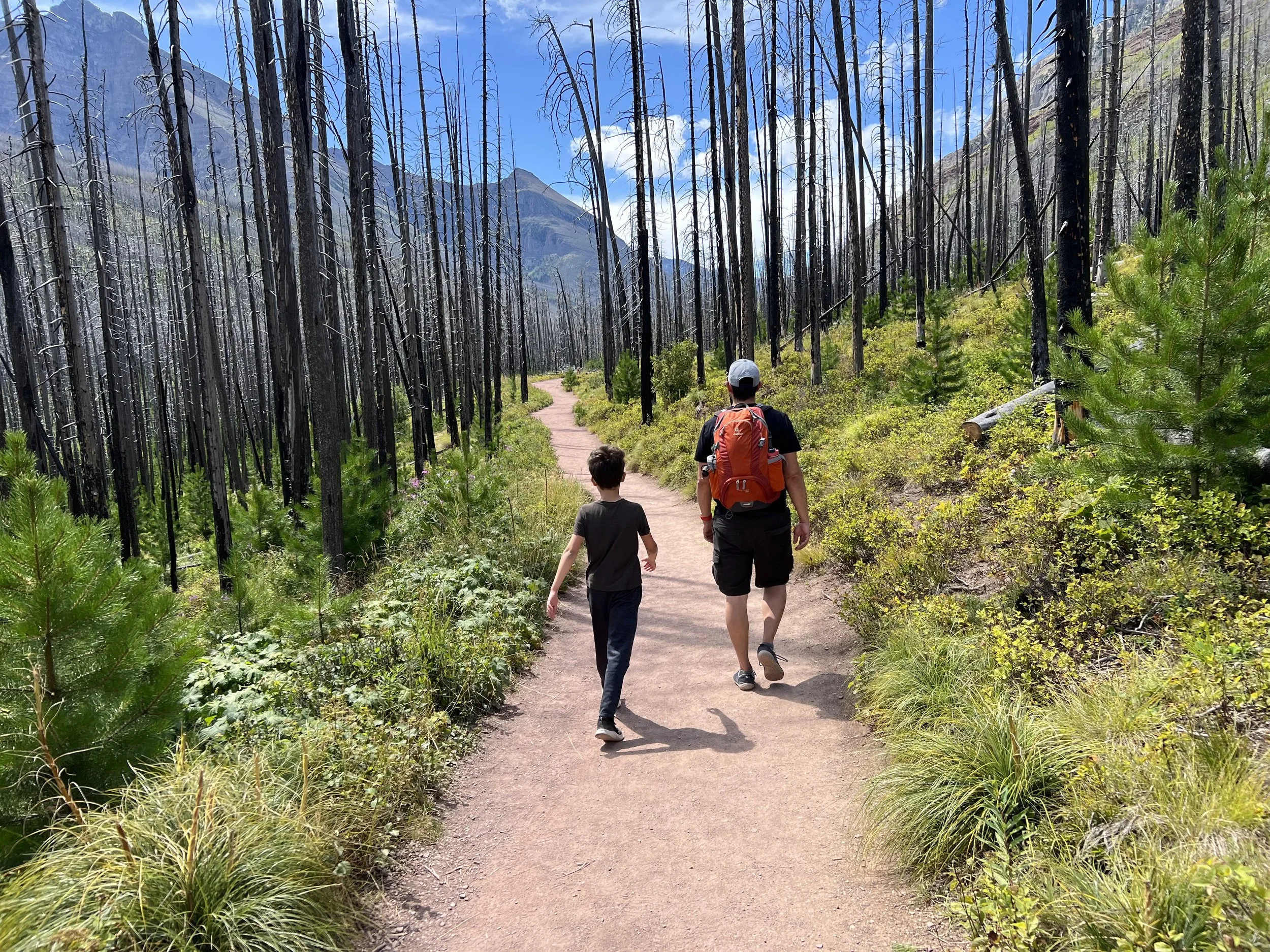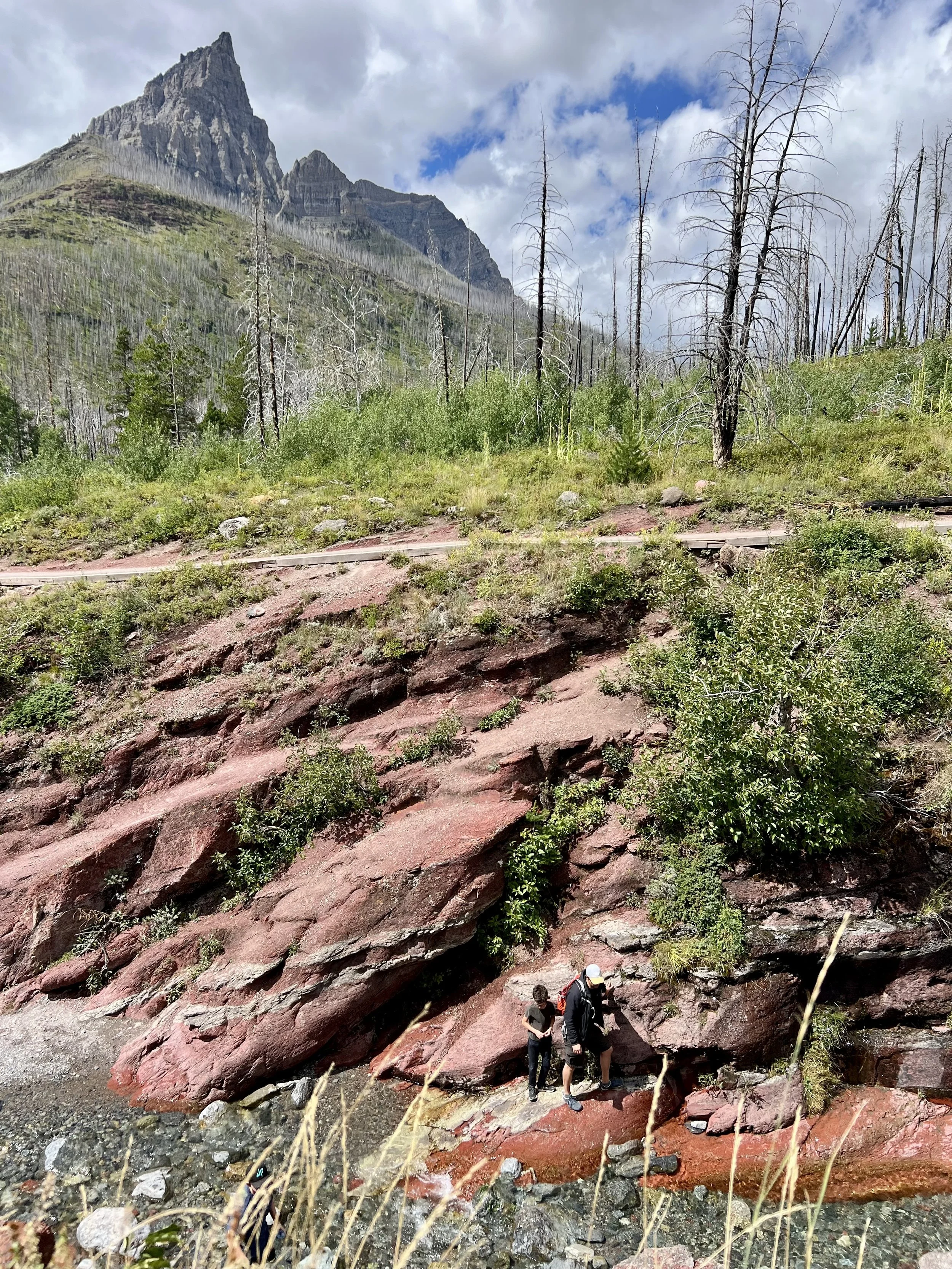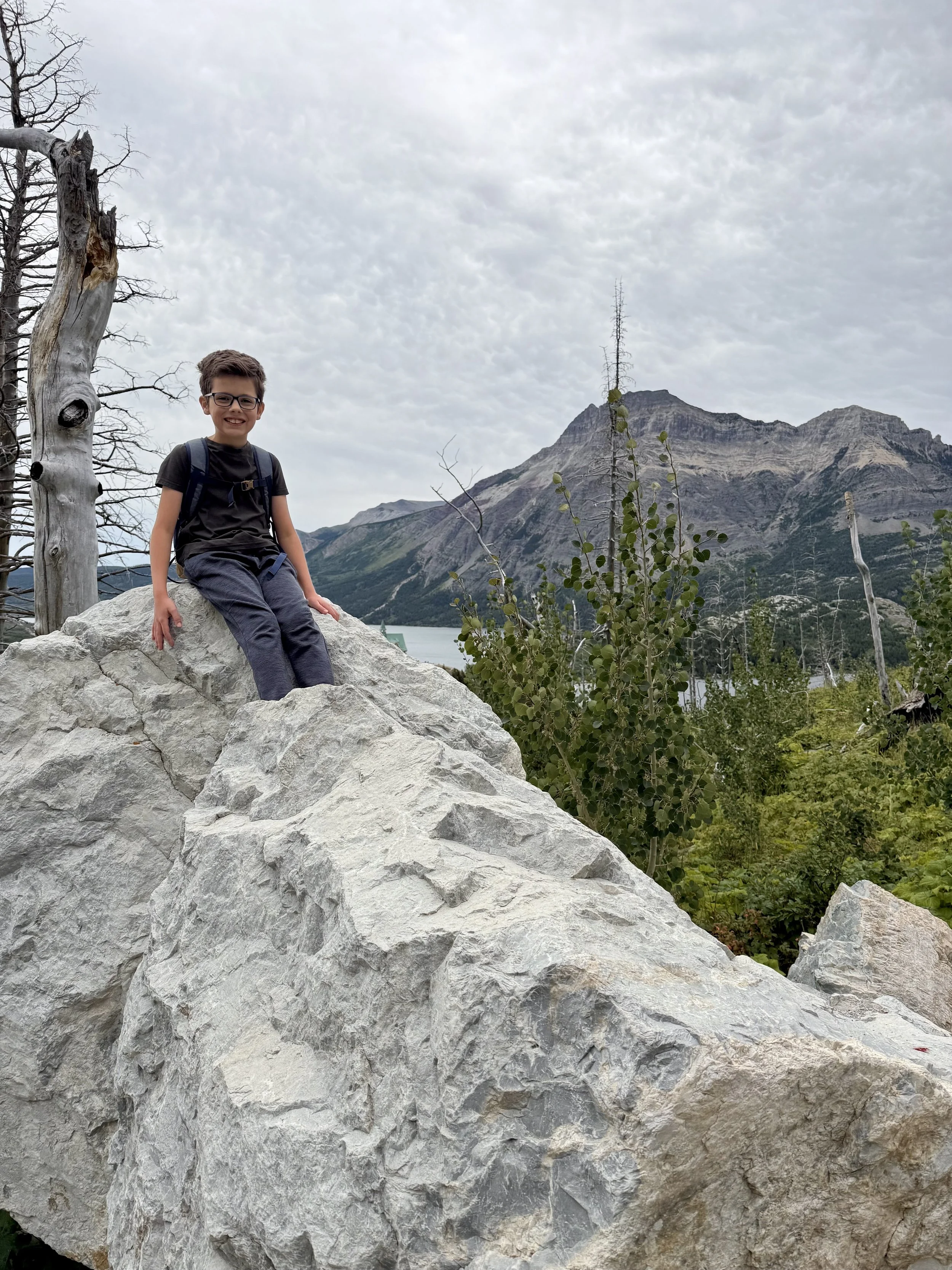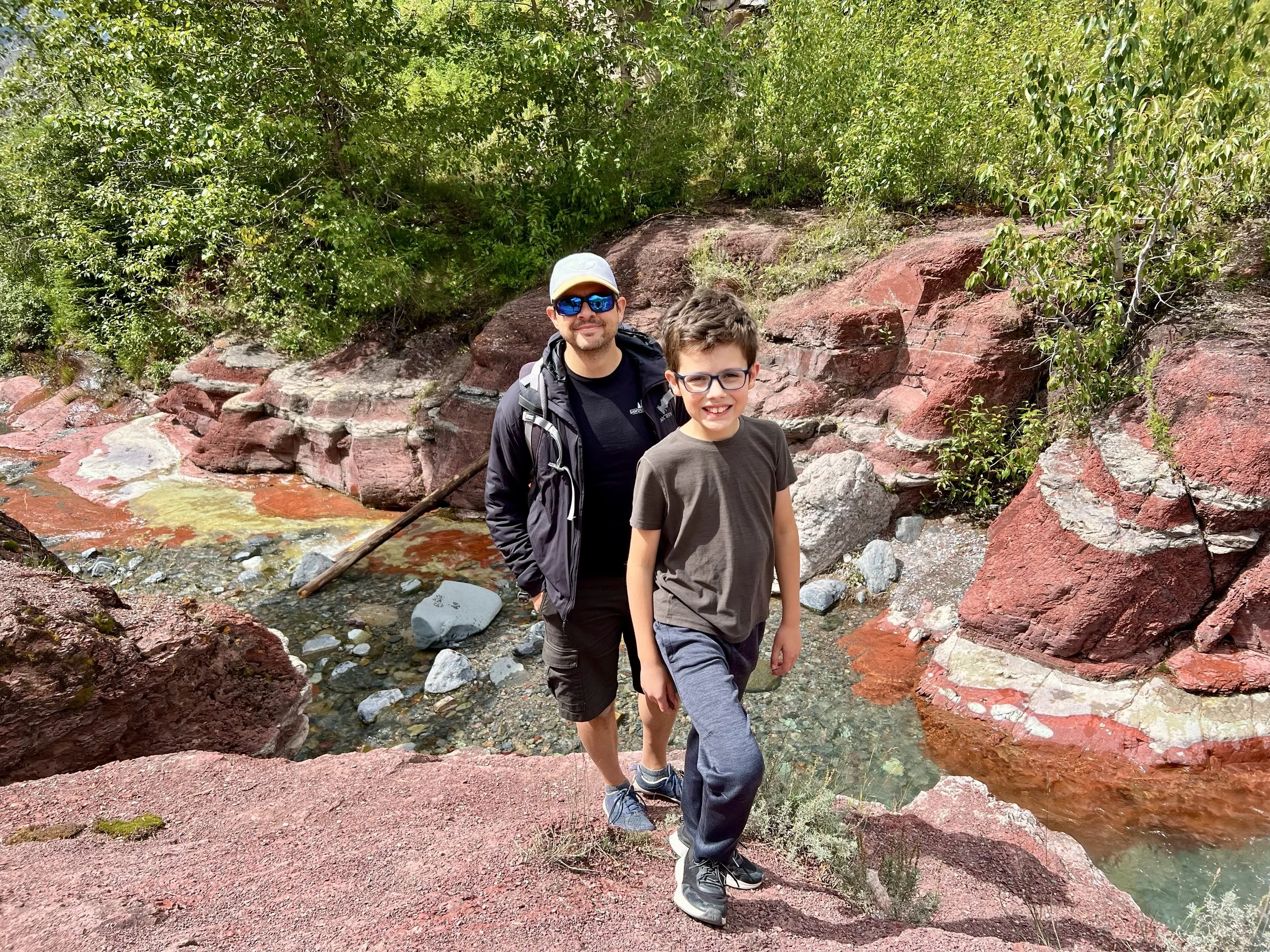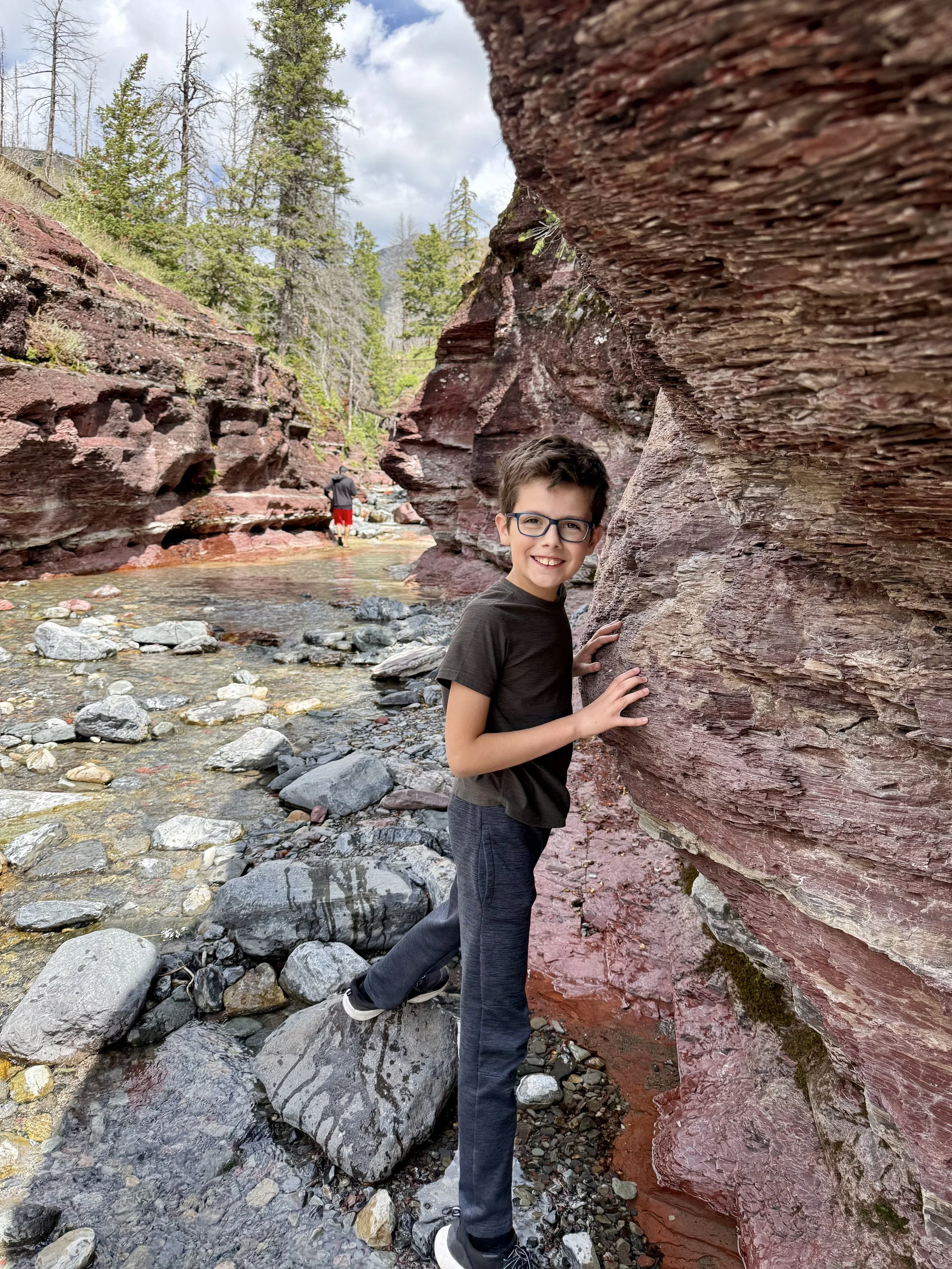 On a pris une journée pour aller au Waterton National Park, à peine à 30 minutes du ranch. On a fait une belle randonnée (Bear’s Hump) nous donnant un très beau point de vue rendus en haut, mais ouf que c’était venteux (vous le verrez sur les photos!). Au sommet, on a rencontré un couple qui venait de la Caroline du Nord et, fait cocasse, on leur disait qu’on était allé en Caroline du Nord l’an dernier et qu’on était stationné à ce moment-là dans un quartier résidentiel près d’une très bonne pâtisserie (Sunflower Bakery) et, funny enough, ils habitent ce quartier!! C’était vraiment spécial! Après notre randonnée, on est allés au Prince of Wales Hotel pour voir l’architecture de la place et, avouons-le, pour “yeuter” un peu! On en a profité pour se promener autour de l’hôtel qui est entouré d’eau et faire plein de photos avec, littéralement, les cheveux dans le vent! En après-midi, on a fait une belle randonnée pour voir les Blakiston Falls et le Red Rock Canyon. Une belle variété de paysages en une seule journée!