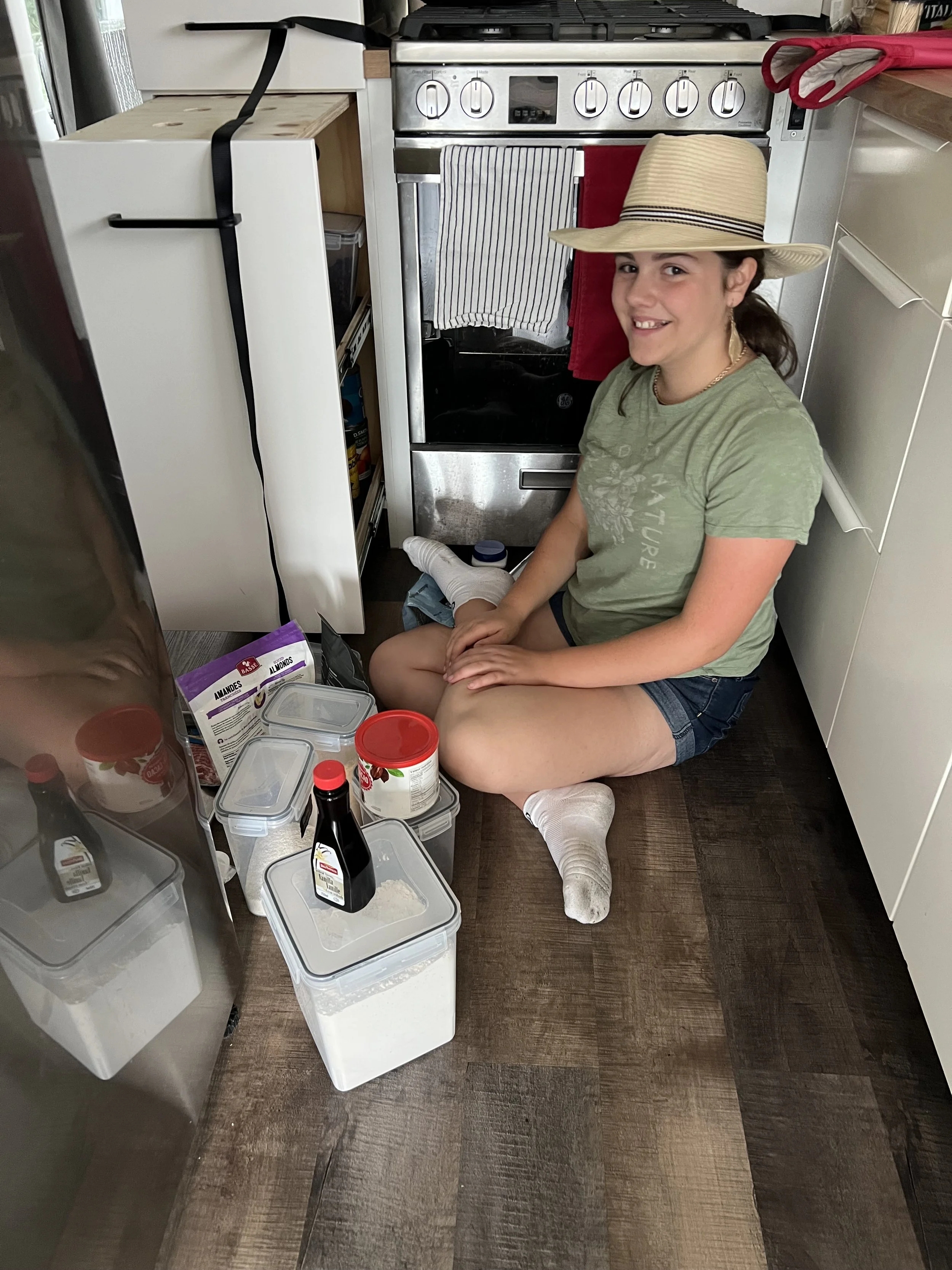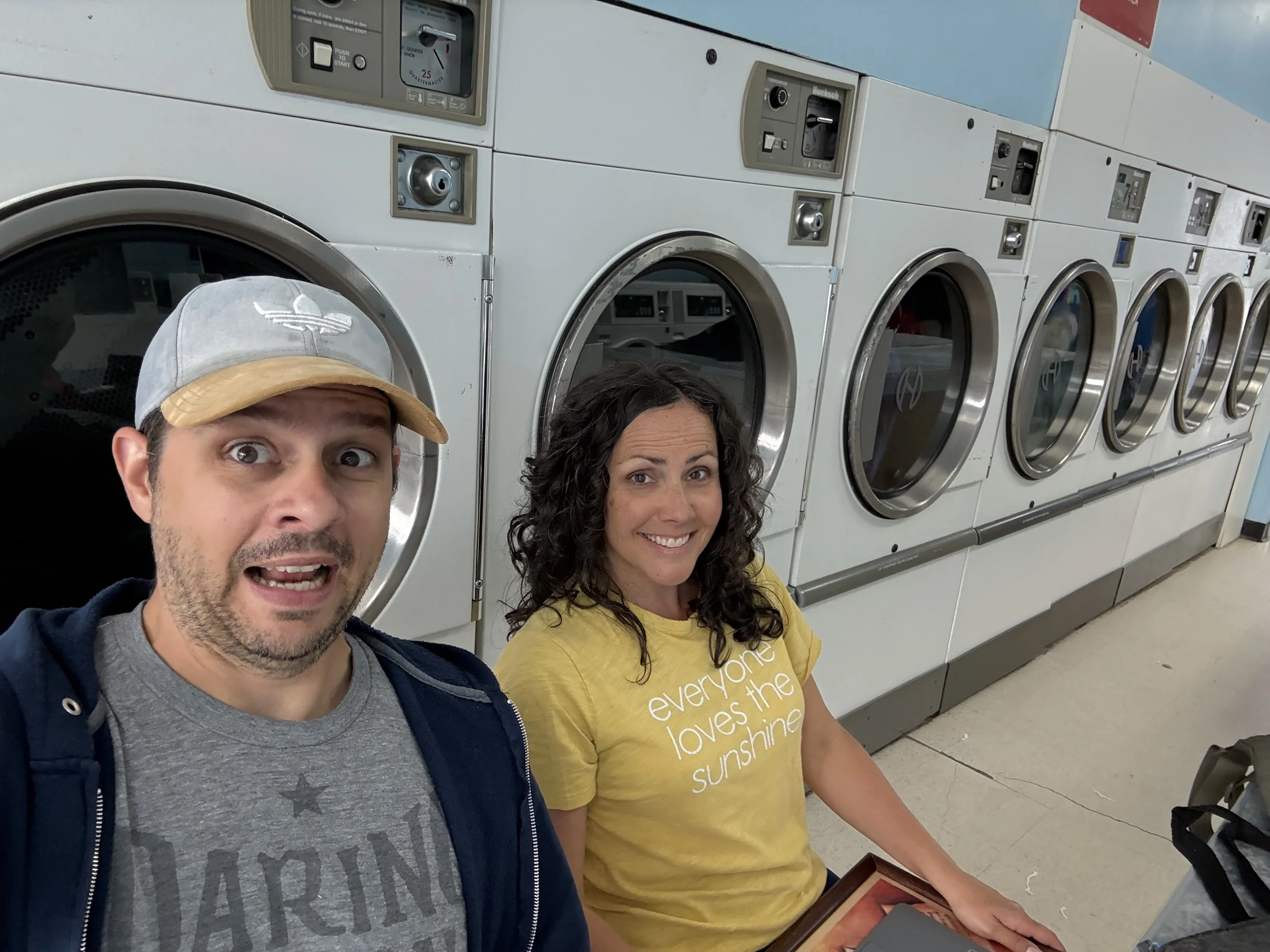 Étant une semaine plus fraîche en terme de température, Anaya et moi en avons profité pour cuisiner des muffins. Le four réchauffe rapidement l’habitacle de l’autobus donc faut bien coordonner son utilisation avec la température (ça fait partie des ajustements à la vie sur la route!). C’était aussi le temps pour la buanderie. Cette fois, mon mari et moi sommes allés seuls pendant que les enfants sont restés sur le site (on prend toutes les occasions qu’on peut pour se faire une petite date, même si c’est pour la buanderie 😂).