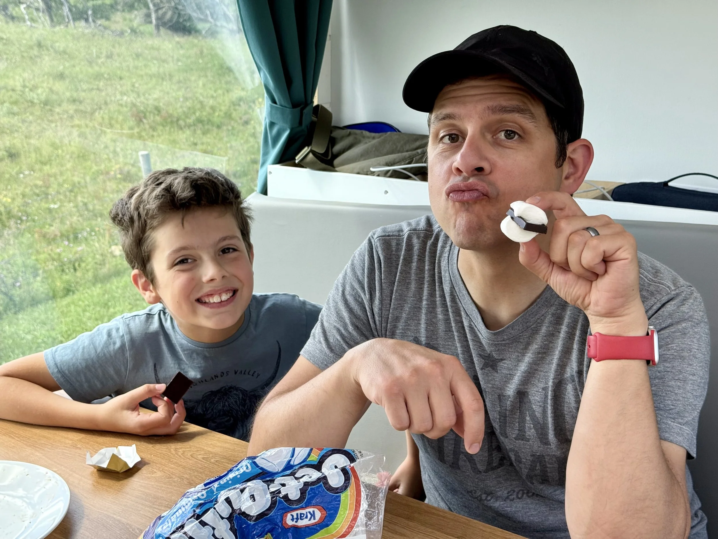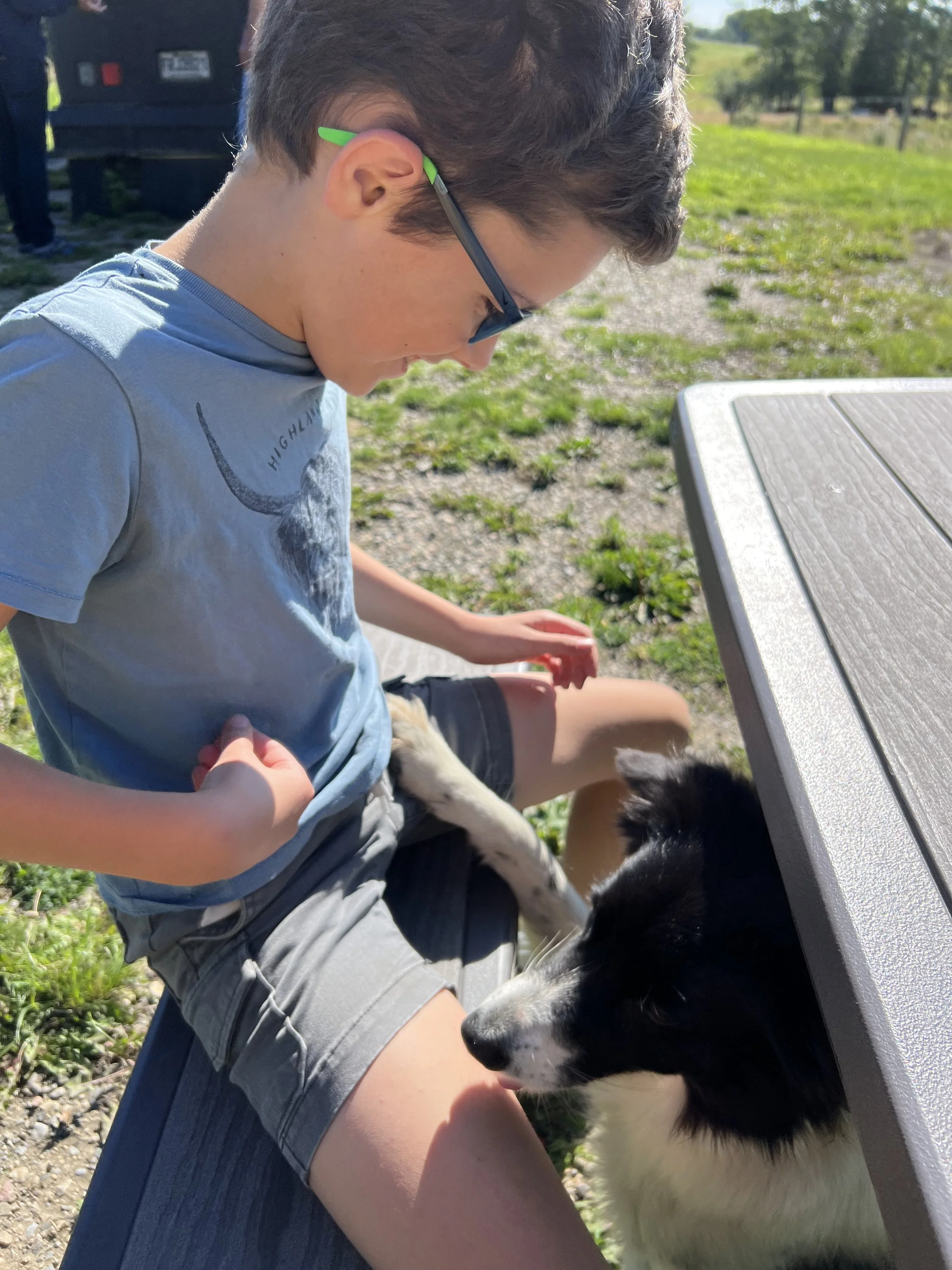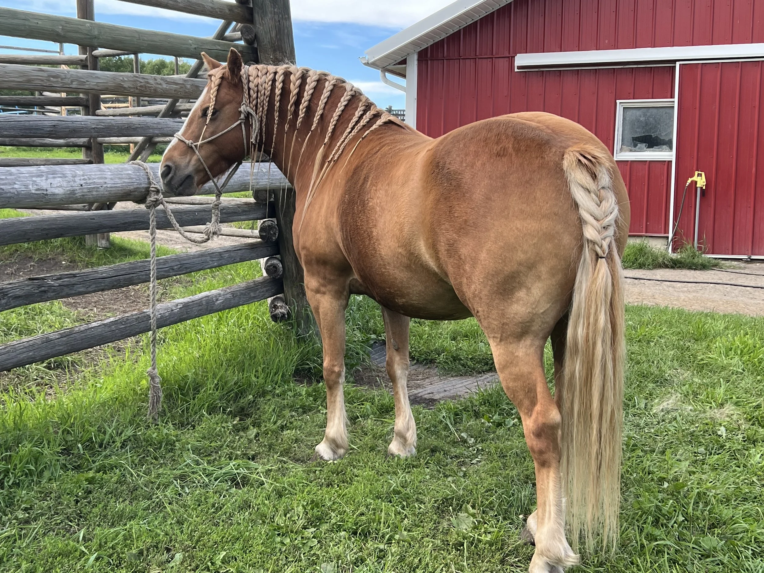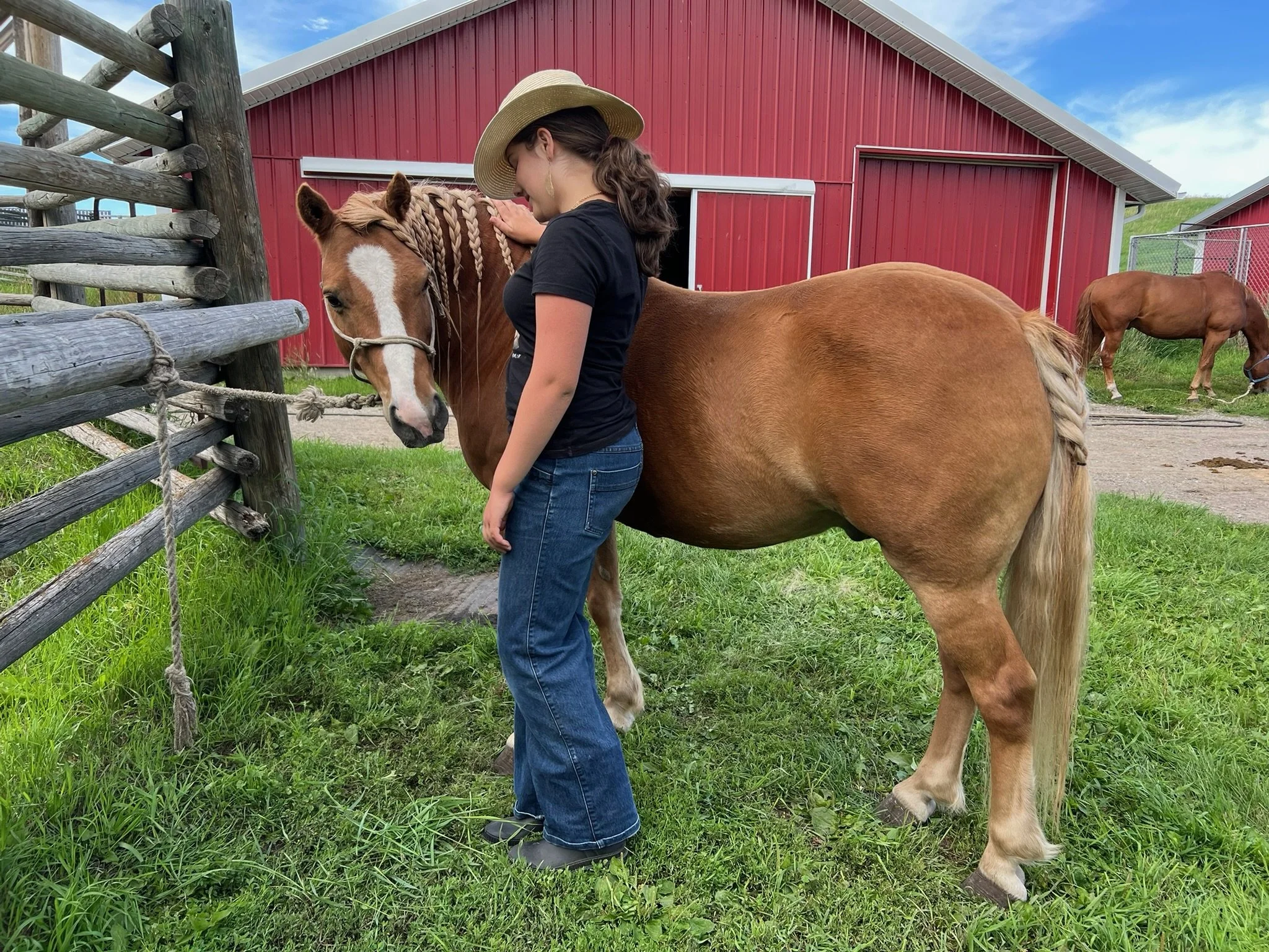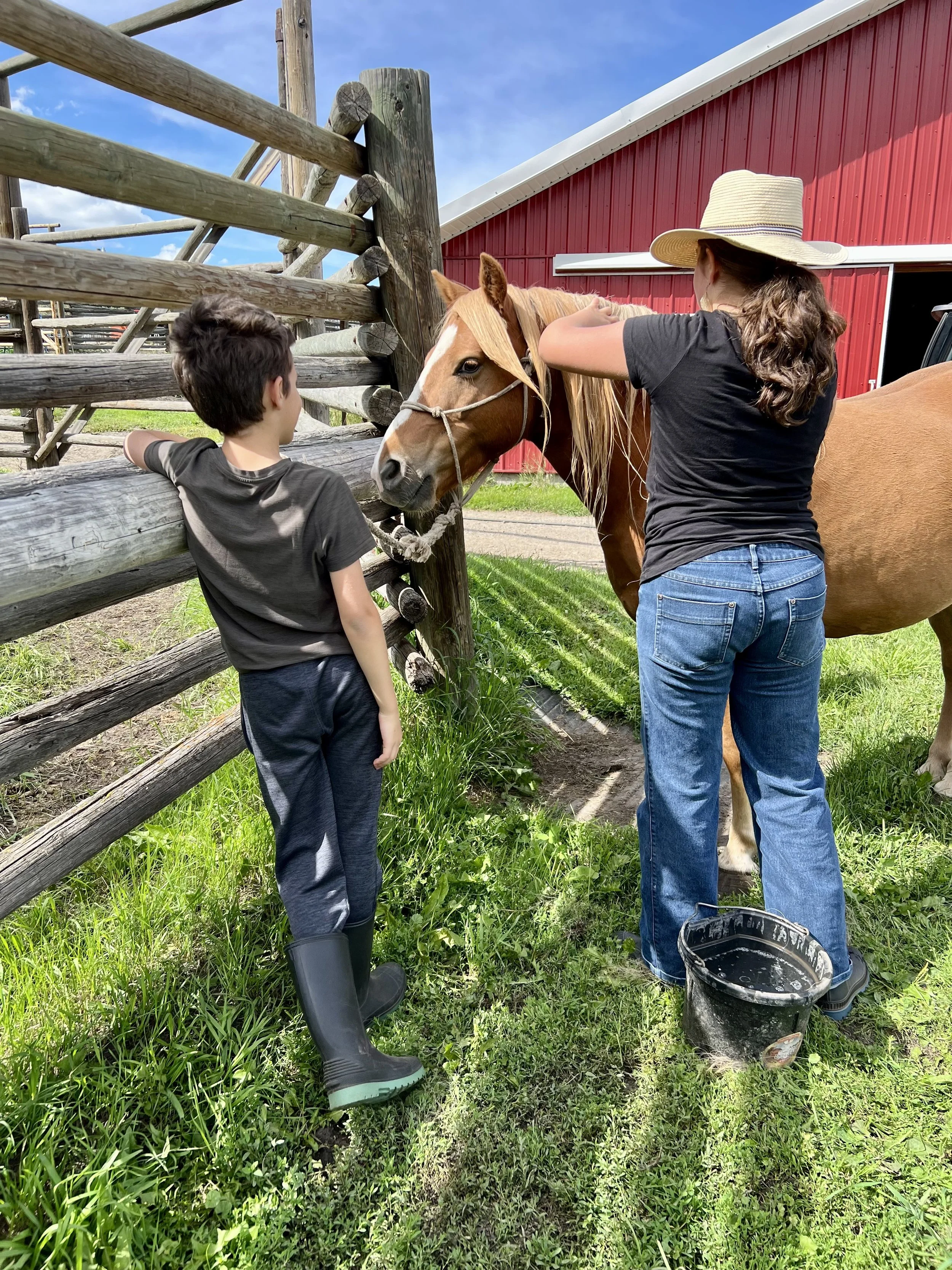 Pat took the time to show Anaya a new way of putting on a horse halter. She even had the chance to feed a foal and its mother—who weren’t exactly keen on eating from someone’s hand at first. But Anaya won them over! She also set herself up with a chair near the outdoor pens to watch and sketch the horses. To top it off, our hosts let Anaya brush, detangle, and braid the mane of a beautiful Haflinger pony. She was thrilled! As for Theo, his highlight was when Ken let him drive their four-wheeler!
