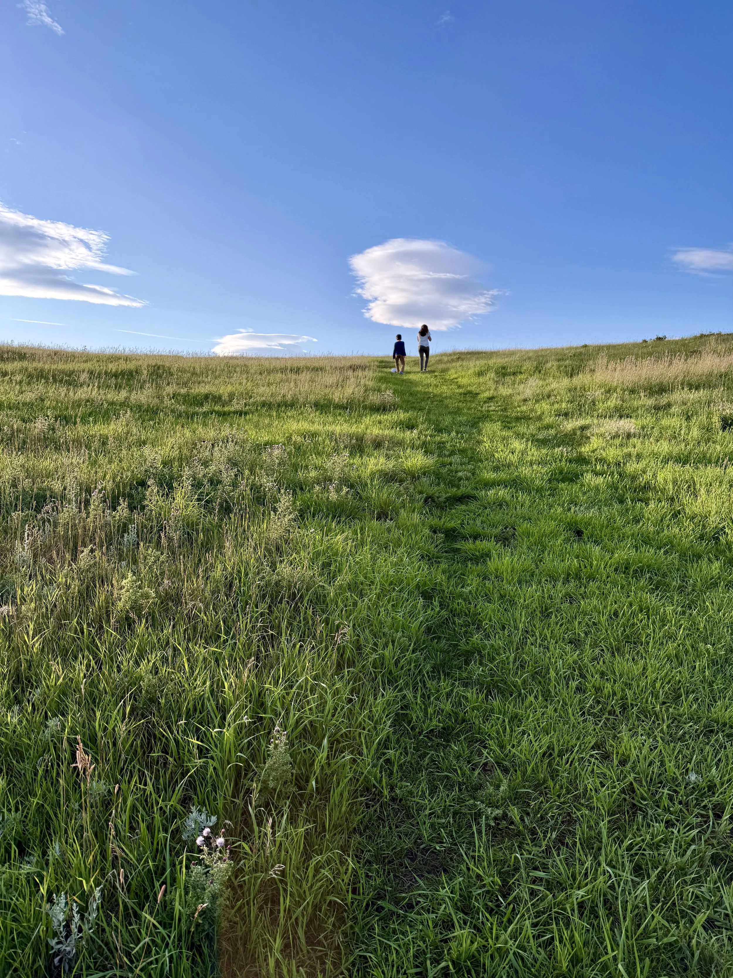 Our hosts’ land stretched beyond the ranch itself. Behind their house, there was a lovely trail winding through the rolling hills. We walked it at sunset, and it was absolutely breathtaking.