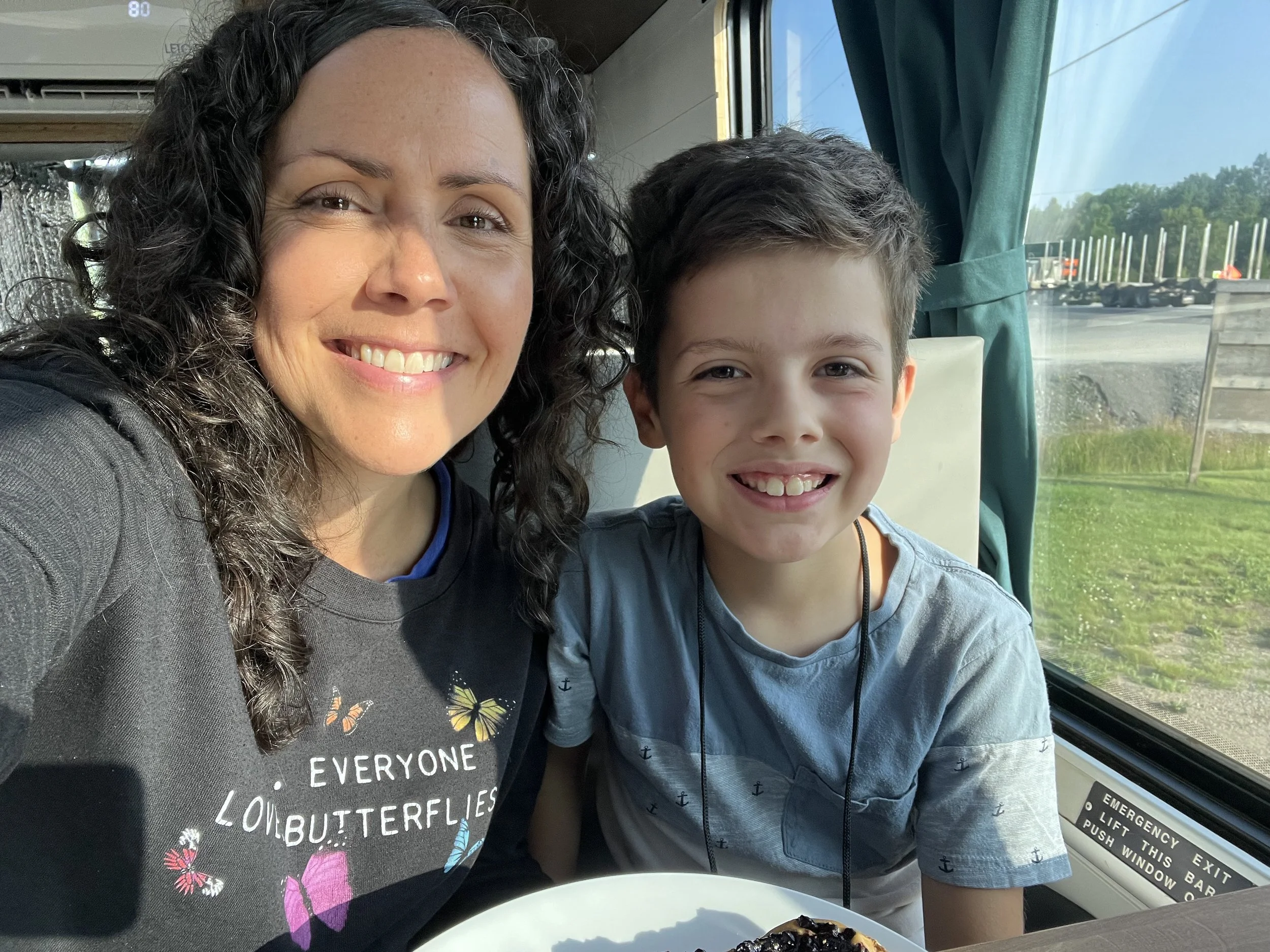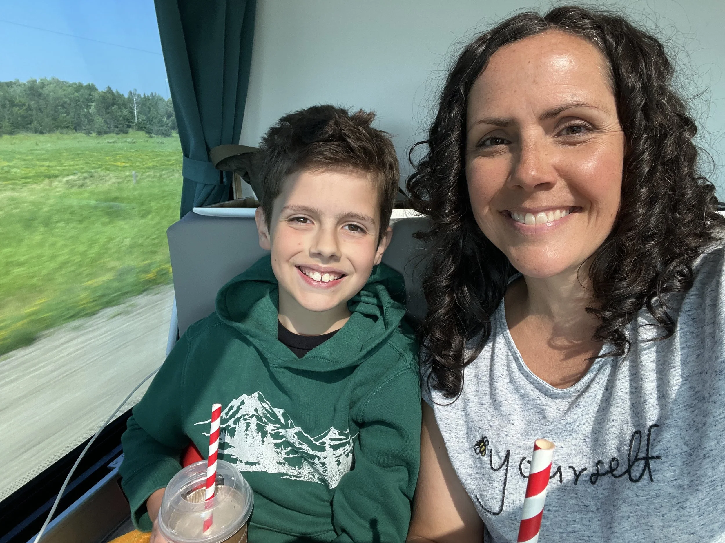 On s’est rendus au Manitoba de peine et de misère, mais on y est parvenus! On avait un brunch prévu avec un ancien collègue de travail de Pierre Luc ce matin-là, mais vu toutes nos mésaventures, on a plutôt fait un souper improvisé. La soirée passée avec Duane, Anita et leur fils Lucas nous a fait du bien : un succulent repas (sans gluten ni lait!), une terrasse chaleureuse, du plaisir avec leurs chiens et des discussions intéressantes!