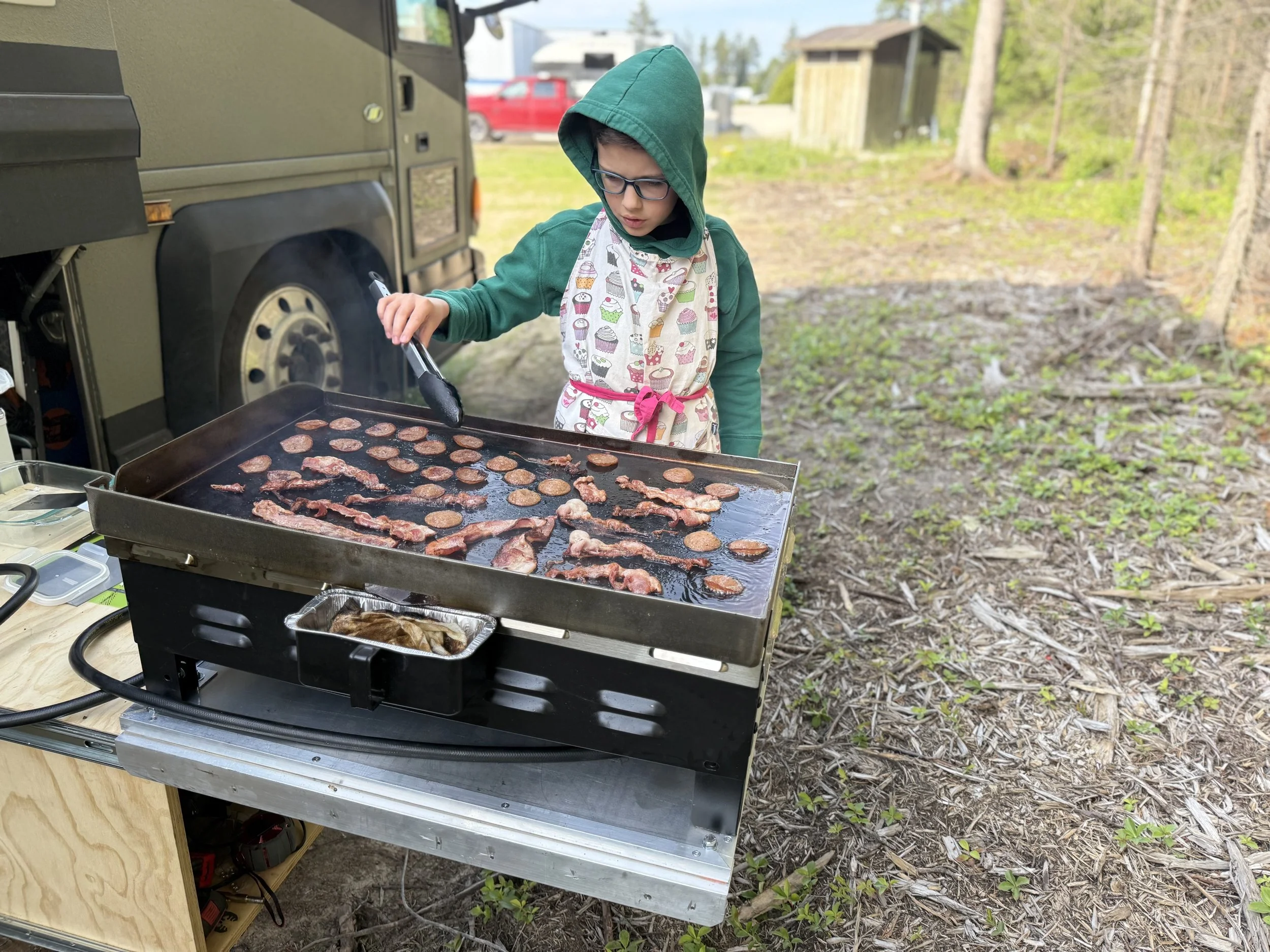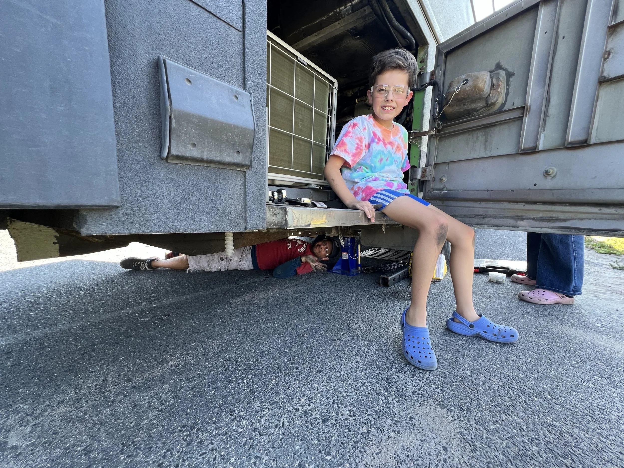 The return to the bus, however, wasn’t as pleasant. In our rush to join them, we’d forgotten to turn off the AC. By bedtime, our batteries were down to 20%. We figured we’d squeak through the night, but just an hour and a half after falling asleep, alarms blared—the batteries were dead. The bus was hot, the fridge was at risk, and we were utterly drained.