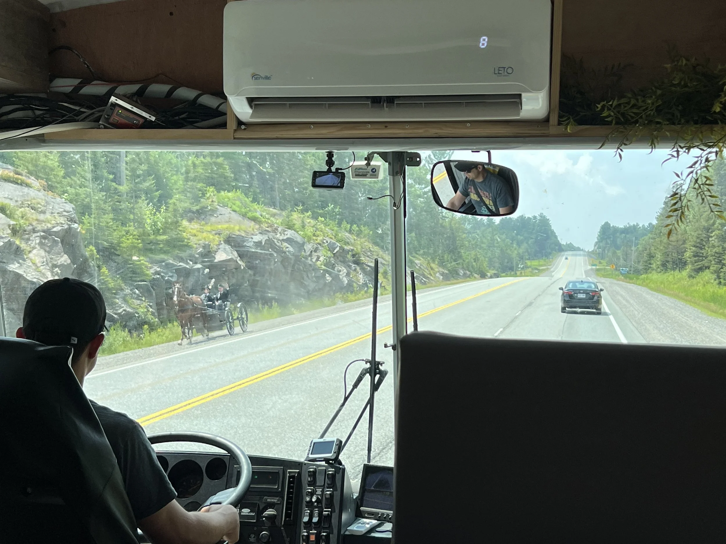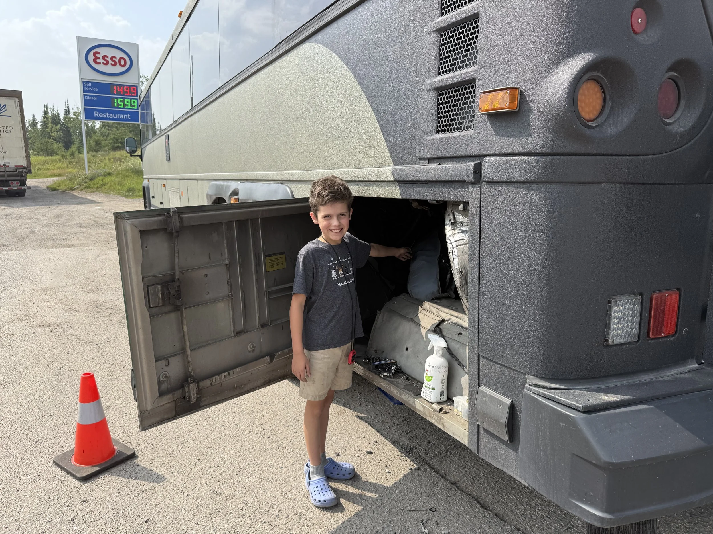 We left their place on Sunday morning (sadly missing church that day) since we had about 600 km ahead of us to reach Sault Ste. Marie for the night. Not long into the drive, we noticed an unusual smell inside the bus. We couldn’t place it and weren’t too worried… at first.