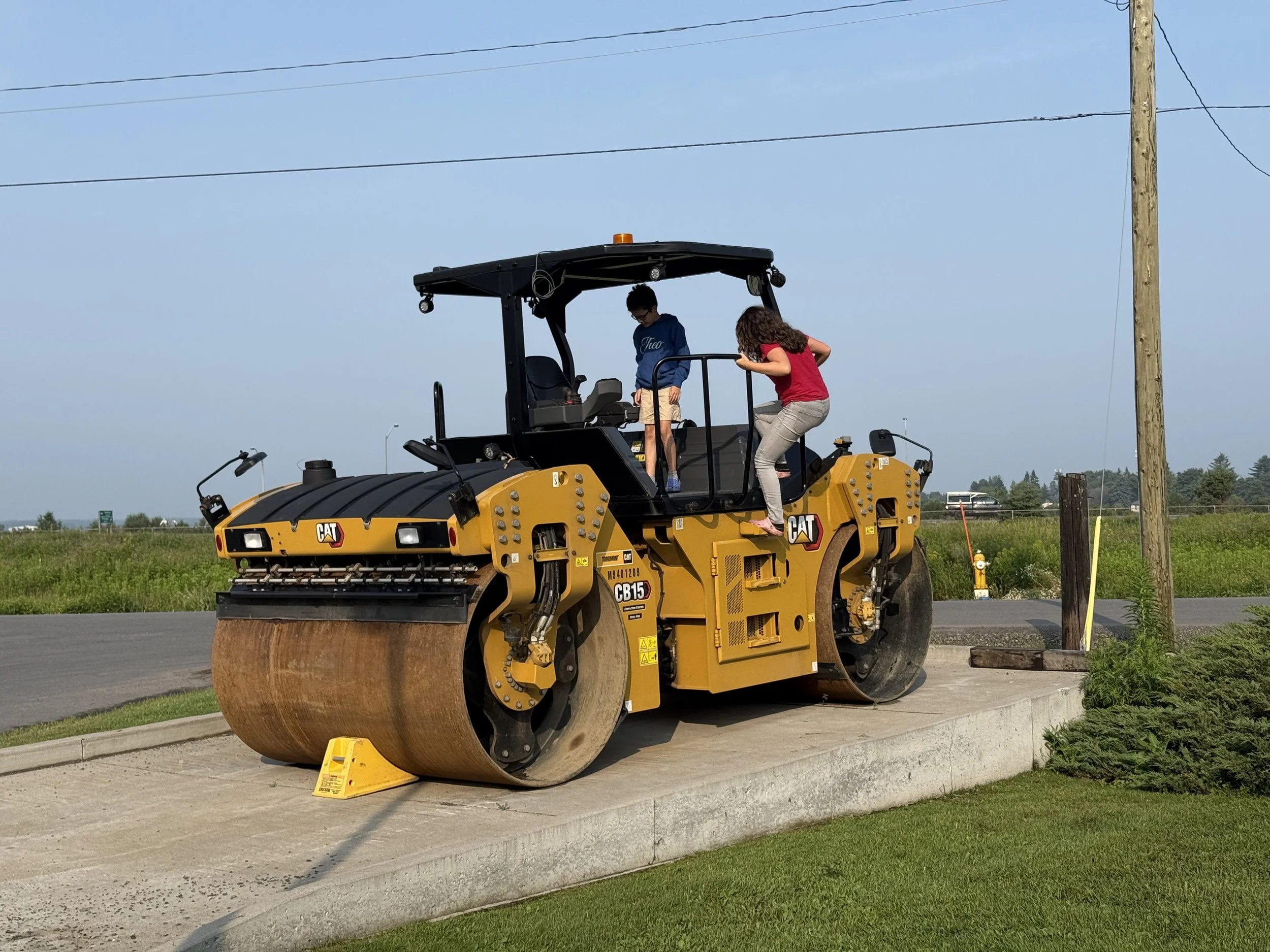 Just before reaching our hosts in Thunder Bay, Pierre Luc spotted a Caterpillar service center. With God, there are no coincidences! We booked an appointment, worried it might be an engine problem. Thankfully, the verdict was better: the engine itself was fine, but the computer had recorded an incident in the exhaust pipe. When Pierre Luc checked, he found a cracked section of the pipe. He patched it temporarily so we could at least get to Winnipeg, where we hoped to find proper parts.
