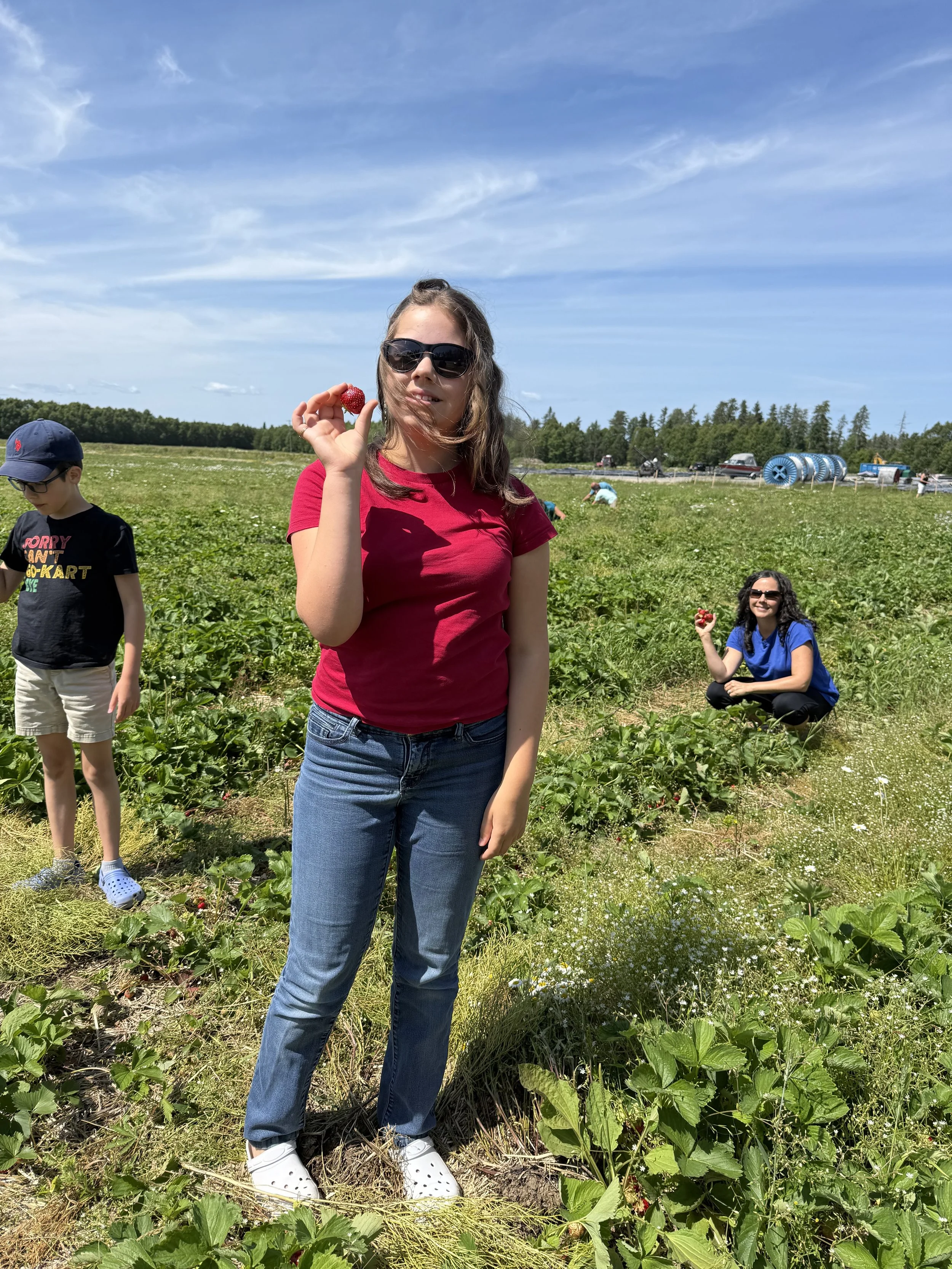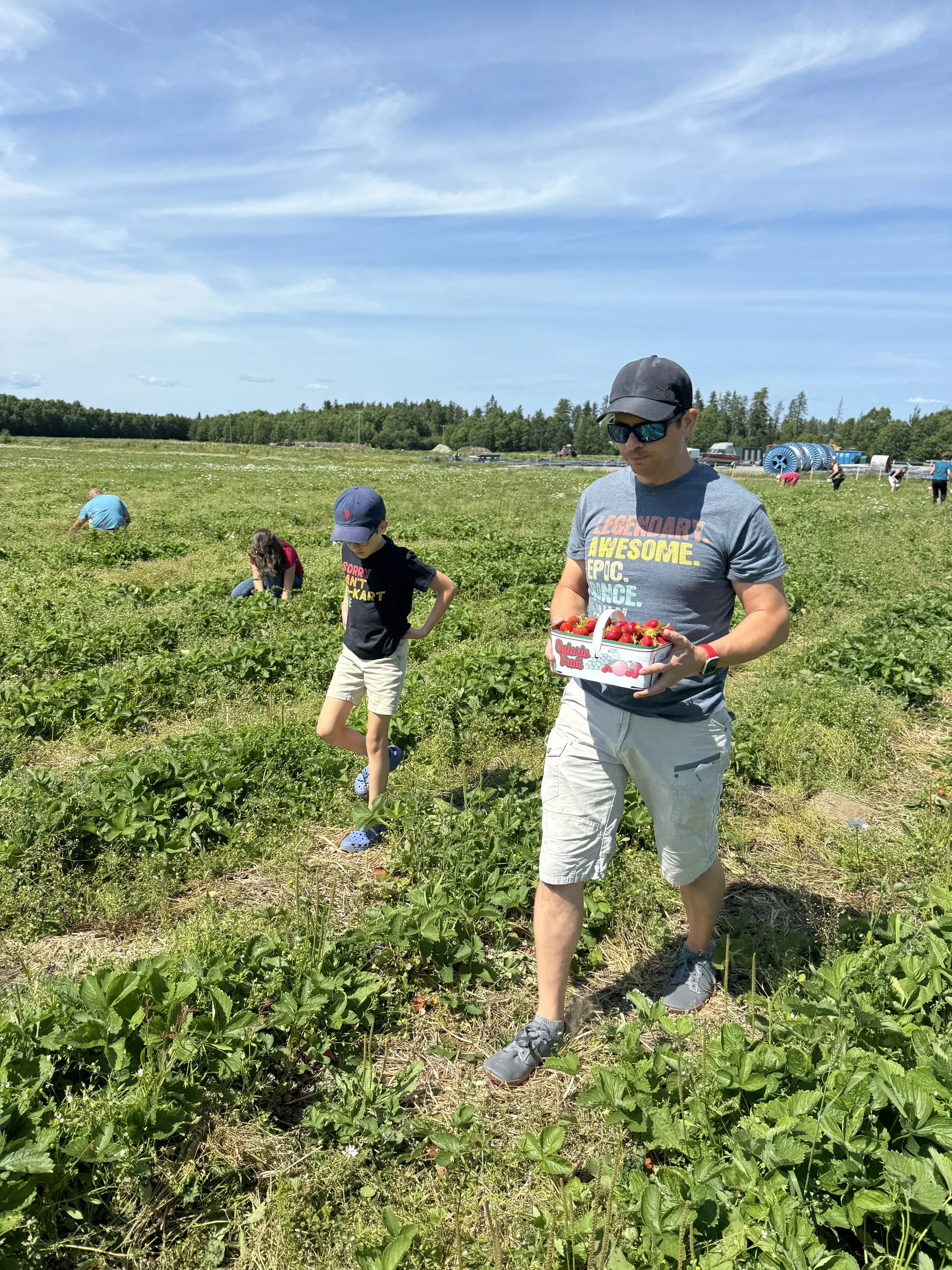 Monday’s drive was shorter—only 230 km—but the smell came back. This time it was unsettling. By the time we reached Wawa (still in Ontario) and pulled into a blueberry farm, we were more concerned. While Pierre Luc pondered, we tried to lighten the mood with some strawberry picking (it wasn’t blueberry season yet). We devoured them in record time and bought some delicious jam from the charming little gift shop.