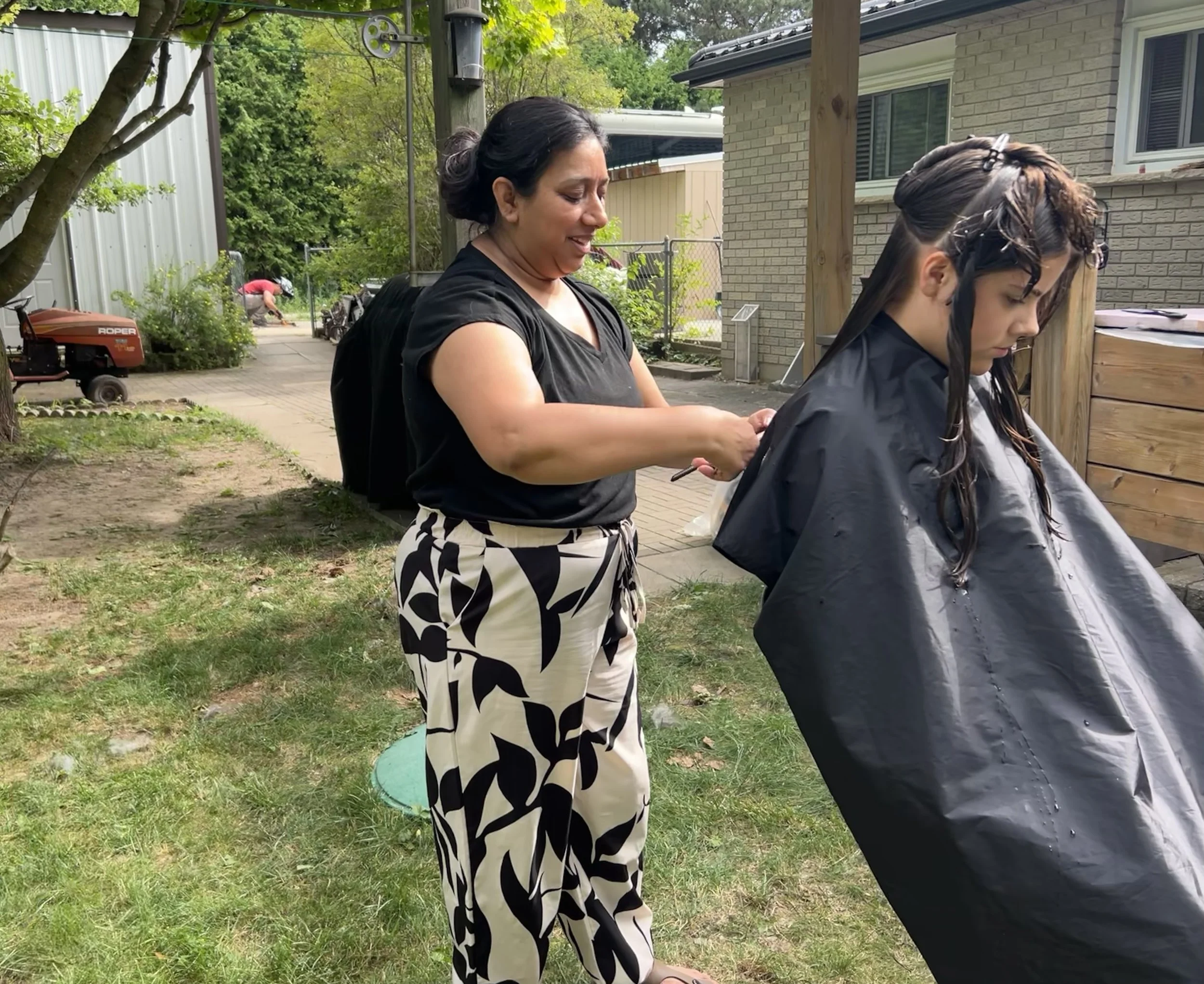 So that’s exactly what we did: a weekend with Moe, Simpy, and their two teenagers—sharing meals, swapping bus stories, and dreaming up new projects. Pierre Luc even got the chance to fix the exhaust pipe on our heater system, which had been accidentally crushed earlier in the trip. Anaya enjoyed a haircut from Simpy, who happens to be a hairdresser, while Theo chased the dog around with water to play! On our last night, Simpy had a brilliant campfire idea: fill cones with marshmallows, chocolate, and strawberries, wrap them in foil, and warm them over the fire. Absolute perfection.